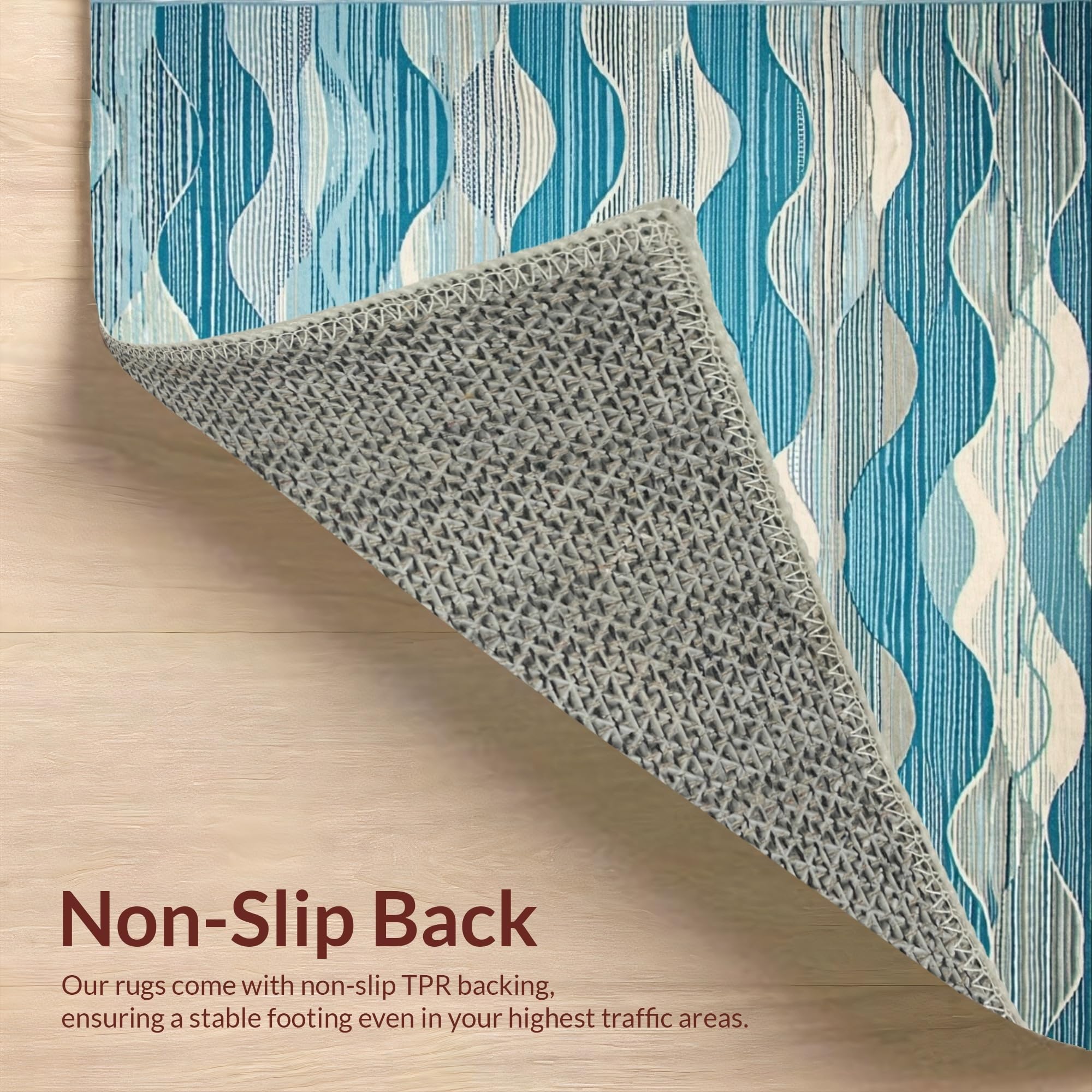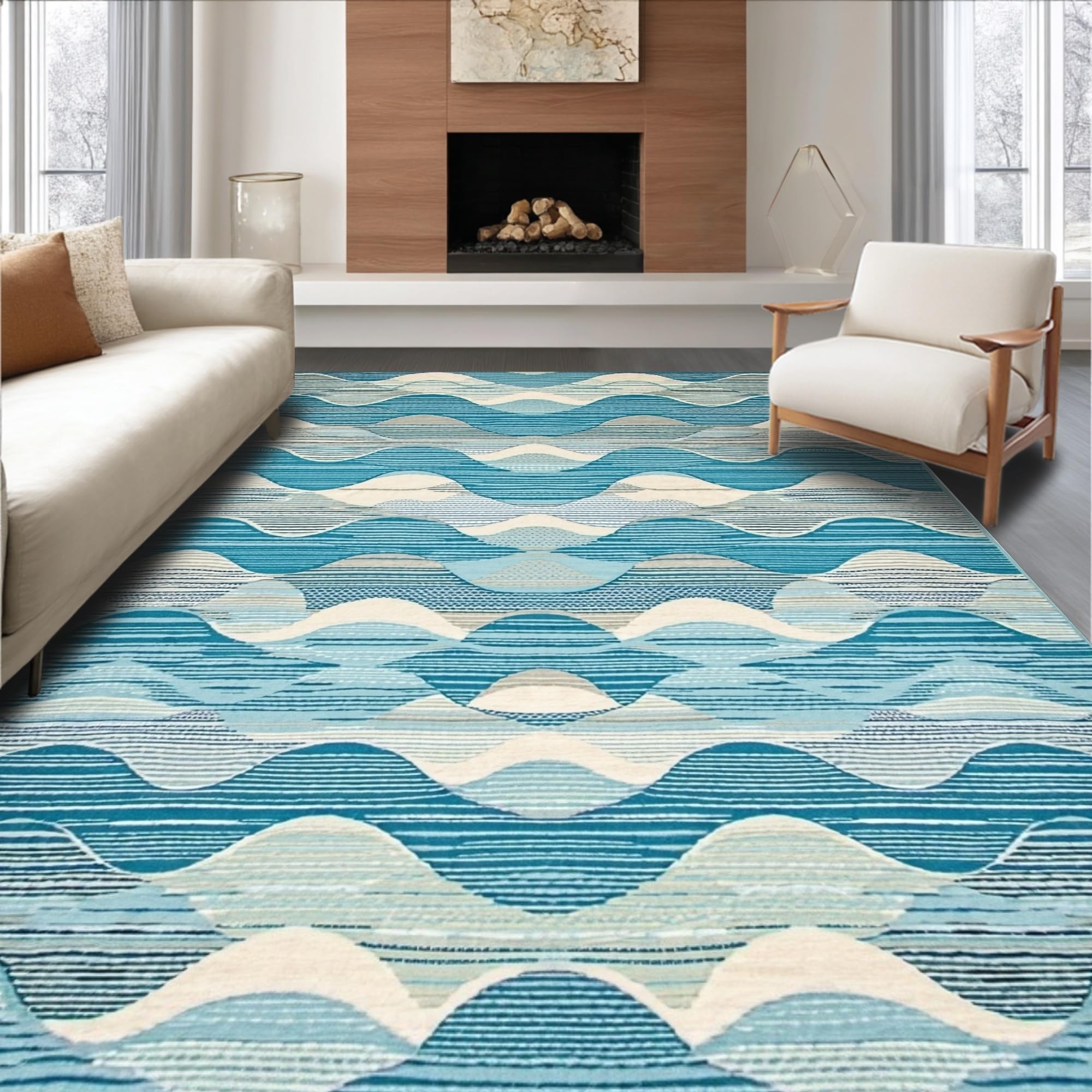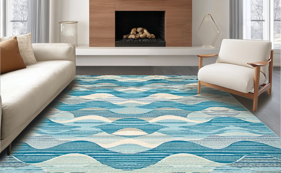 Ultra Soft Area Rug, Non Slip, Stain Resistant, Washable Area Rugs for Living Room, Bedroom, Serene Minimalist Natural Weave(Blue) Overview: