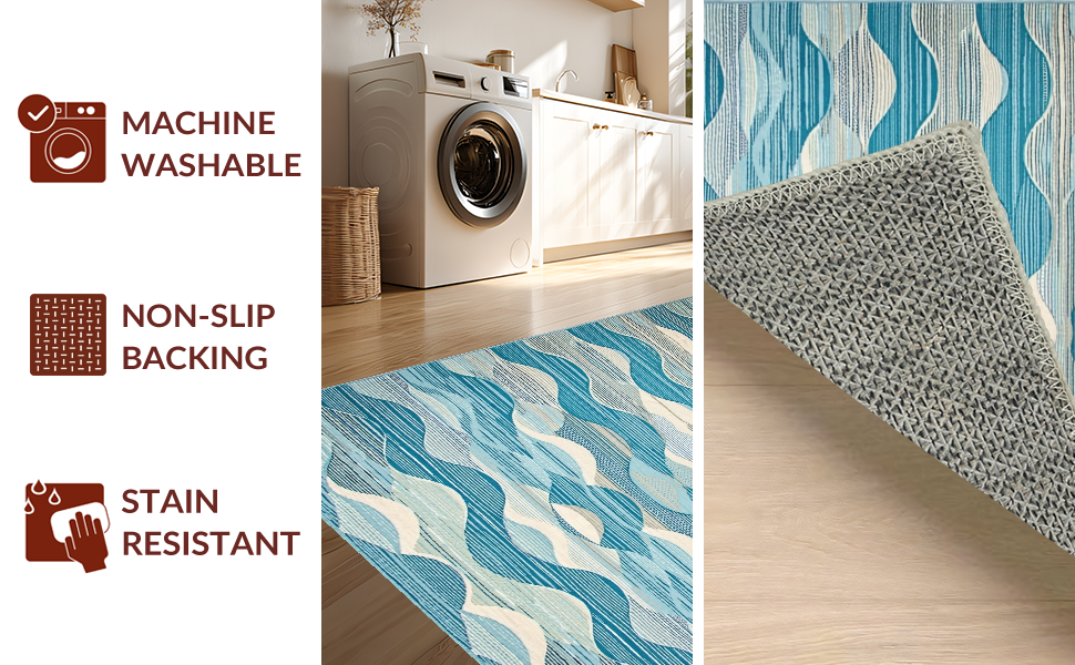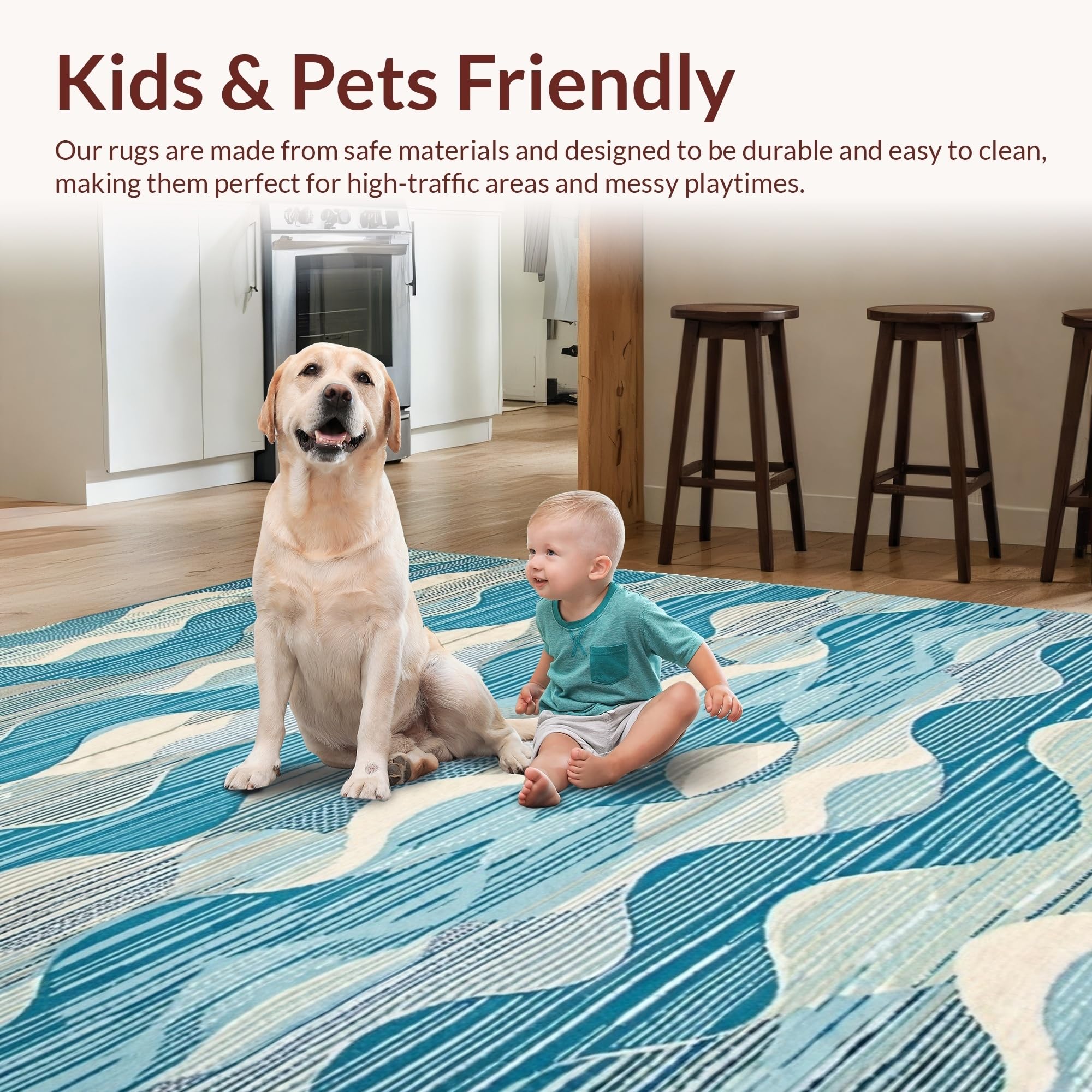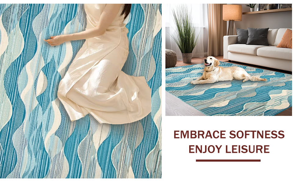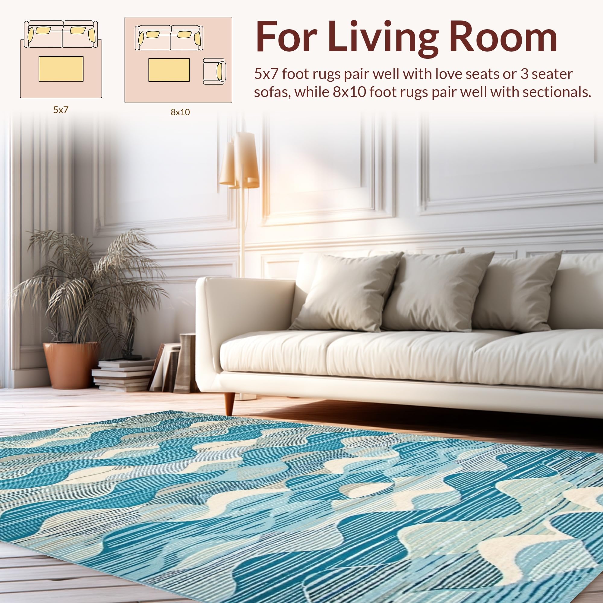 Ultra Soft Area Rug, Non Slip, Stain Resistant, Washable Area Rugs for Living Room, Bedroom, Serene Minimalist Natural Weave(Blue) Overview: