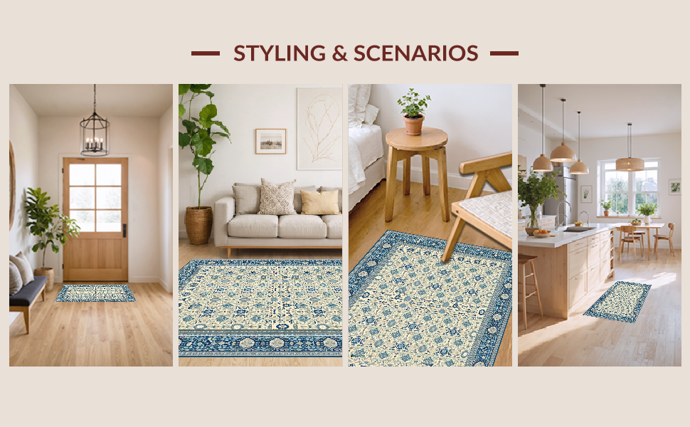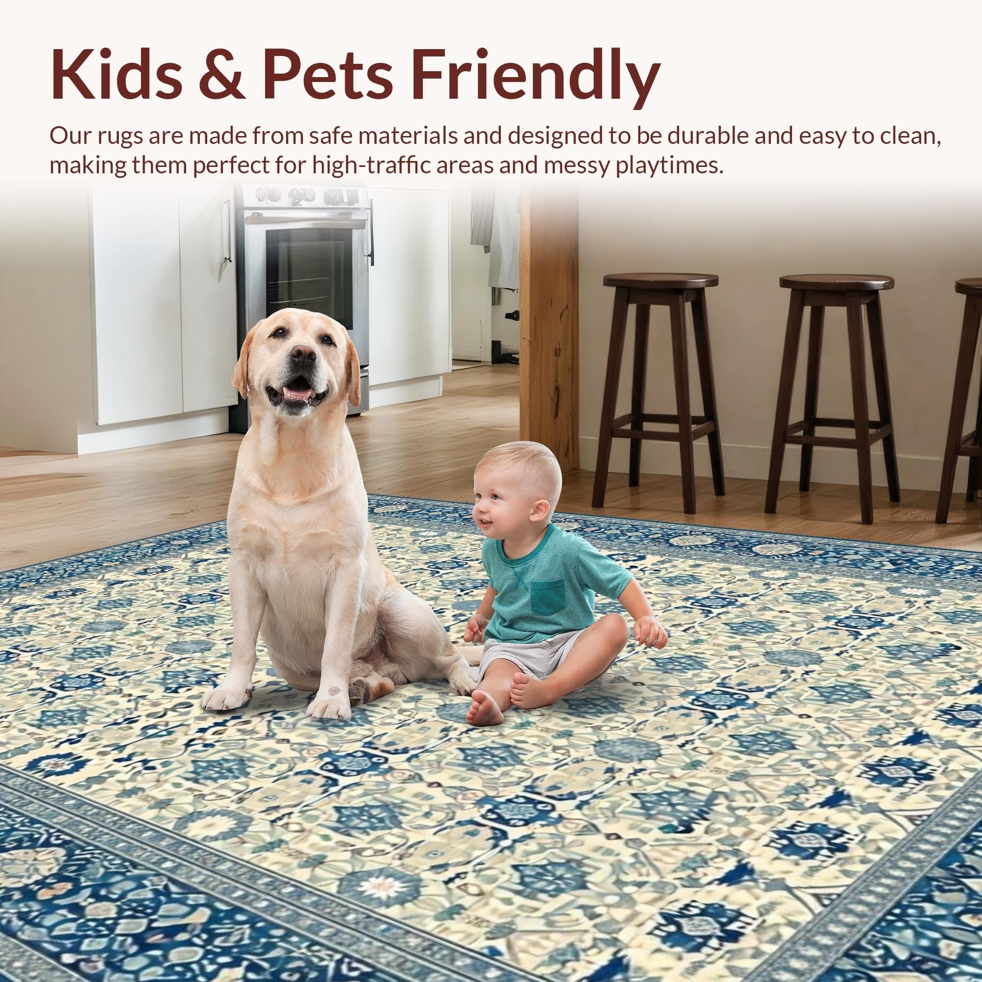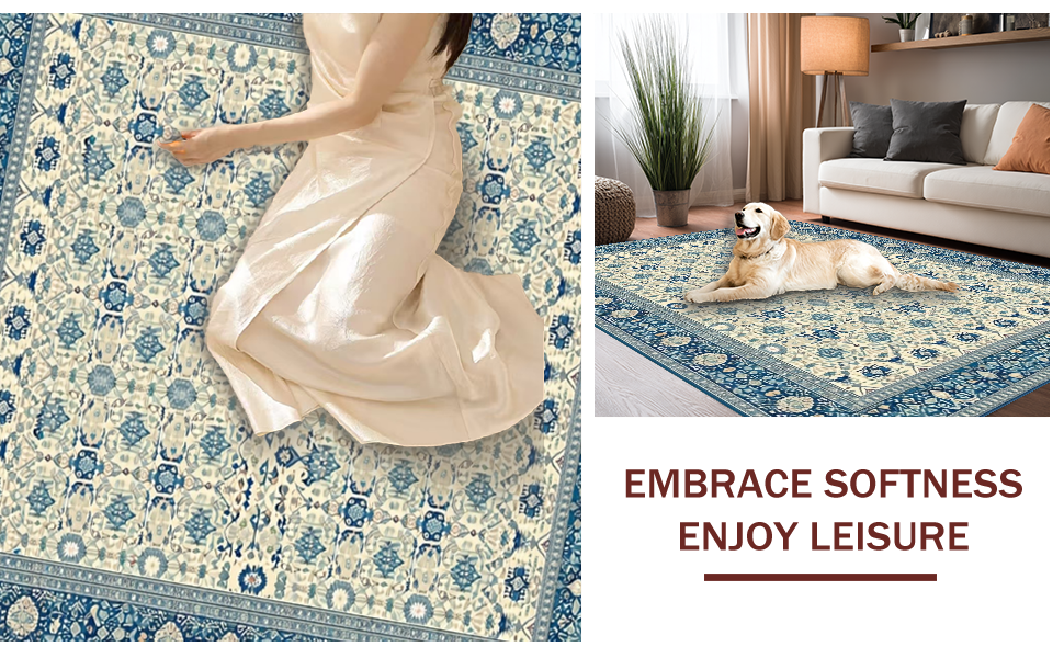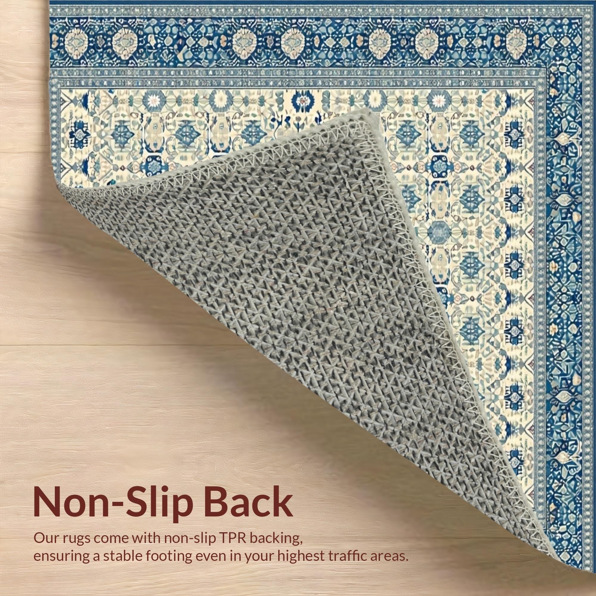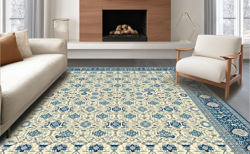 Ultra Soft Area Rug, Non Slip, Stain Resistant, Washable Area Rugs for Living Room, Bedroom, Serene Pastel Trellis Illustration(Blue) Overview:
