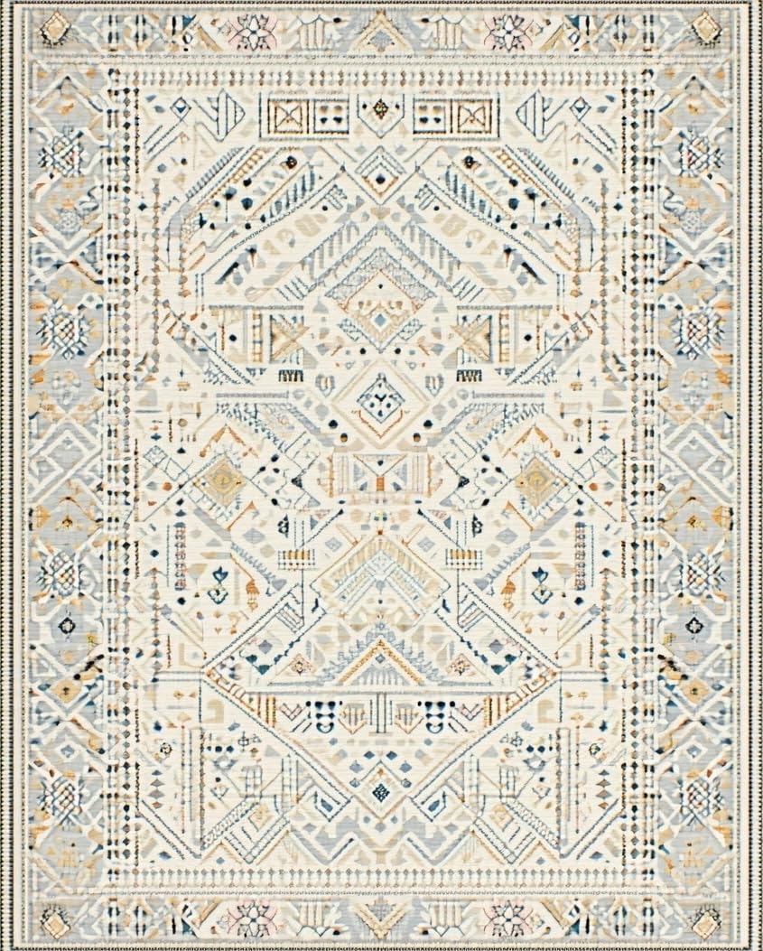 Ultra Soft Area Rug, Non Slip, Stain Resistant, Washable Area Rugs for Living Room, Bedroom, Serene Radial Pattern in Cream(Beige) Overview: