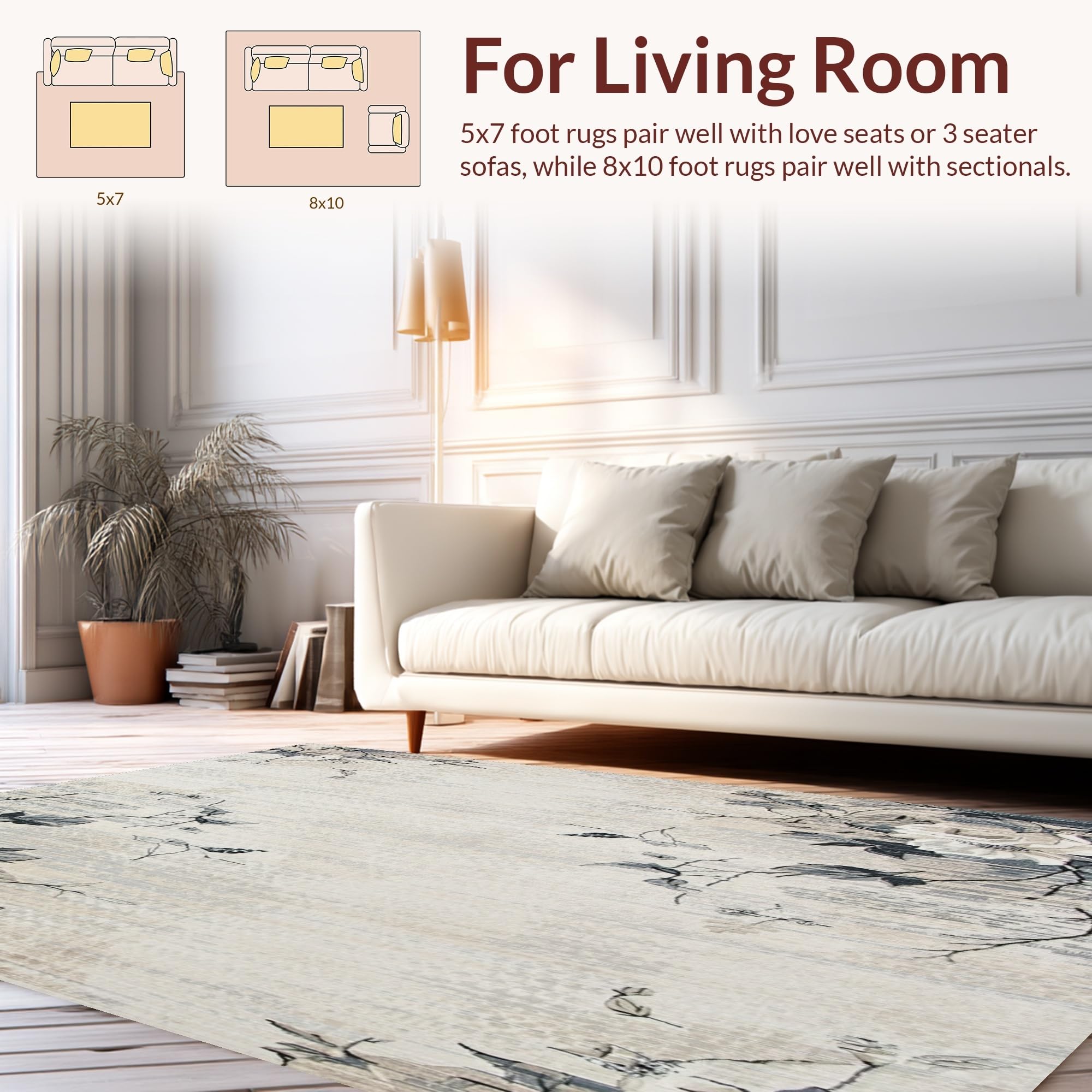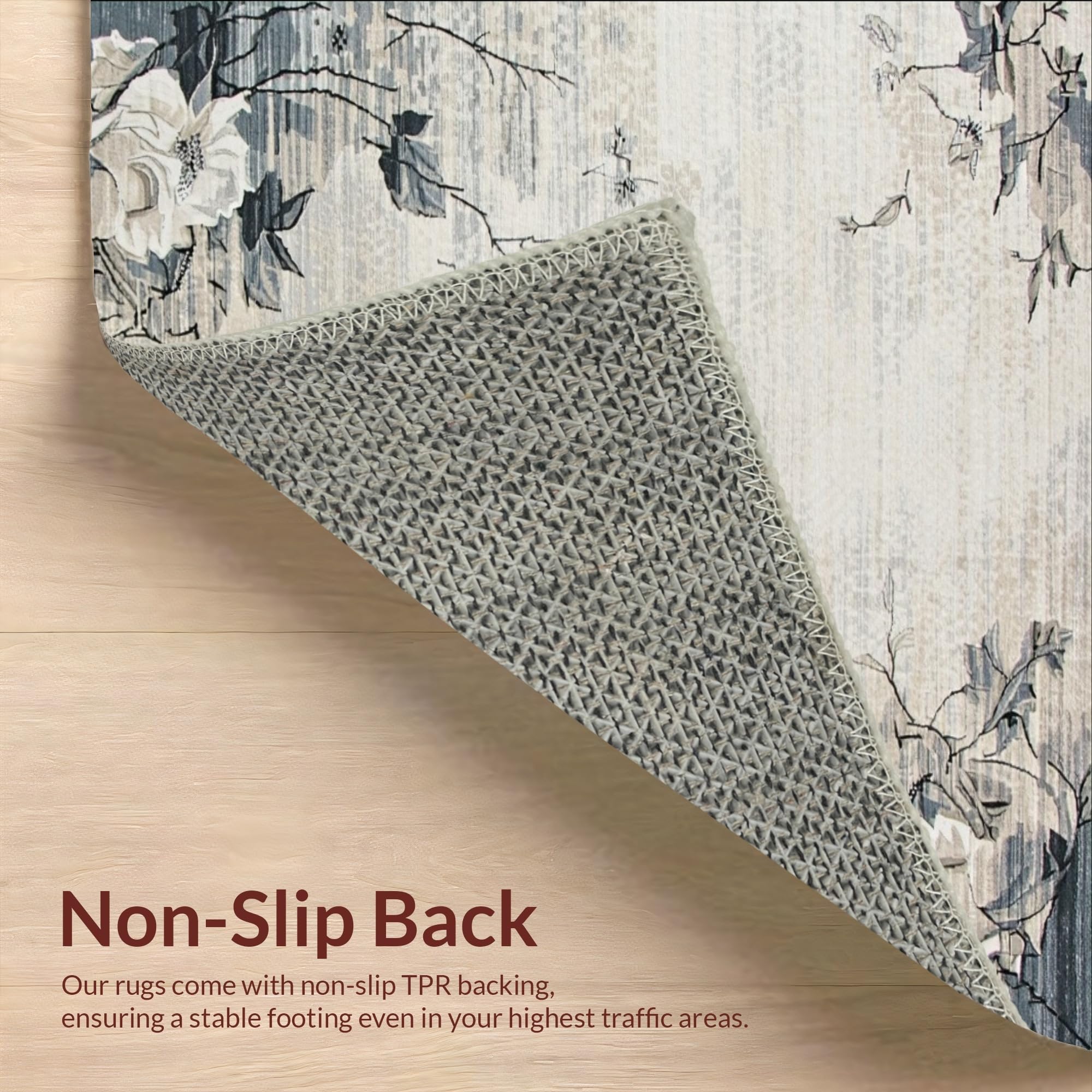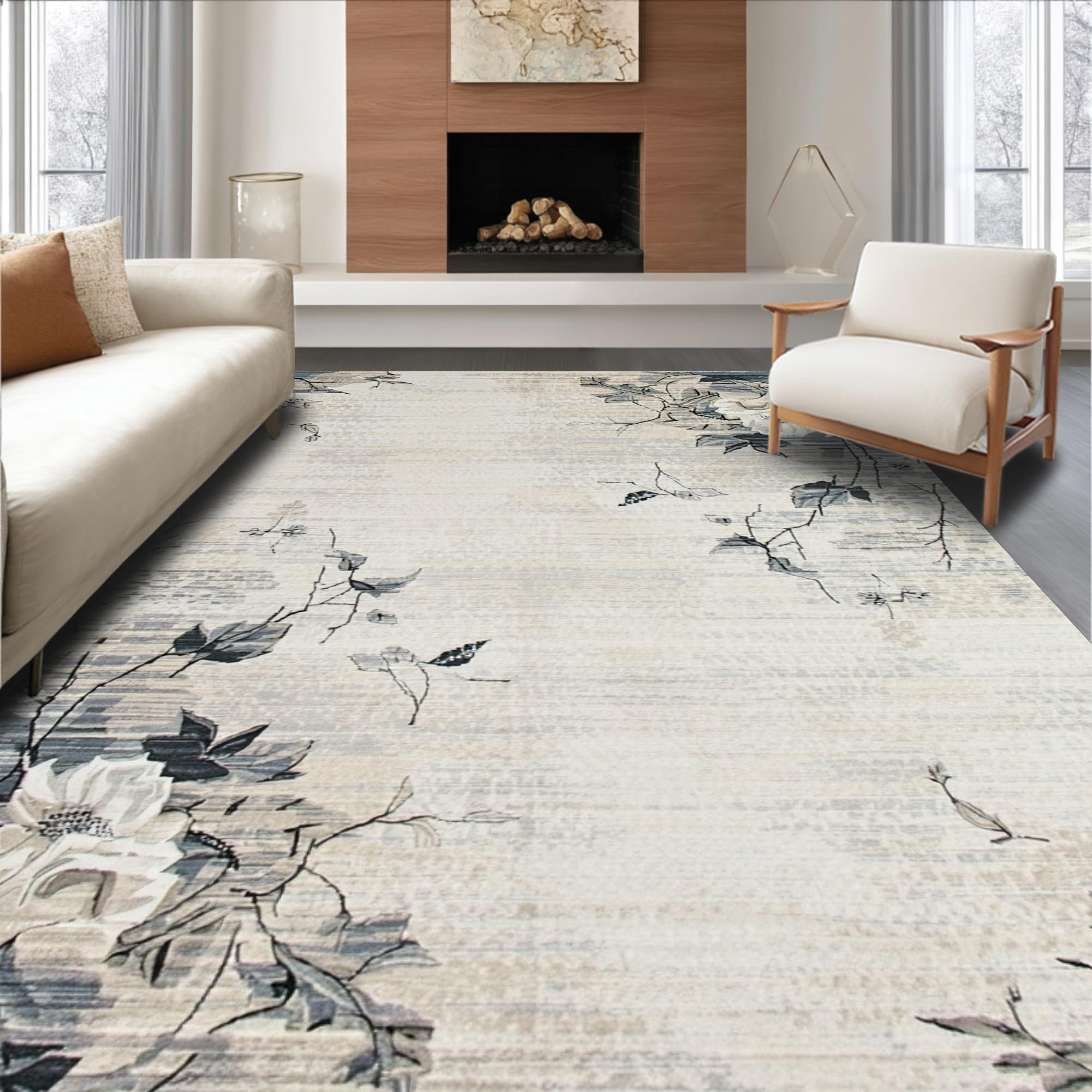 Ultra Soft Area Rug, Non Slip, Stain Resistant, Washable Area Rugs for Living Room, Bedroom, Serene Shadows Area Smoke & Beige Abstract Floral Composition(Beige) Overview: