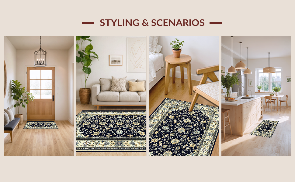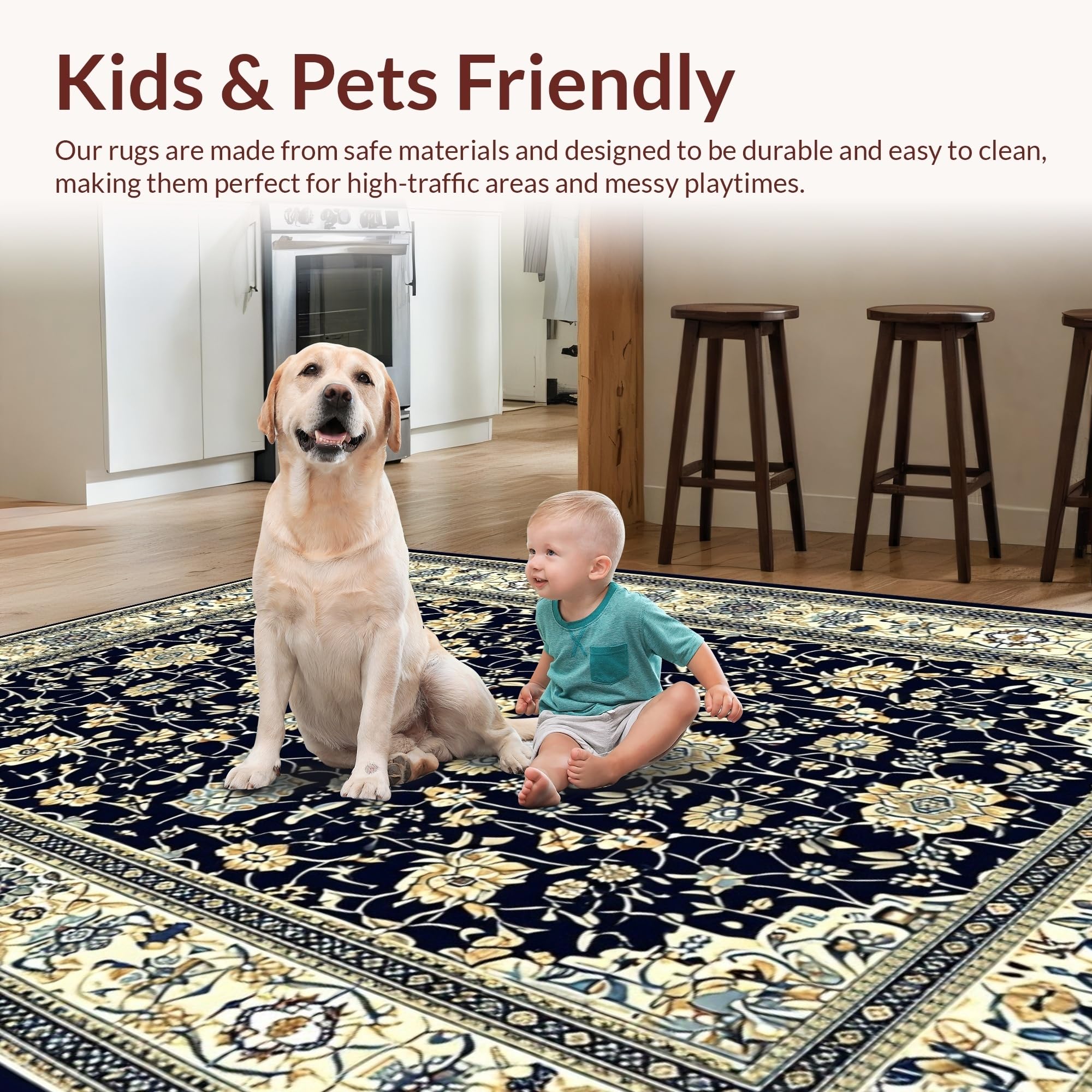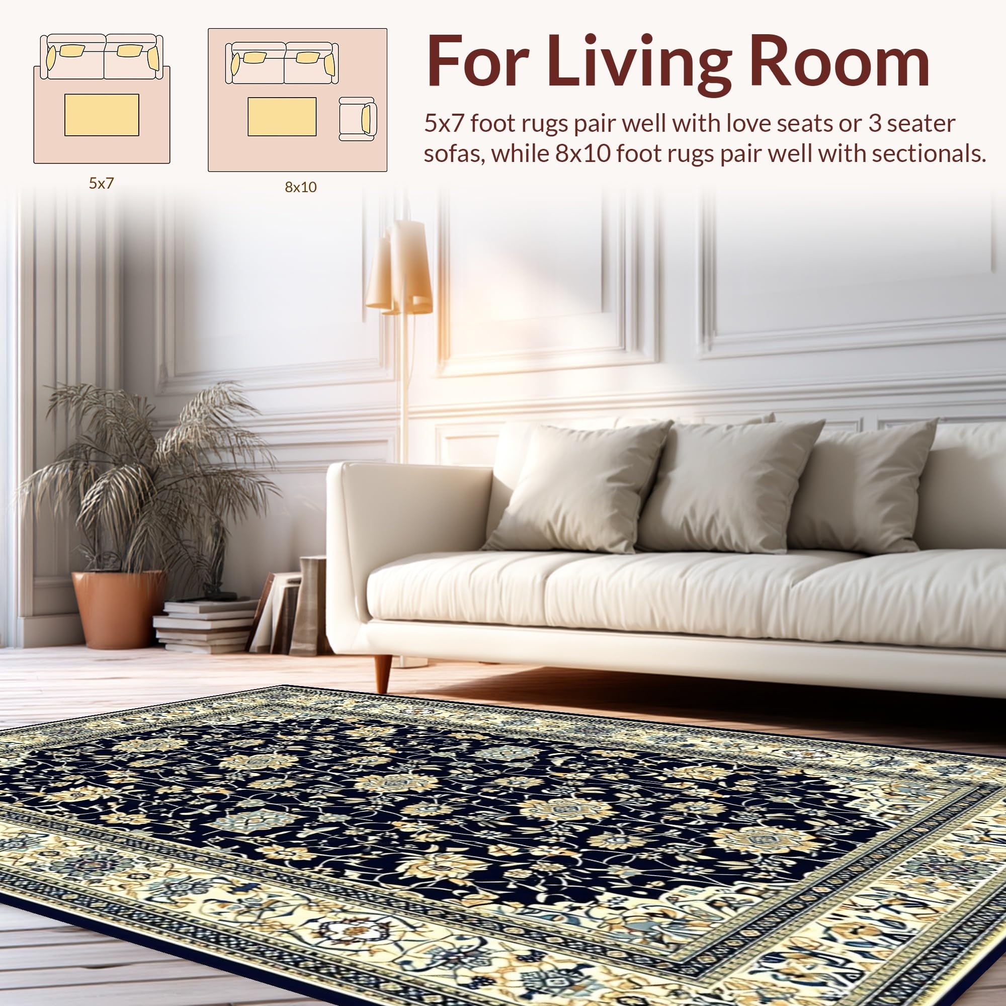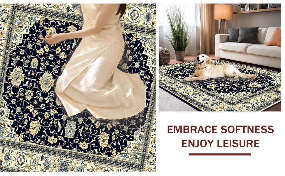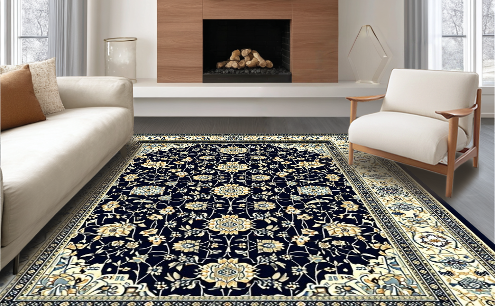 Ultra Soft Area Rug, Non Slip, Stain Resistant, Washable Area Rugs for Living Room, Bedroom, Serene Vintage Floral Atmosphere(Blue) Overview: