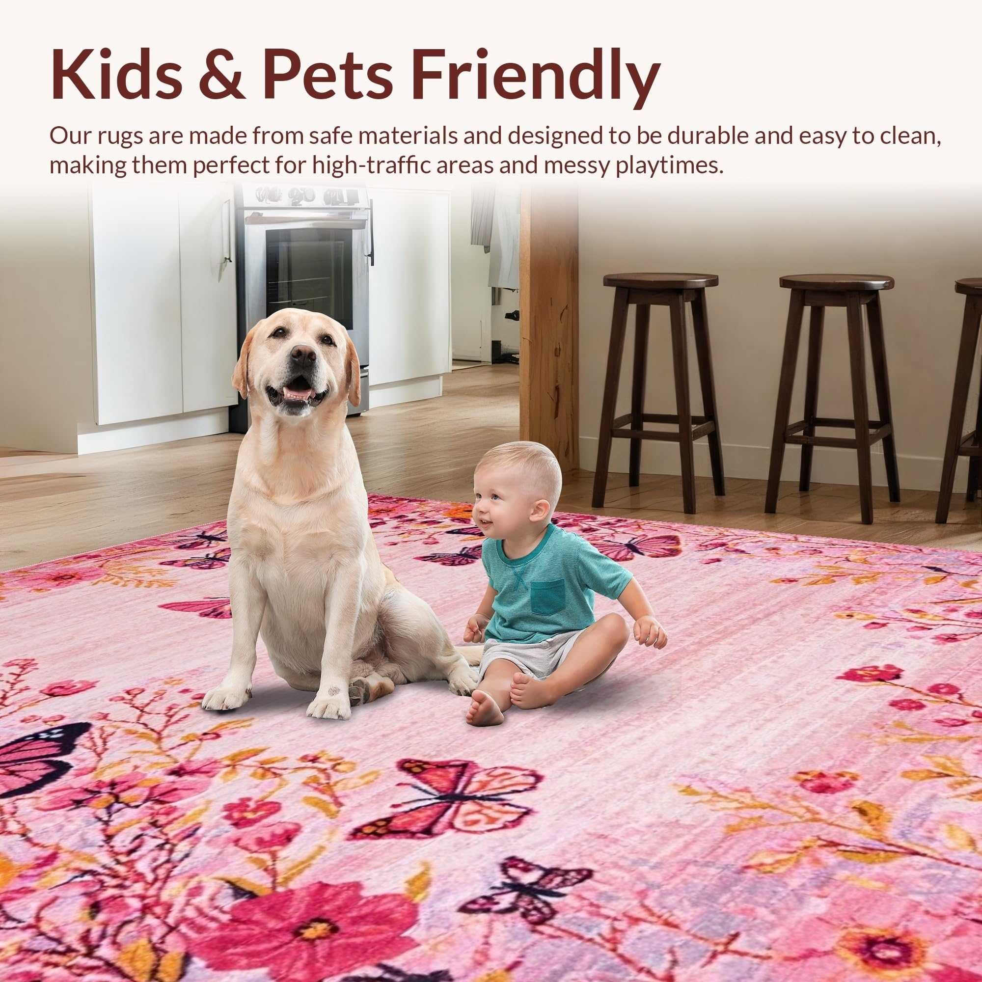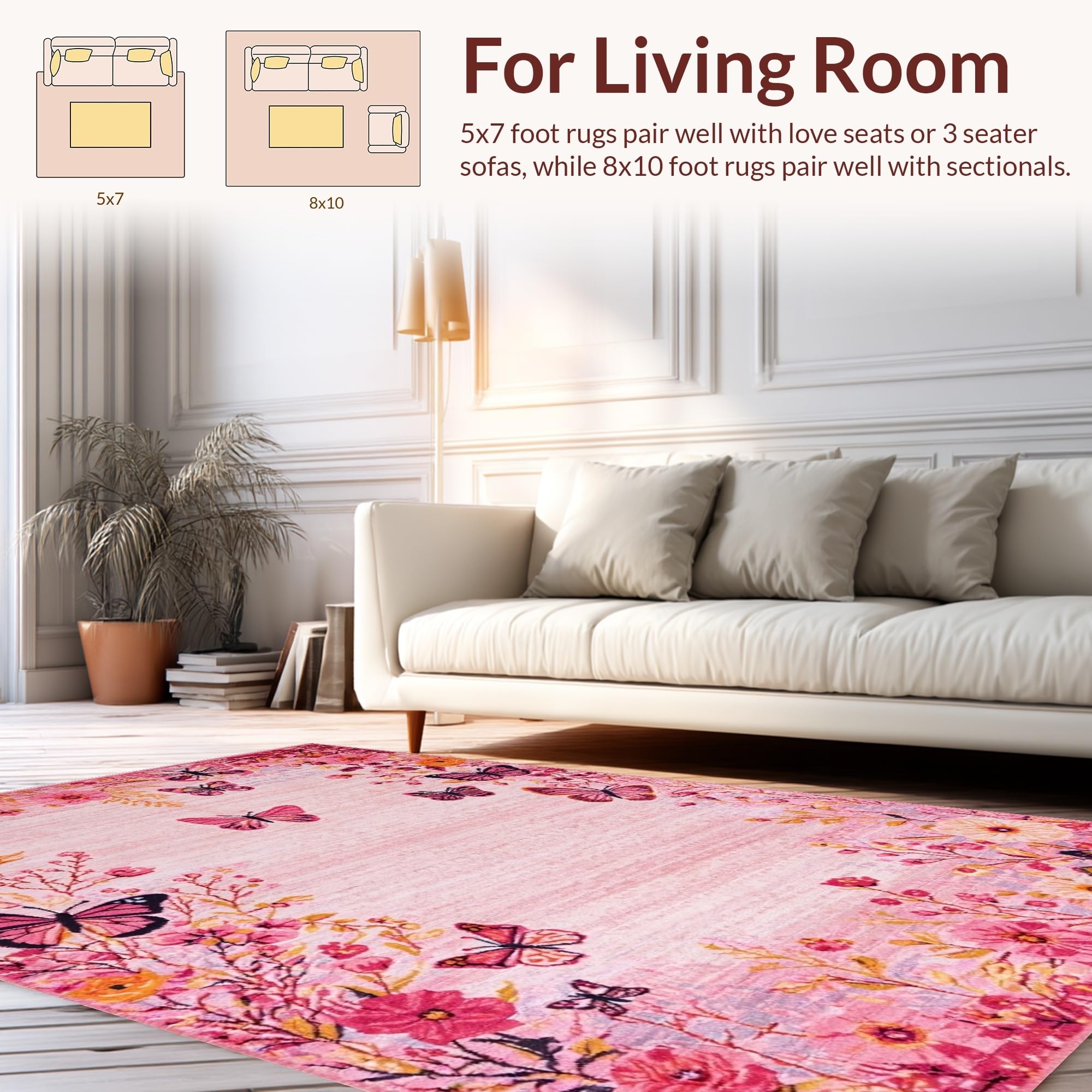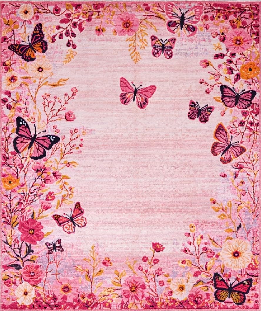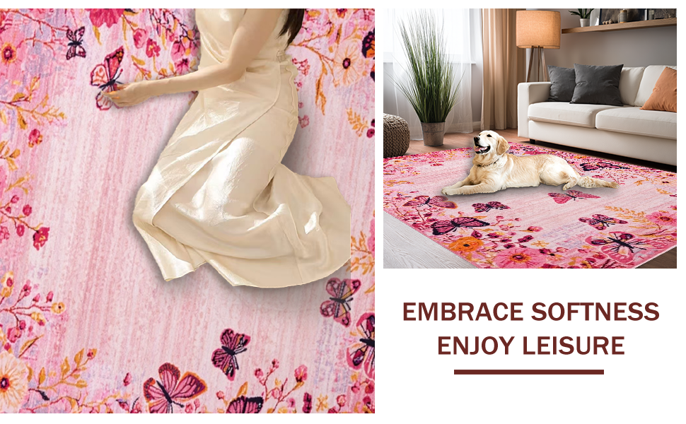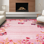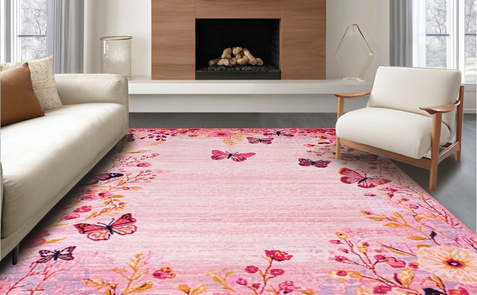 Ultra Soft Area Rug, Non Slip, Stain Resistant, Washable Area Rugs for Living Room, Bedroom, Serene Watercolor Butterfly Theme(Pink) Overview: