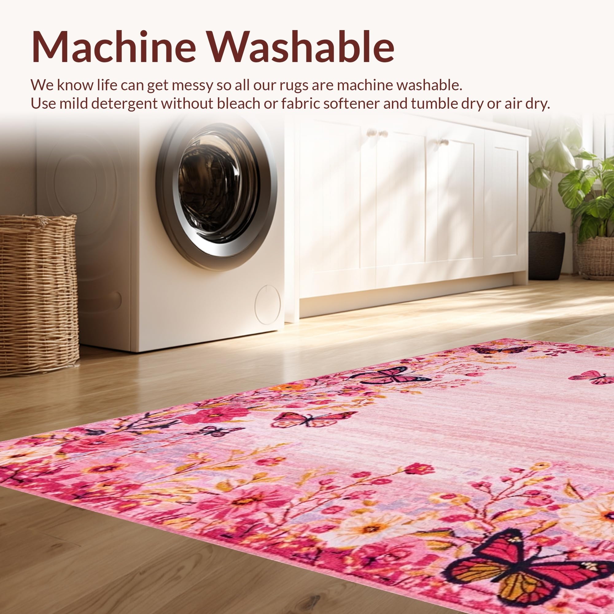 - Machine Washable: Our rugs can be easily thrown in the wash machine.