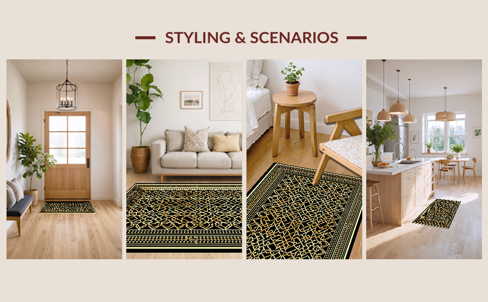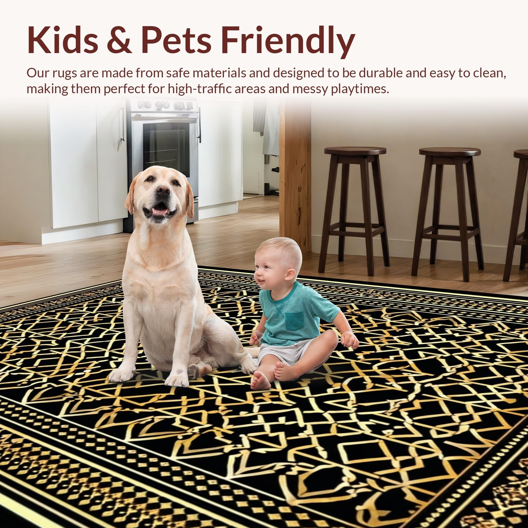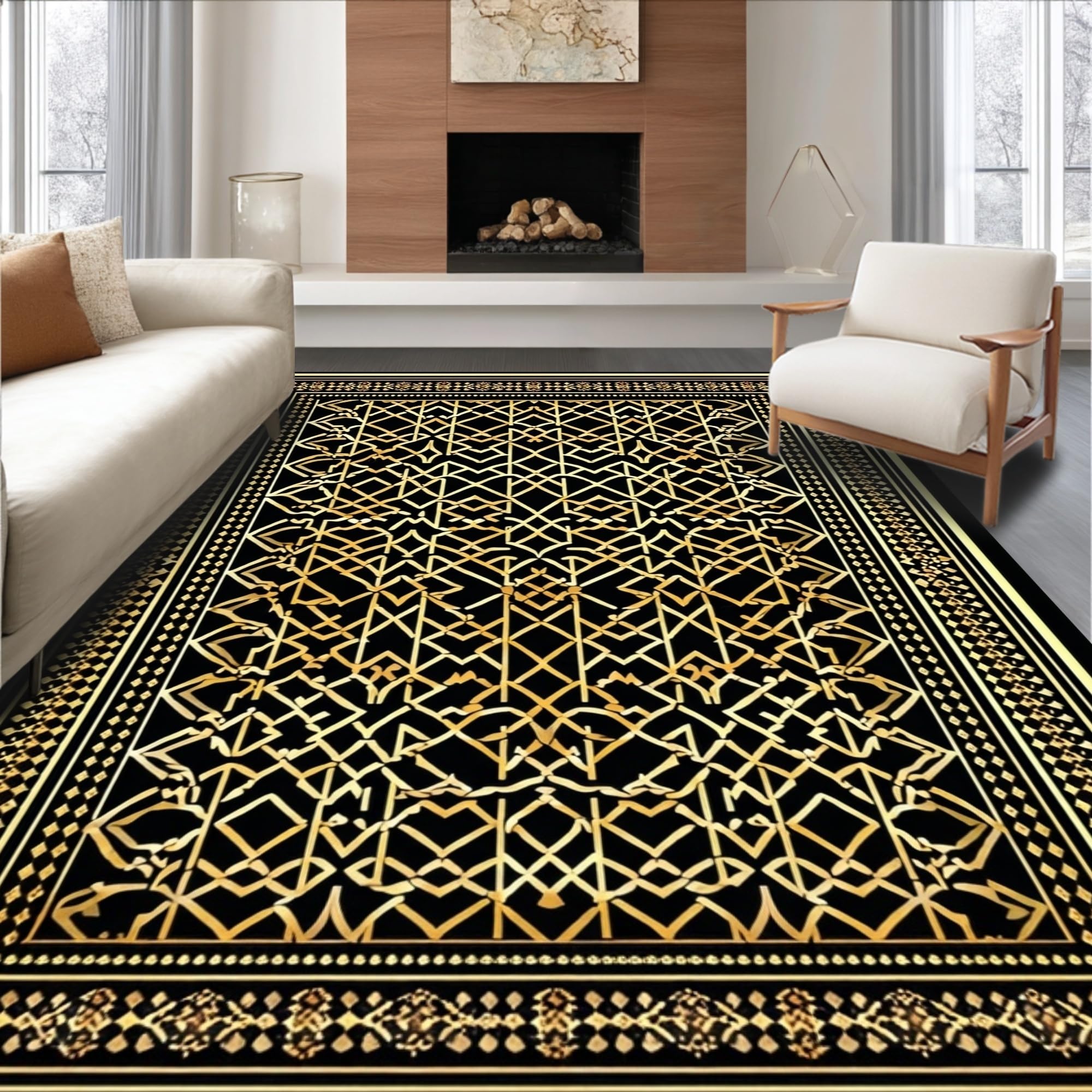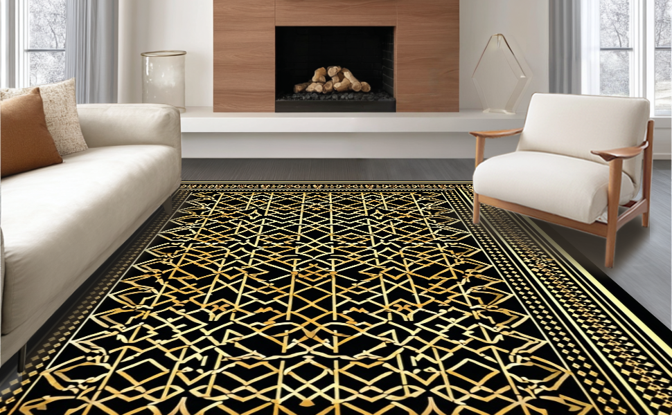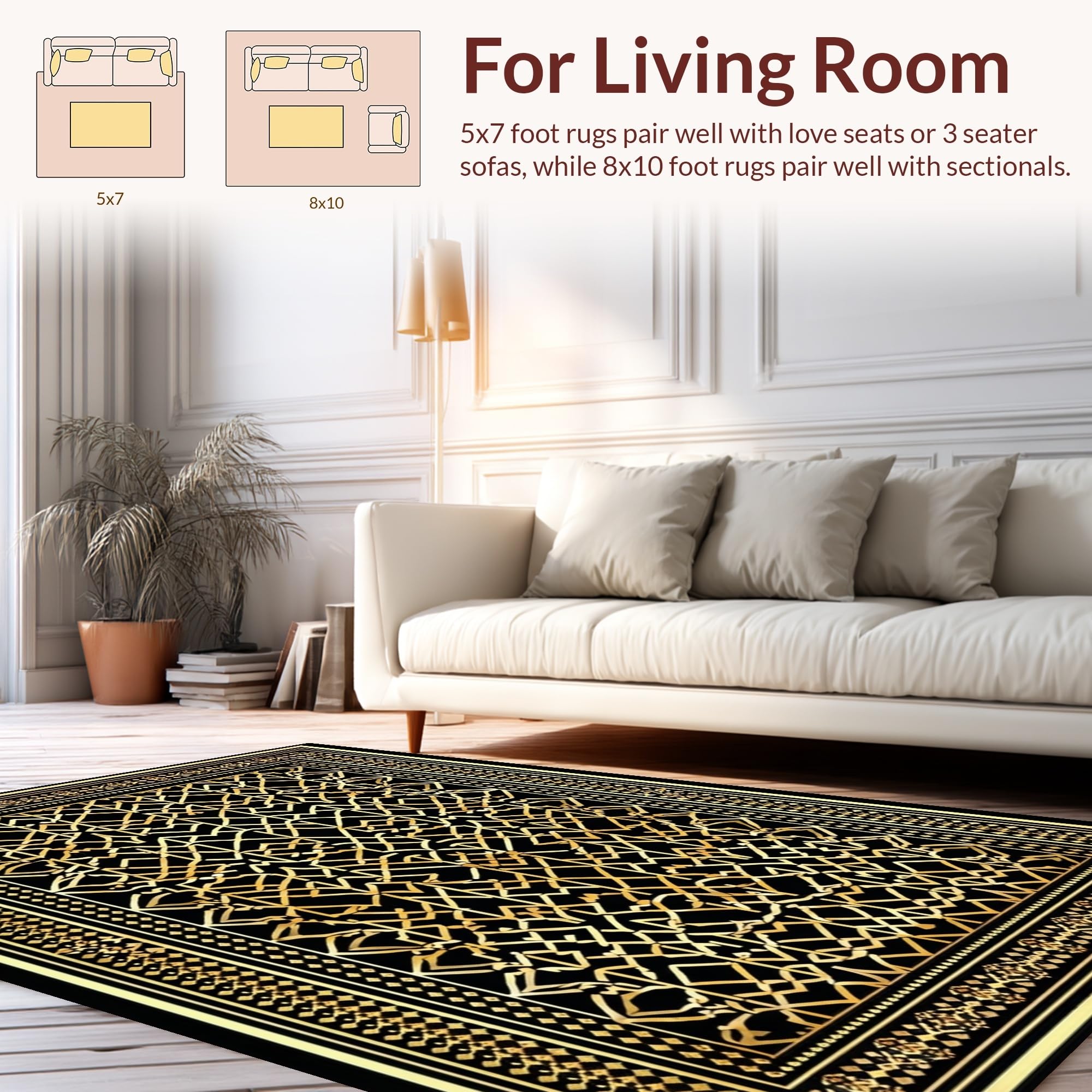 Ultra Soft Area Rug, Non Slip, Stain Resistant, Washable Area Rugs for Living Room, Bedroom, Sleek Minimalist Tiled Design Appeal(Black) Overview: