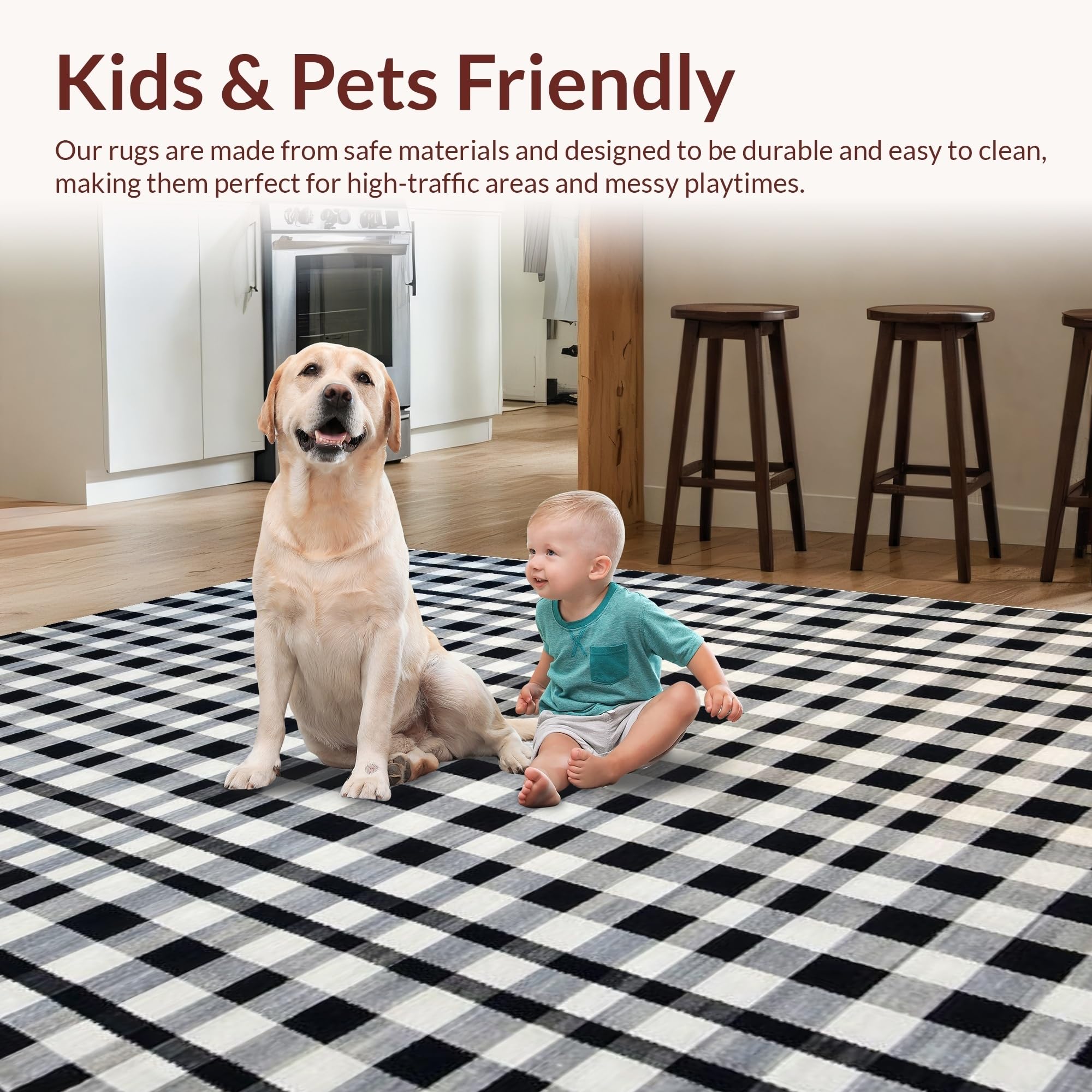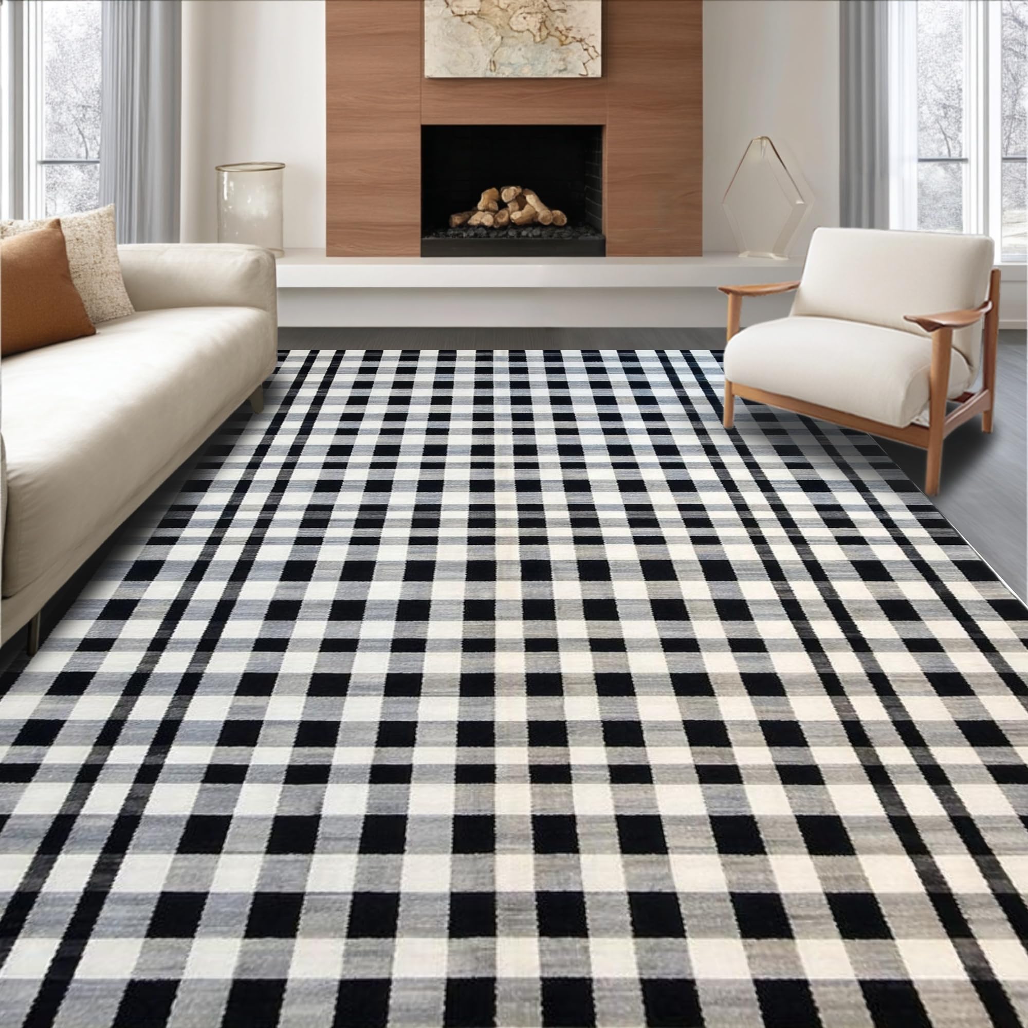 Ultra Soft Area Rug, Non Slip, Stain Resistant, Washable Area Rugs for Living Room, Bedroom, Sleek Modern Geometric Composition(Black) Overview: