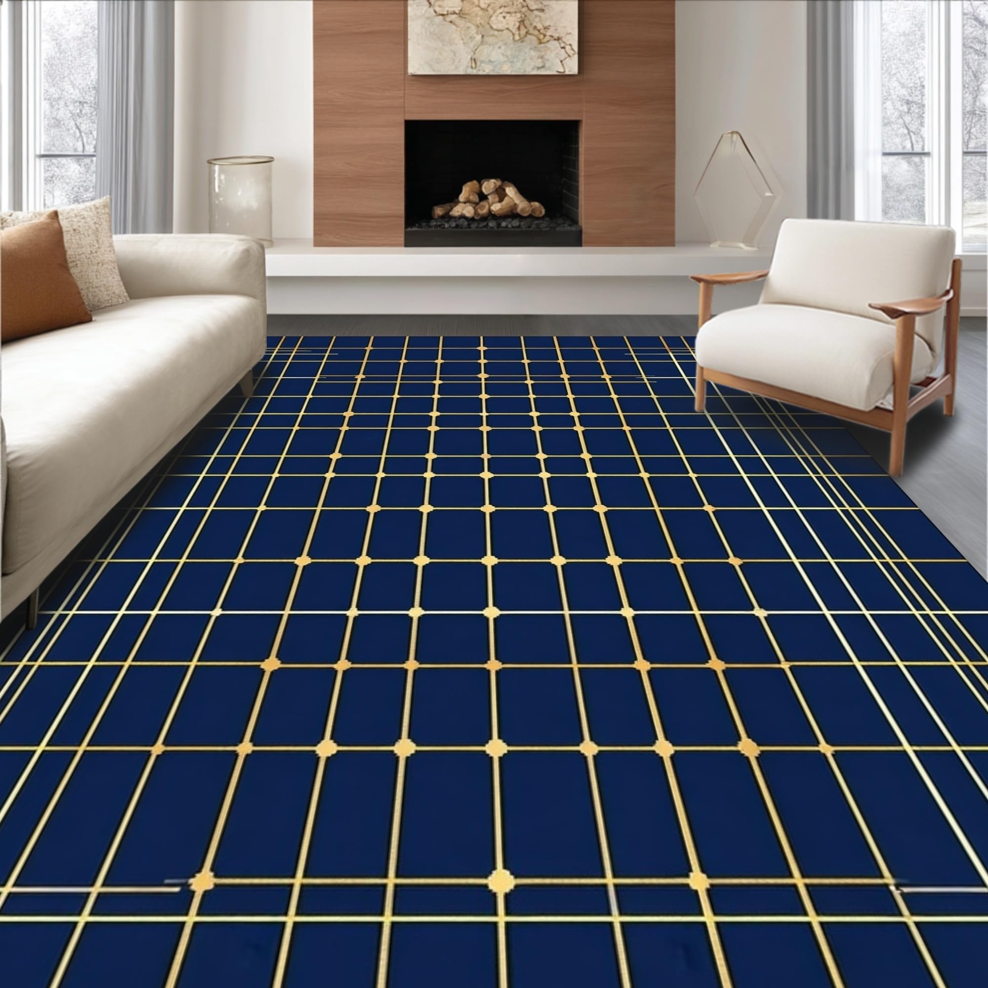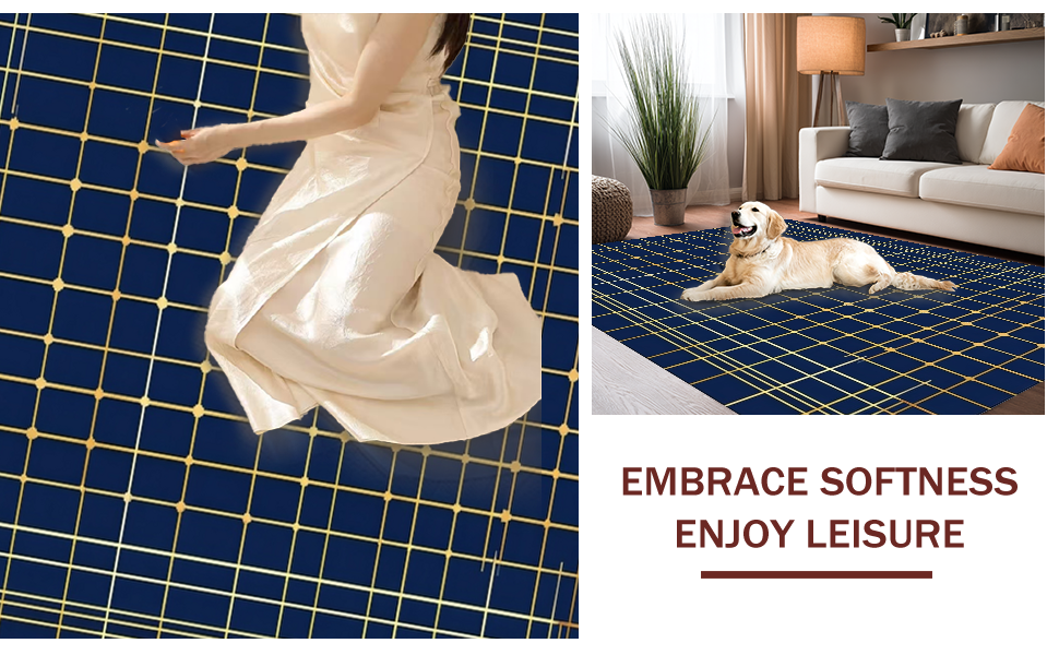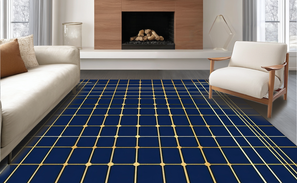 Ultra Soft Area Rug, Non Slip, Stain Resistant, Washable Area Rugs for Living Room, Bedroom, Sleek Modern Navy Blue Abstract Shapes(Blue) Overview: