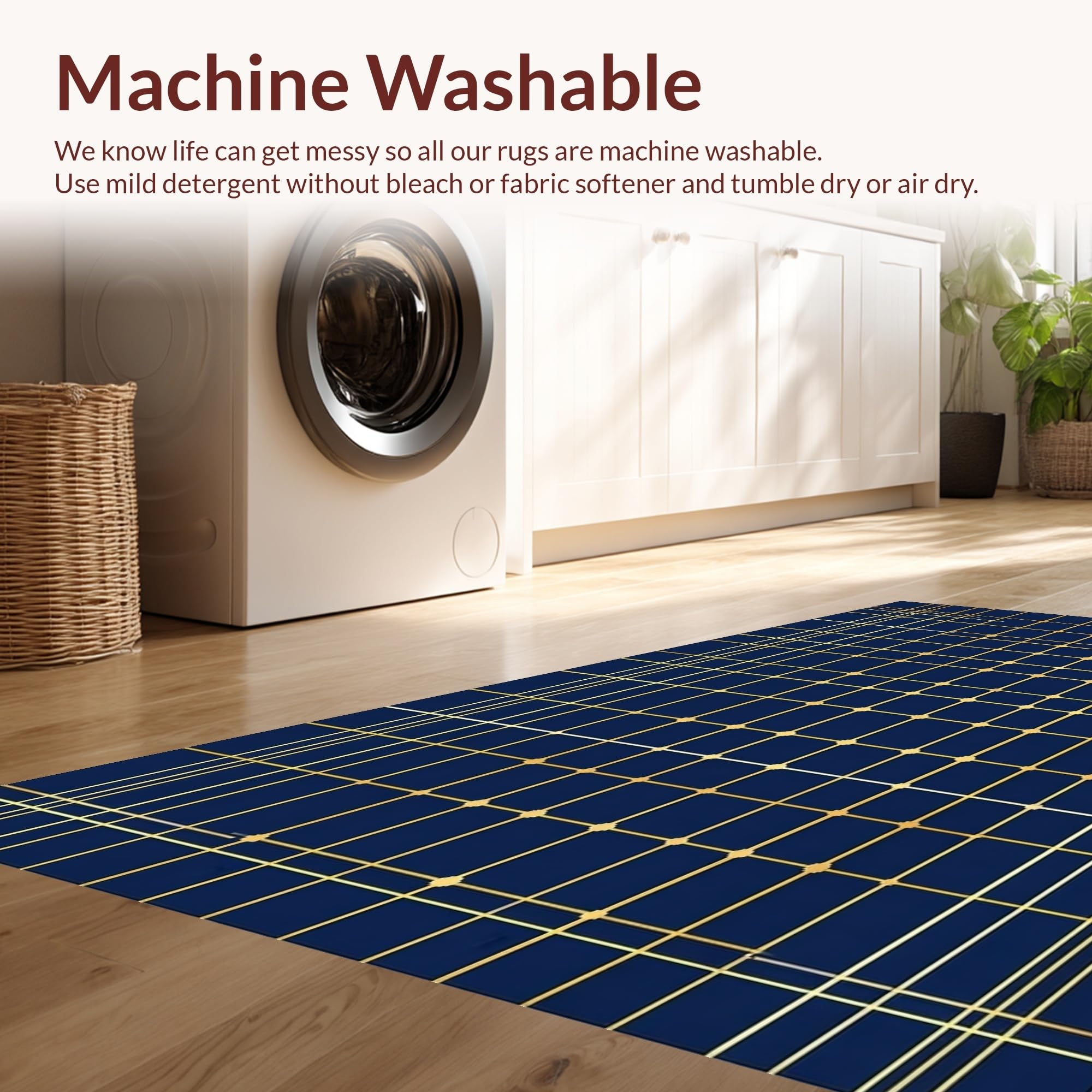 - Machine Washable: Our rugs can be easily thrown in the wash machine.