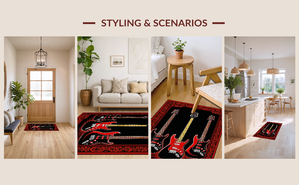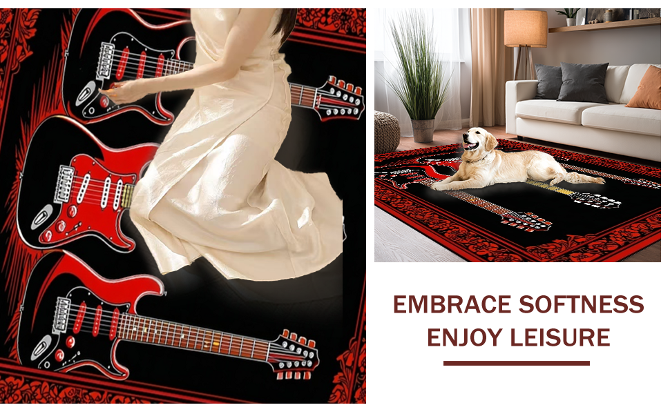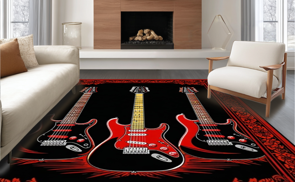 Ultra Soft Area Rug, Non Slip, Stain Resistant, Washable Area Rugs for Living Room, Bedroom, Sleek Modern Soundwave Art(Black) Overview: