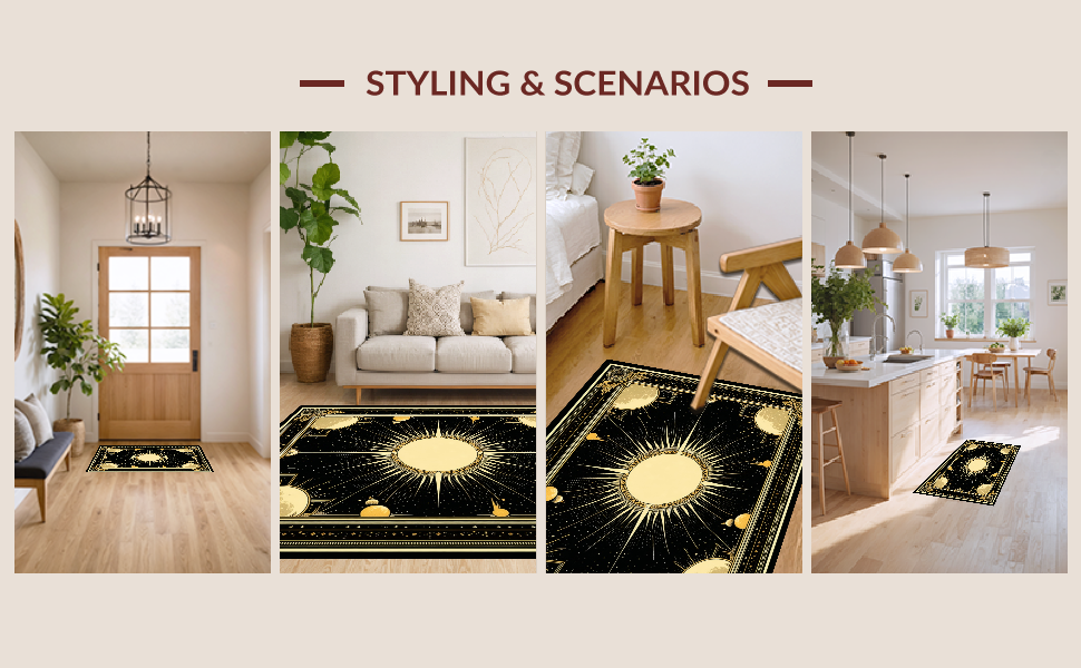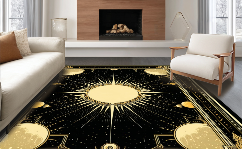 Ultra Soft Area Rug, Non Slip, Stain Resistant, Washable Area Rugs for Living Room, Bedroom, Sleek Modernist Ogee Pattern(Black) Overview: