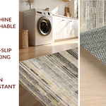 Ultra Soft Area Rug, Non Slip, Stain Resistant, Washable Area Rugs for Living Room, Bedroom, Sleek Neutral Hued Stripe Arrangement(Gray) Overview: