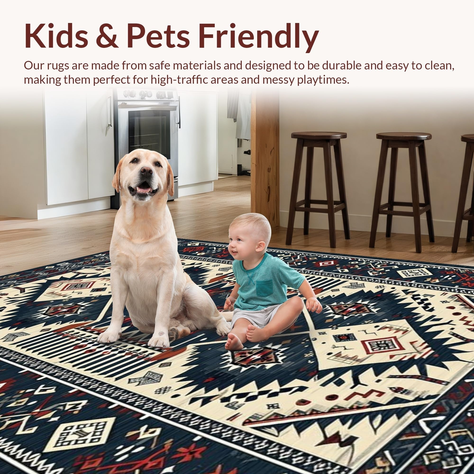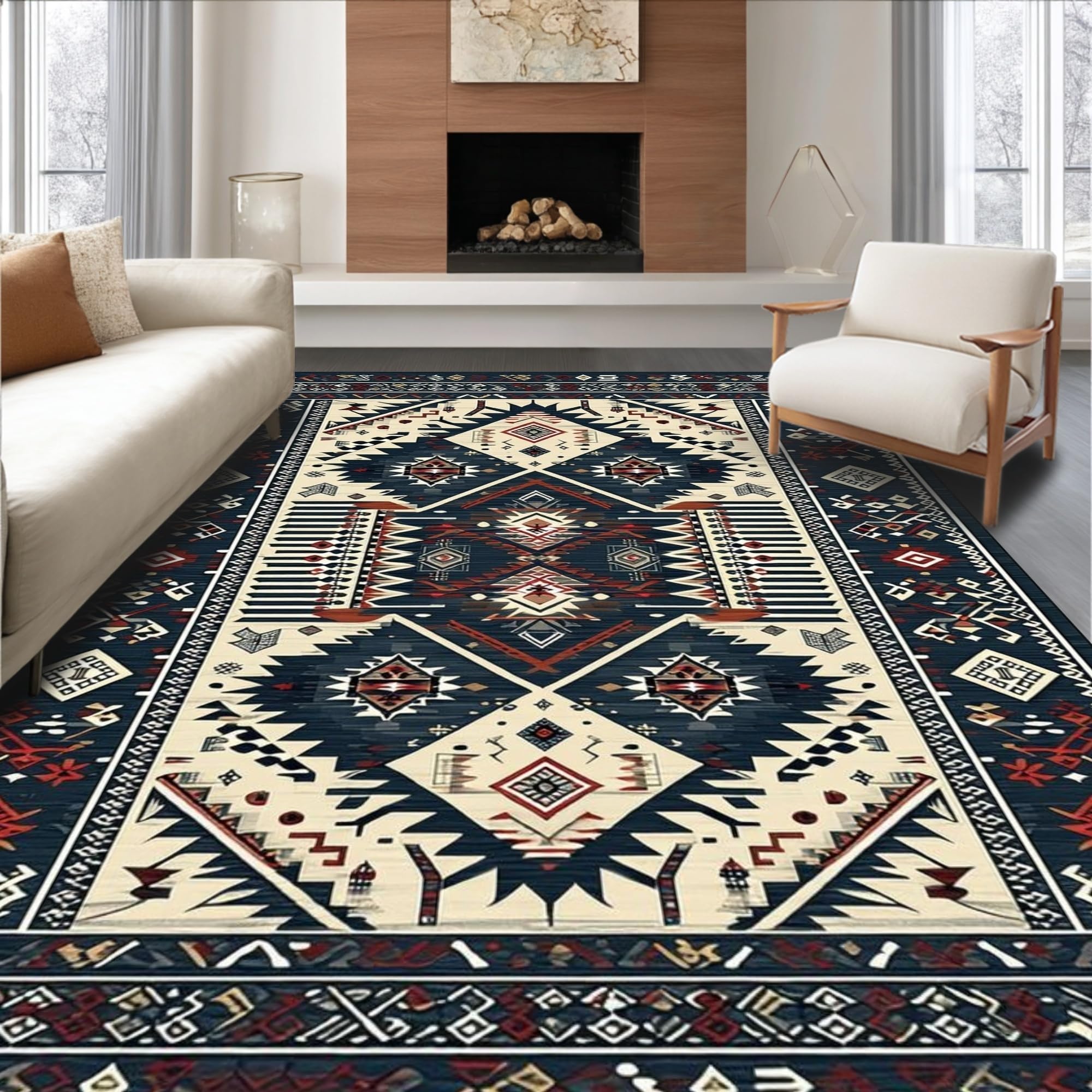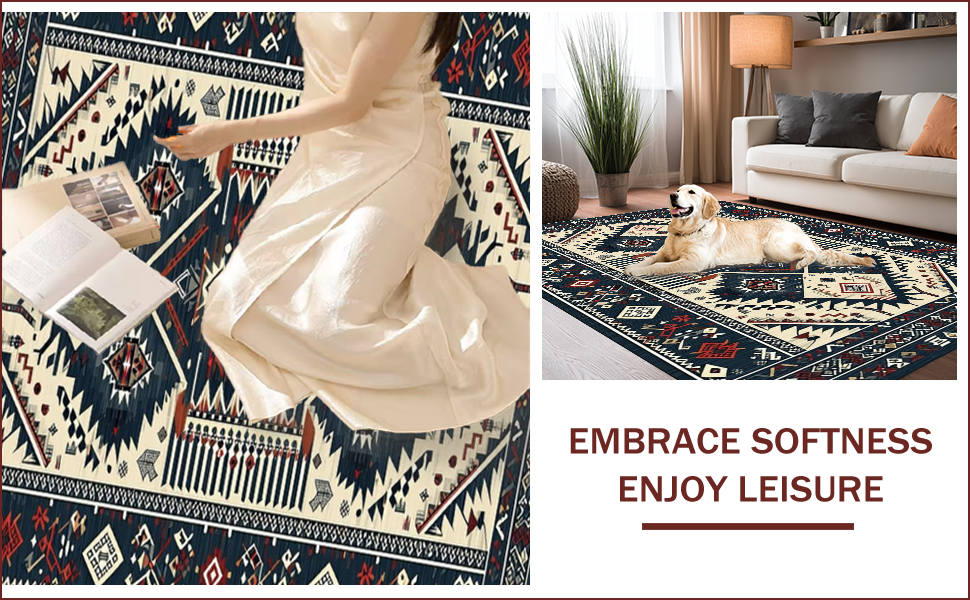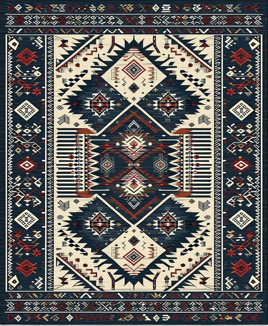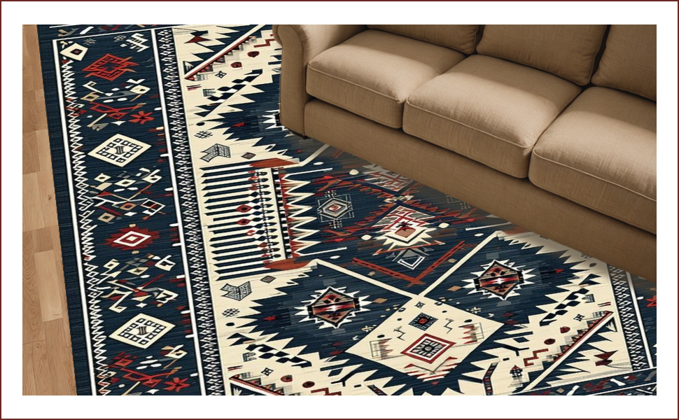 Ultra Soft Area Rug, Non Slip, Stain Resistant, Washable Area Rugs for Living Room, Bedroom, Sleek Retro Geometric Motif(Blue) Overview: