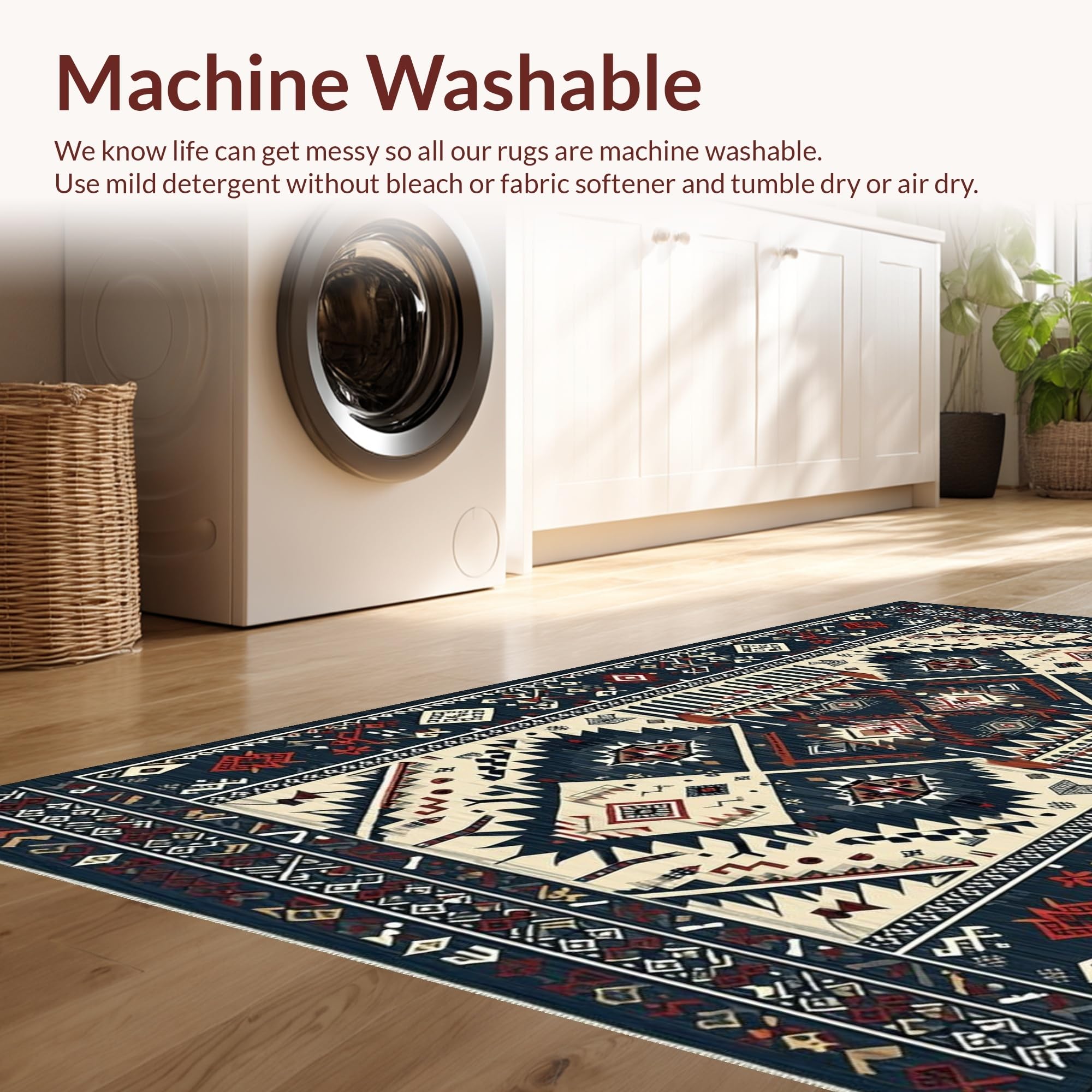 - Machine Washable: Our rugs can be easily thrown in the wash machine.