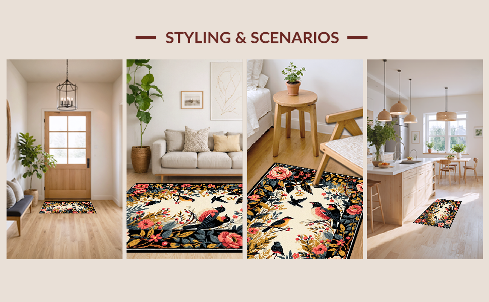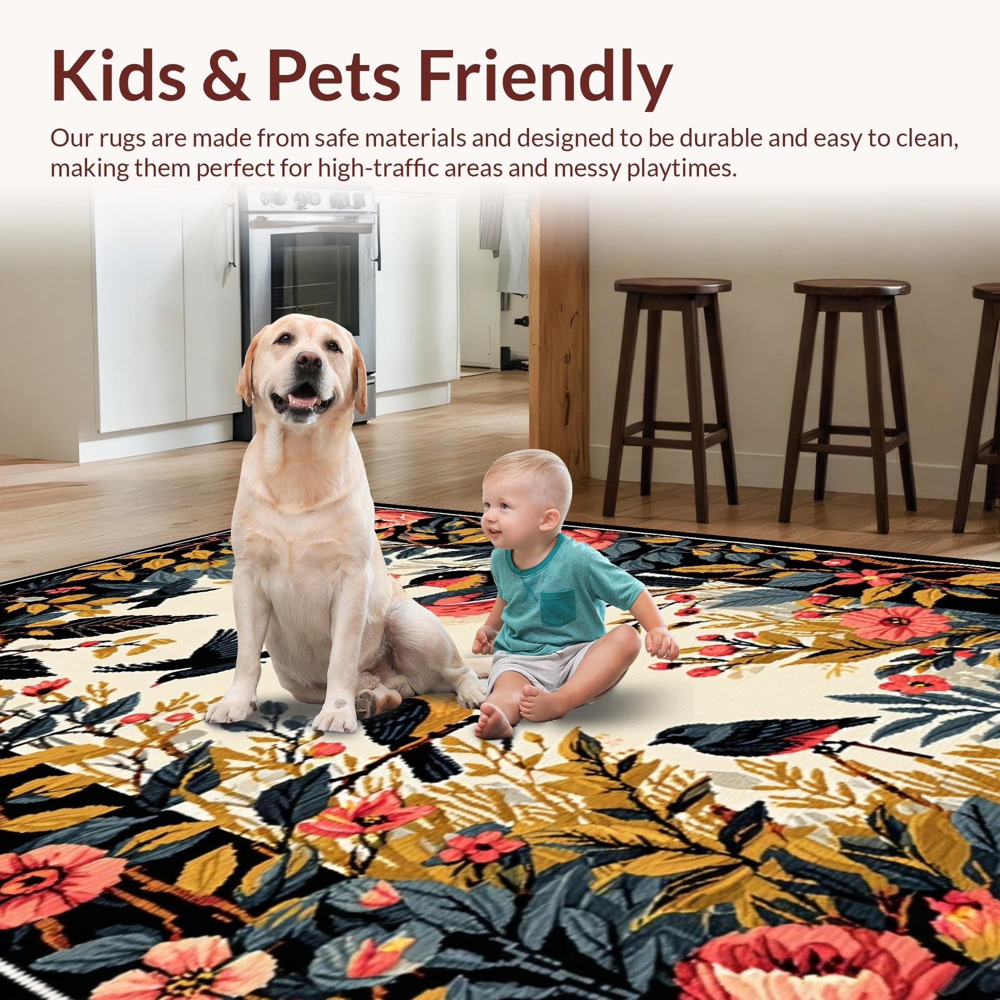 Ultra Soft Area Rug, Non Slip, Stain Resistant, Washable Area Rugs for Living Room, Bedroom, Sleek Vibrant Nature Imagery(Beige) Overview: