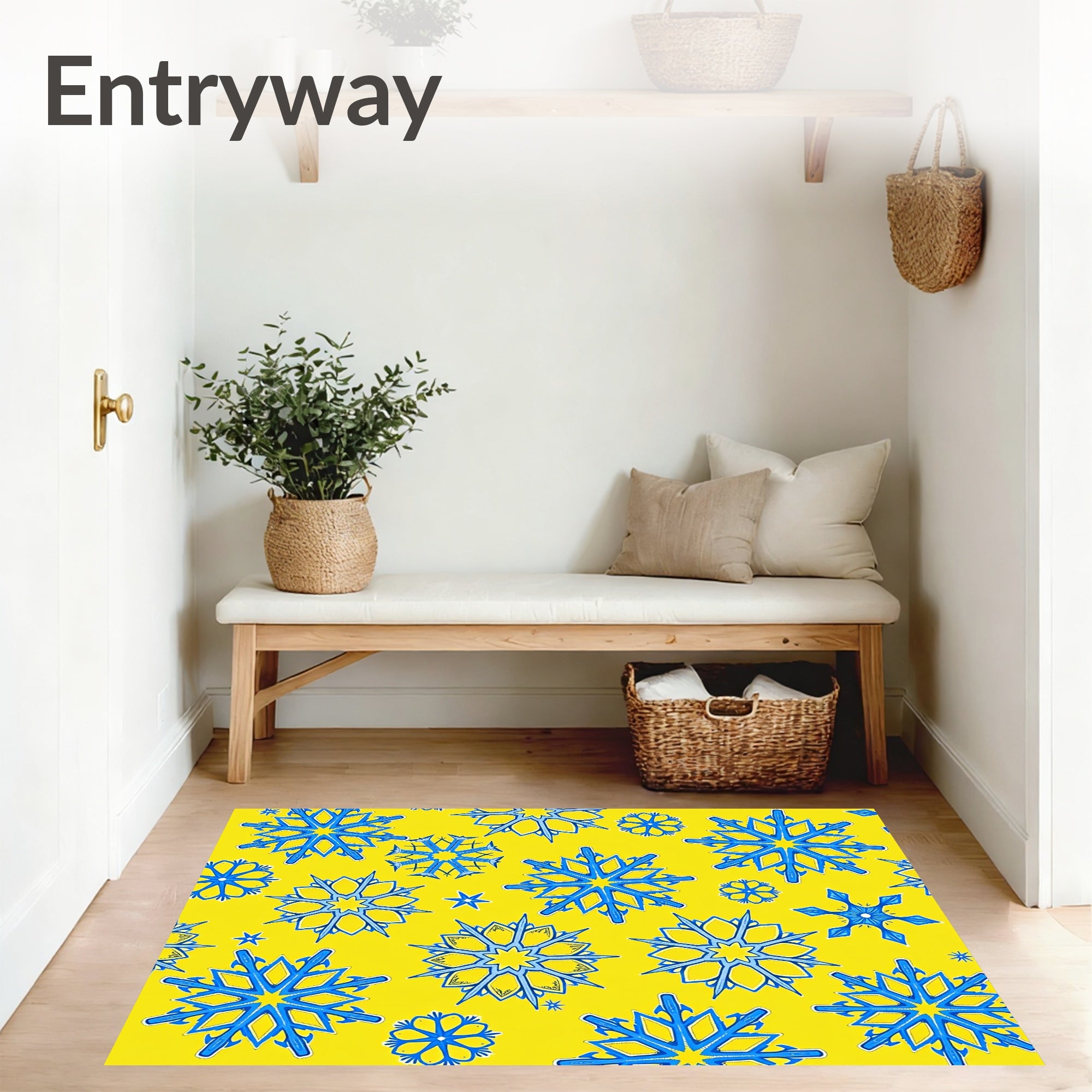Ultra Soft Area Rug, Non Slip, Stain Resistant, Washable Area Rugs for Living Room, Bedroom, Snowflake Array with Crystalline Formations(Yellow) Overview: