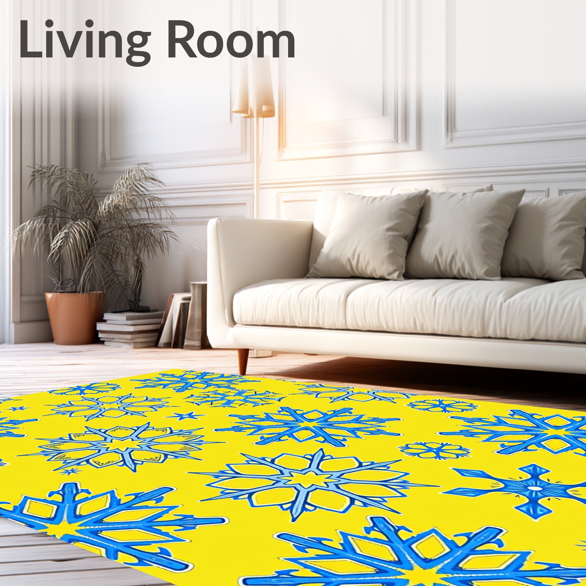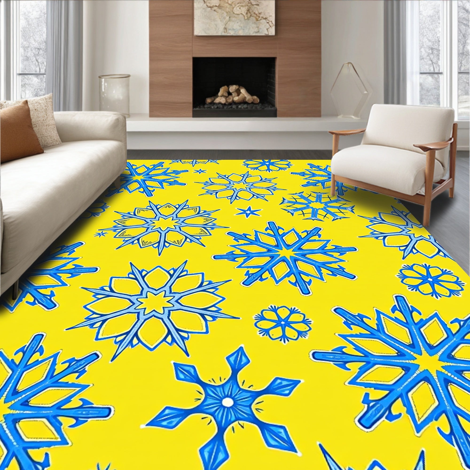 Flatwoven High Traffic Area Rug, Snowflake Array with Crystalline Formations, Non Slip, Stain Resistant, Washable Area Rugs for Living Room, Bedroom (Yellow) Overview: