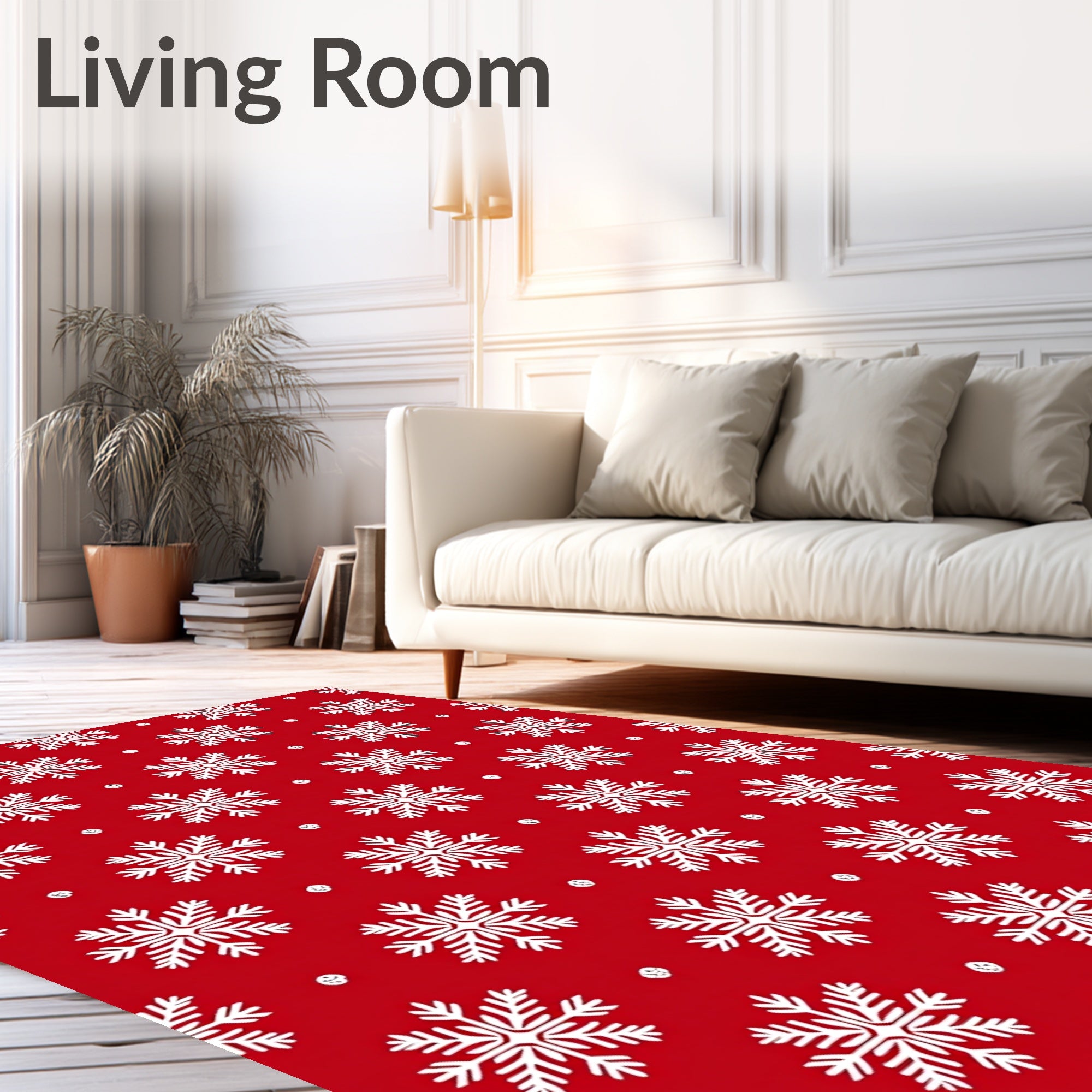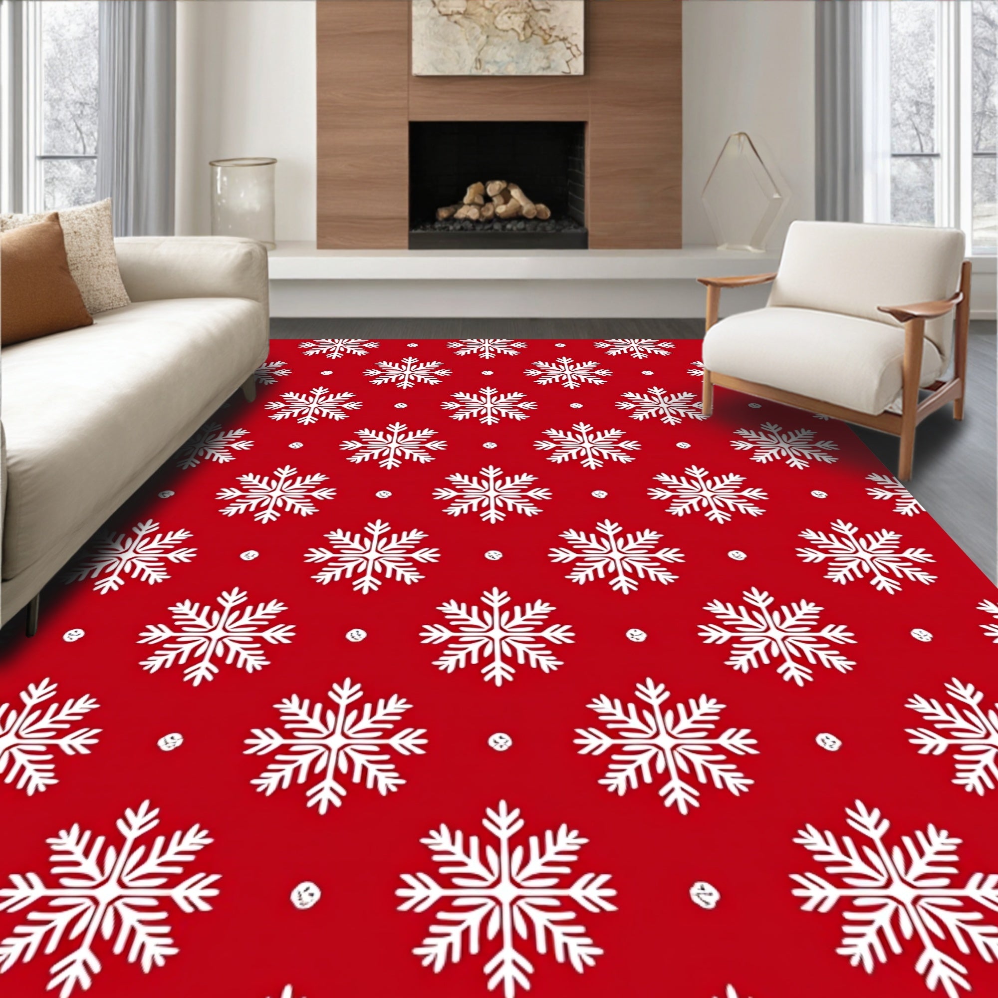 Ultra Soft Area Rug, Non Slip, Stain Resistant, Washable Area Rugs for Living Room, Bedroom, Snowflake Cascade Design with Festive Botanical Motifs and Whimsical Accents(Red) Overview: