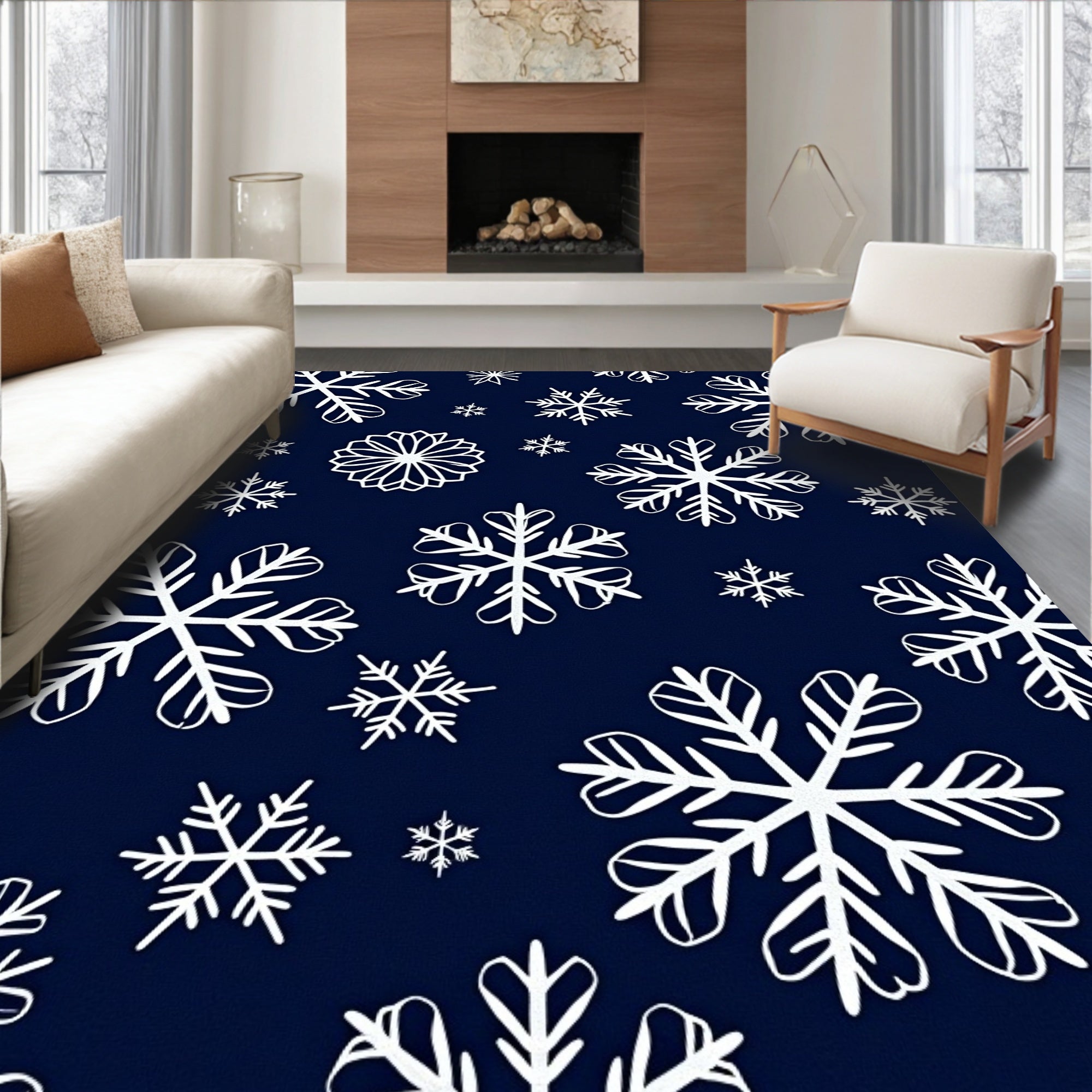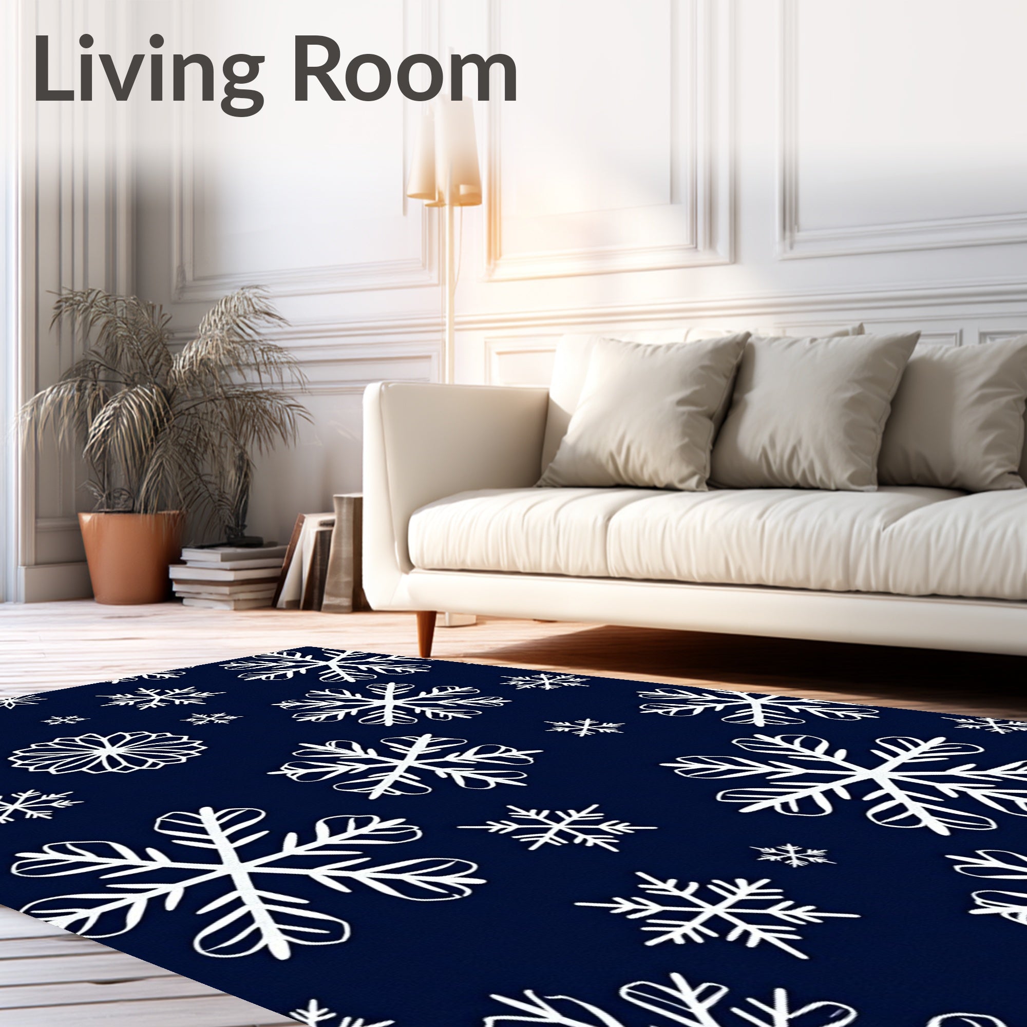Ultra Soft Area Rug, Non Slip, Stain Resistant, Washable Area Rugs for Living Room, Bedroom, Snowflake Cascade Doormat Featuring Intricate Winter Crystal Motifs(Blue) Overview: