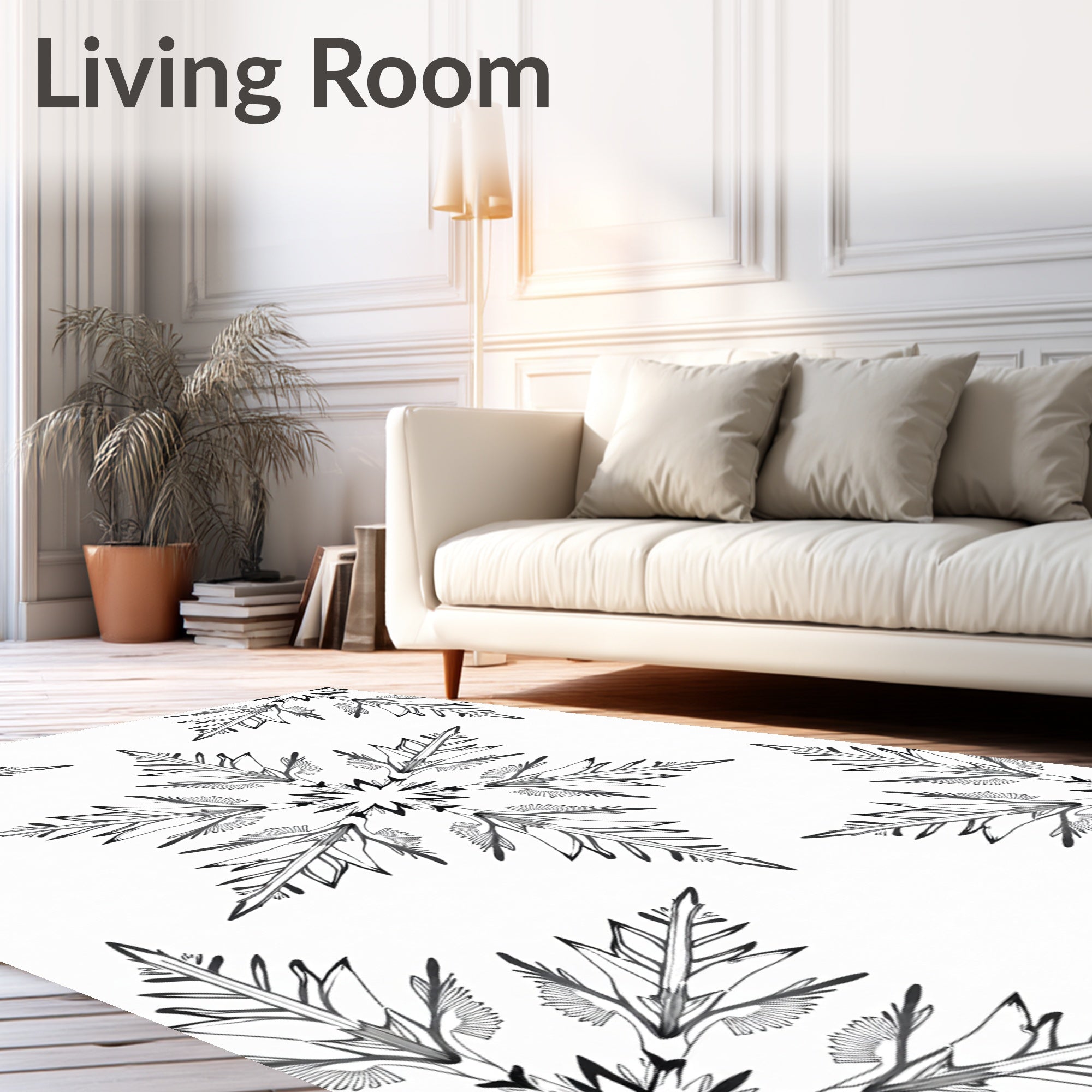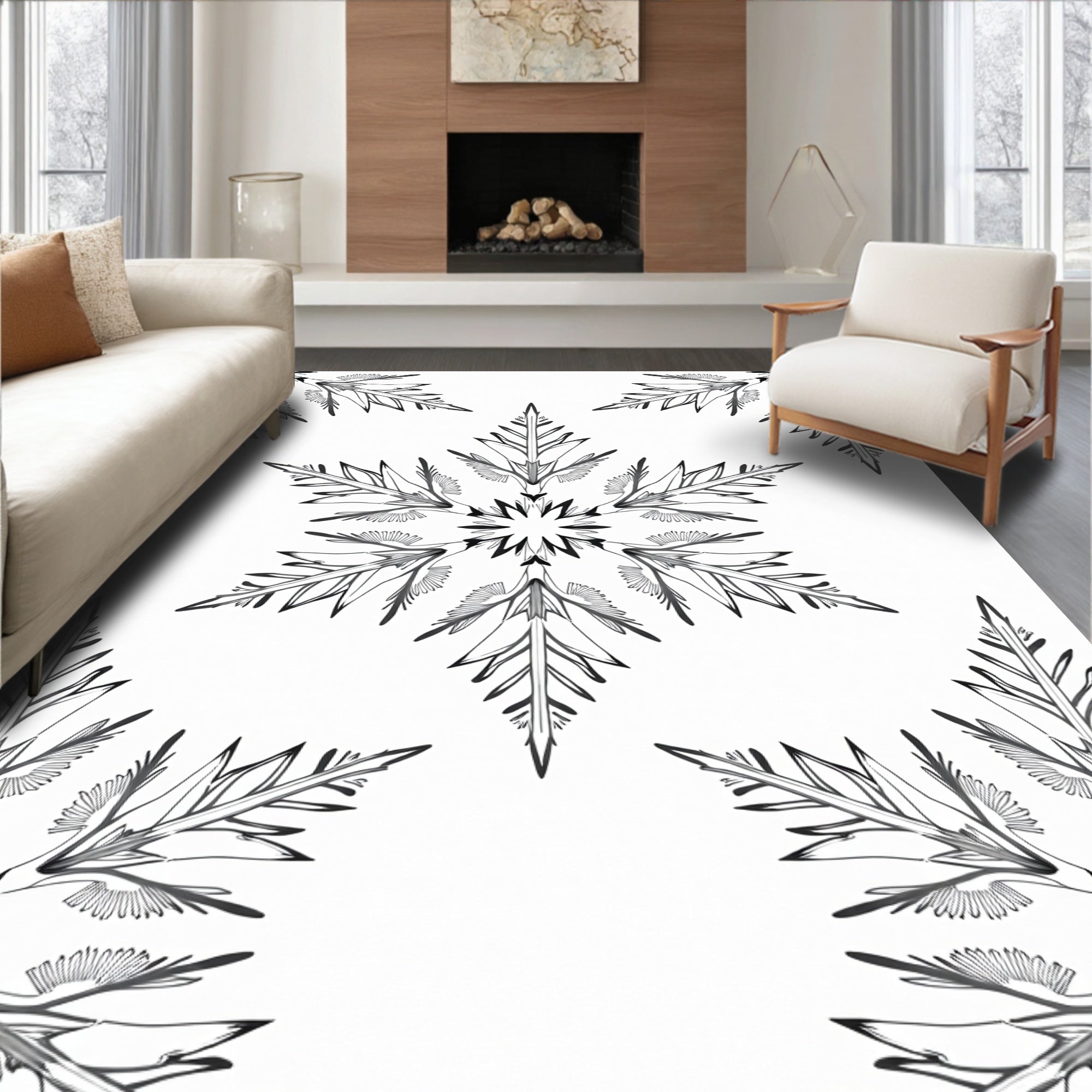 Ultra Soft Area Rug, Non Slip, Stain Resistant, Washable Area Rugs for Living Room, Bedroom, Snowflake Cascade Winter Doormat with Crystalline Motifs(Black) Overview: