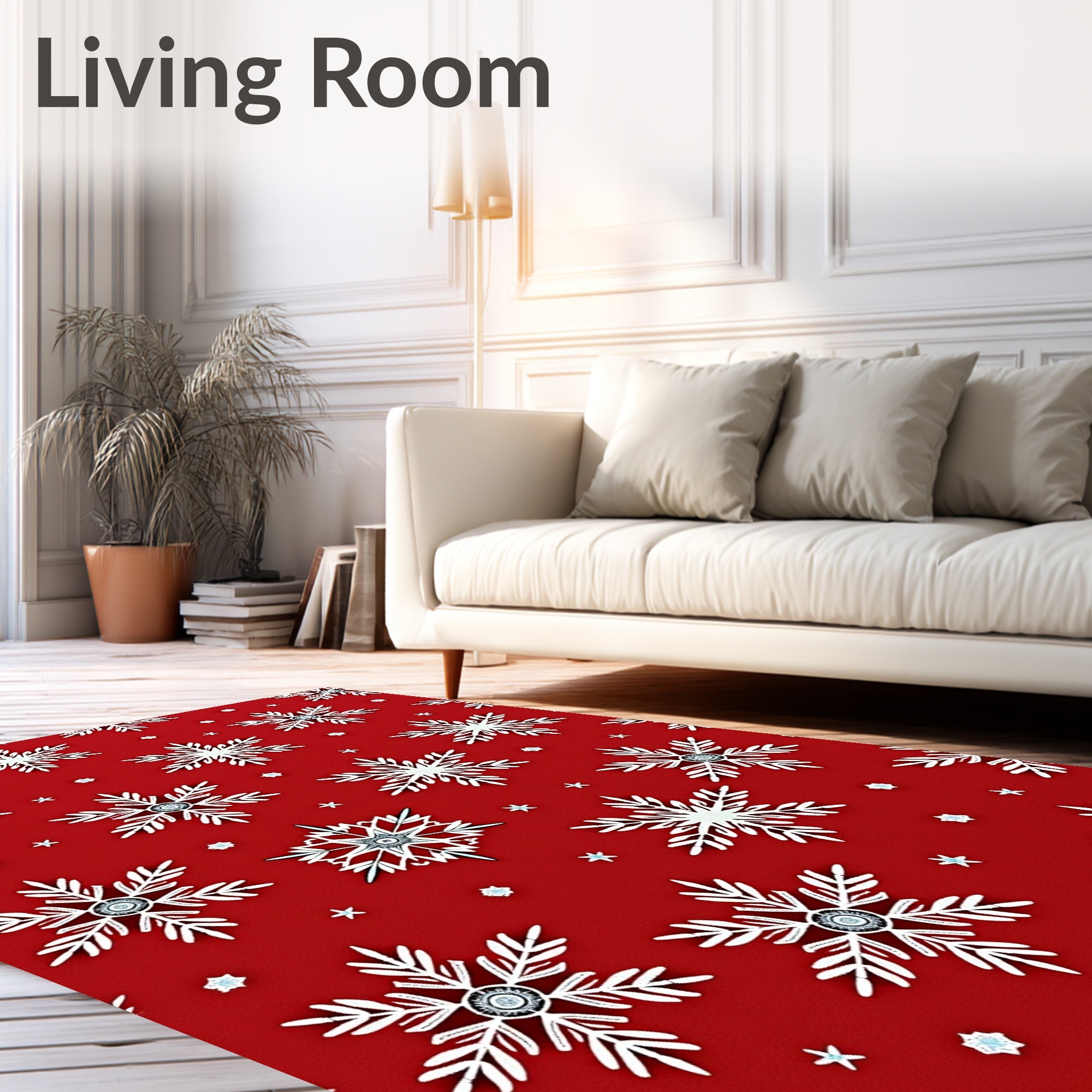 Ultra Soft Area Rug, Non Slip, Stain Resistant, Washable Area Rugs for Living Room, Bedroom, Snowflake Cascade with Festive Starburst Accents(Red) Overview: