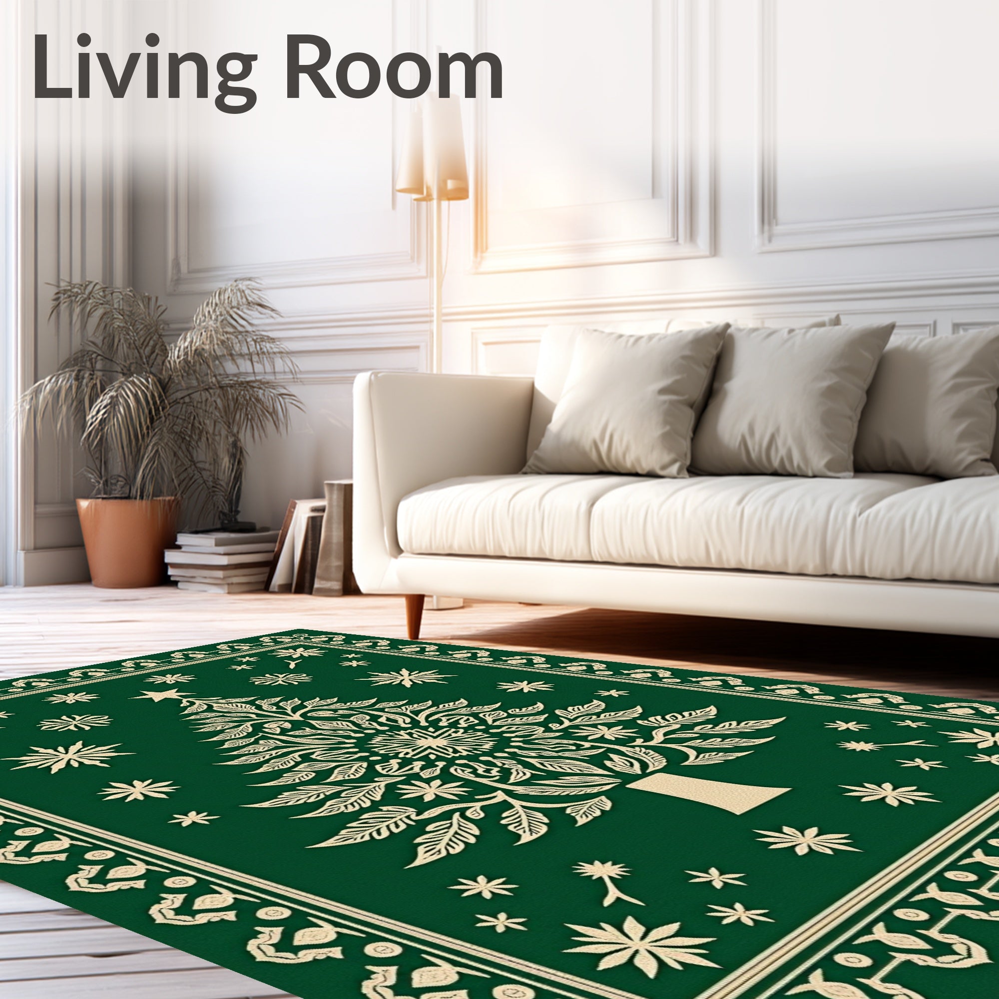 Ultra Soft Area Rug, Non Slip, Stain Resistant, Washable Area Rugs for Living Room, Bedroom, Snowflake Christmas Tree Accent Semi Arc(Green) Overview: