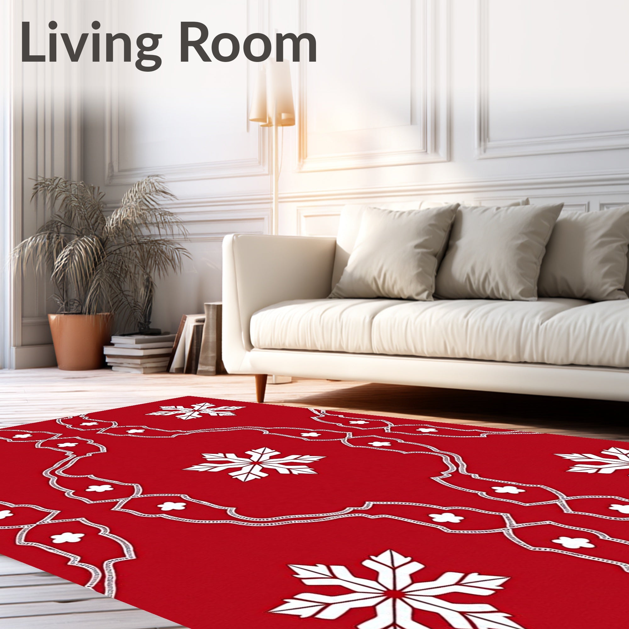 Ultra Soft Area Rug, Non Slip, Stain Resistant, Washable Area Rugs for Living Room, Bedroom, Snowflake Crystal Area with Intricate Winter Design(Red) Overview: