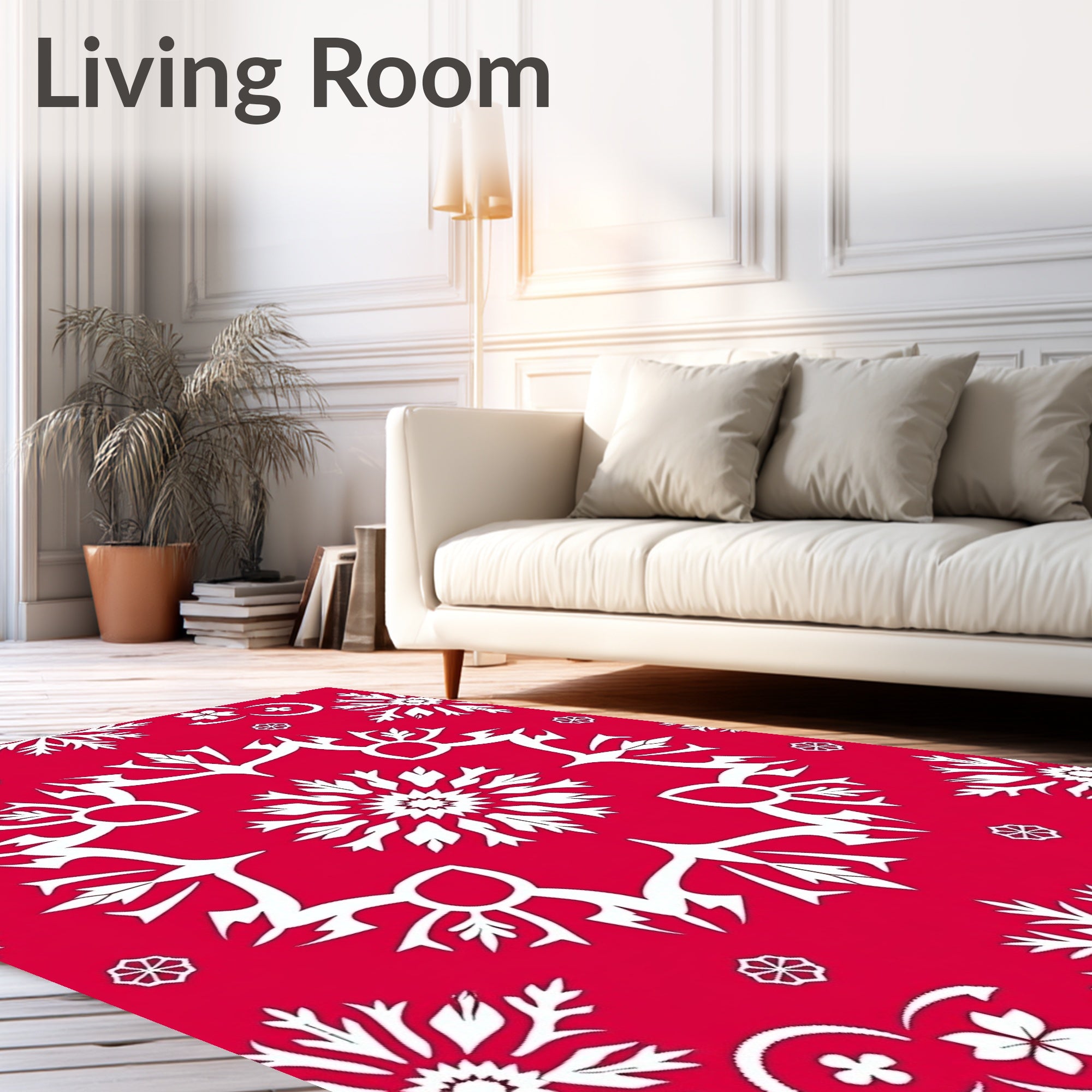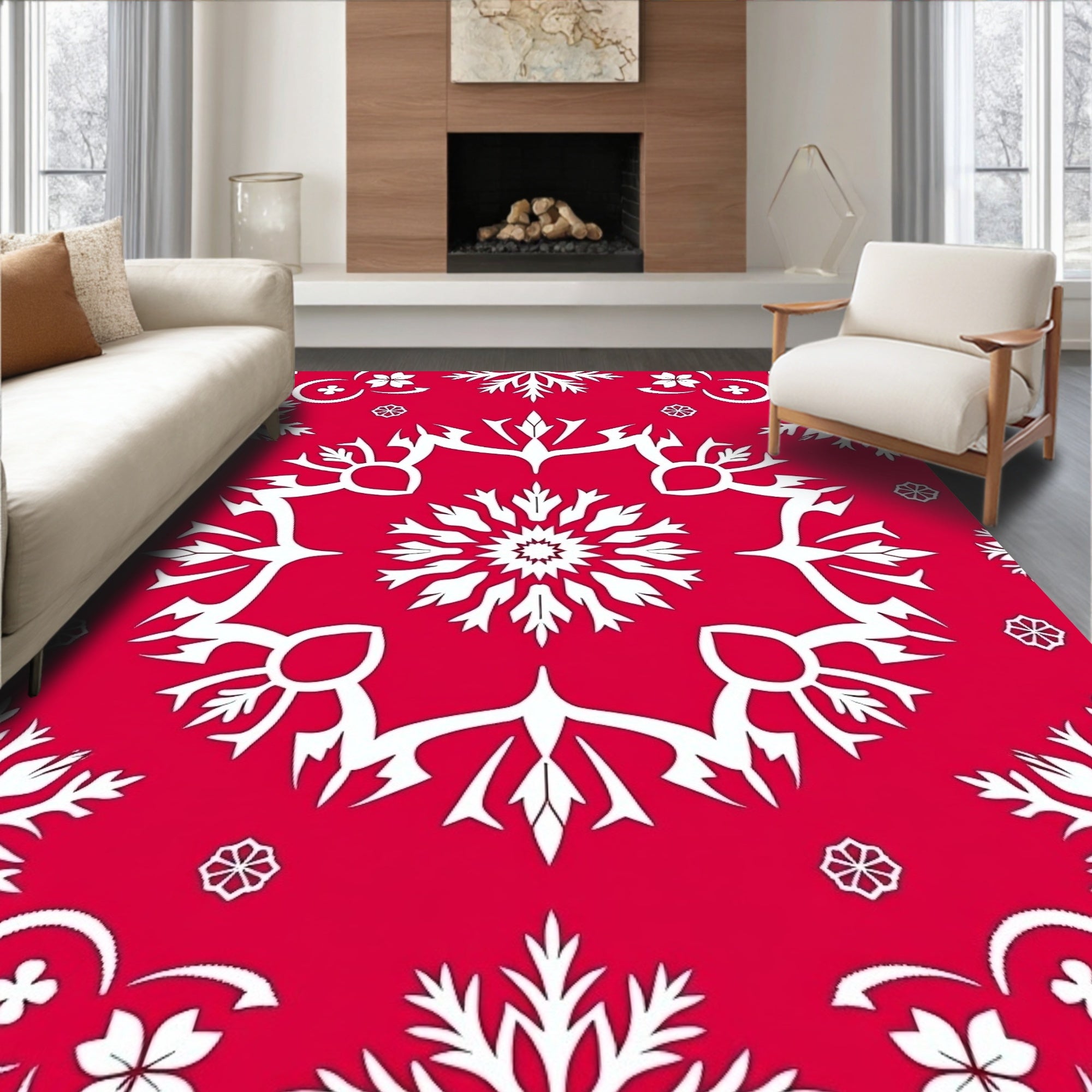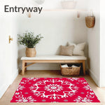 Ultra Soft Area Rug, Non Slip, Stain Resistant, Washable Area Rugs for Living Room, Bedroom, Snowflake Crystal Medallion Design Winter Holiday Accent(Red) Overview: