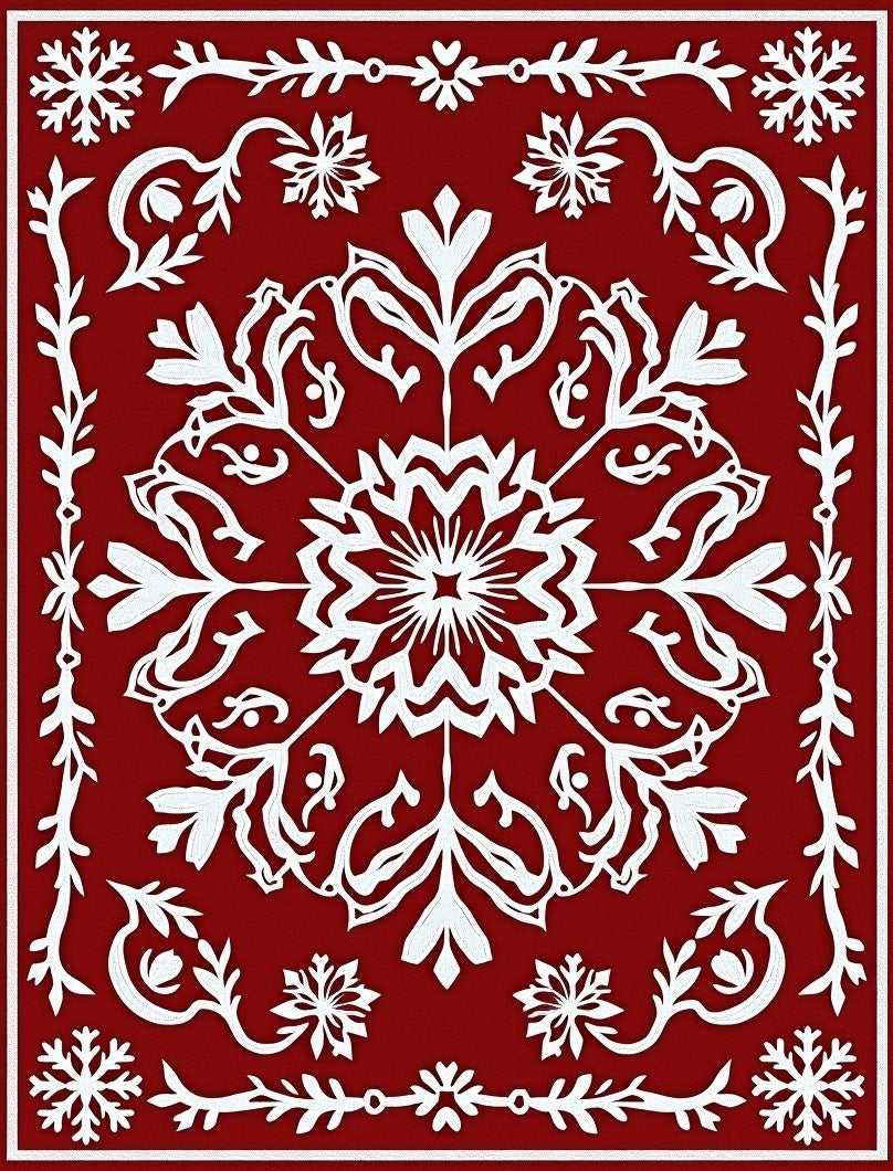 Snowflake Holiday Festive Low Pile Boho Design(Red)