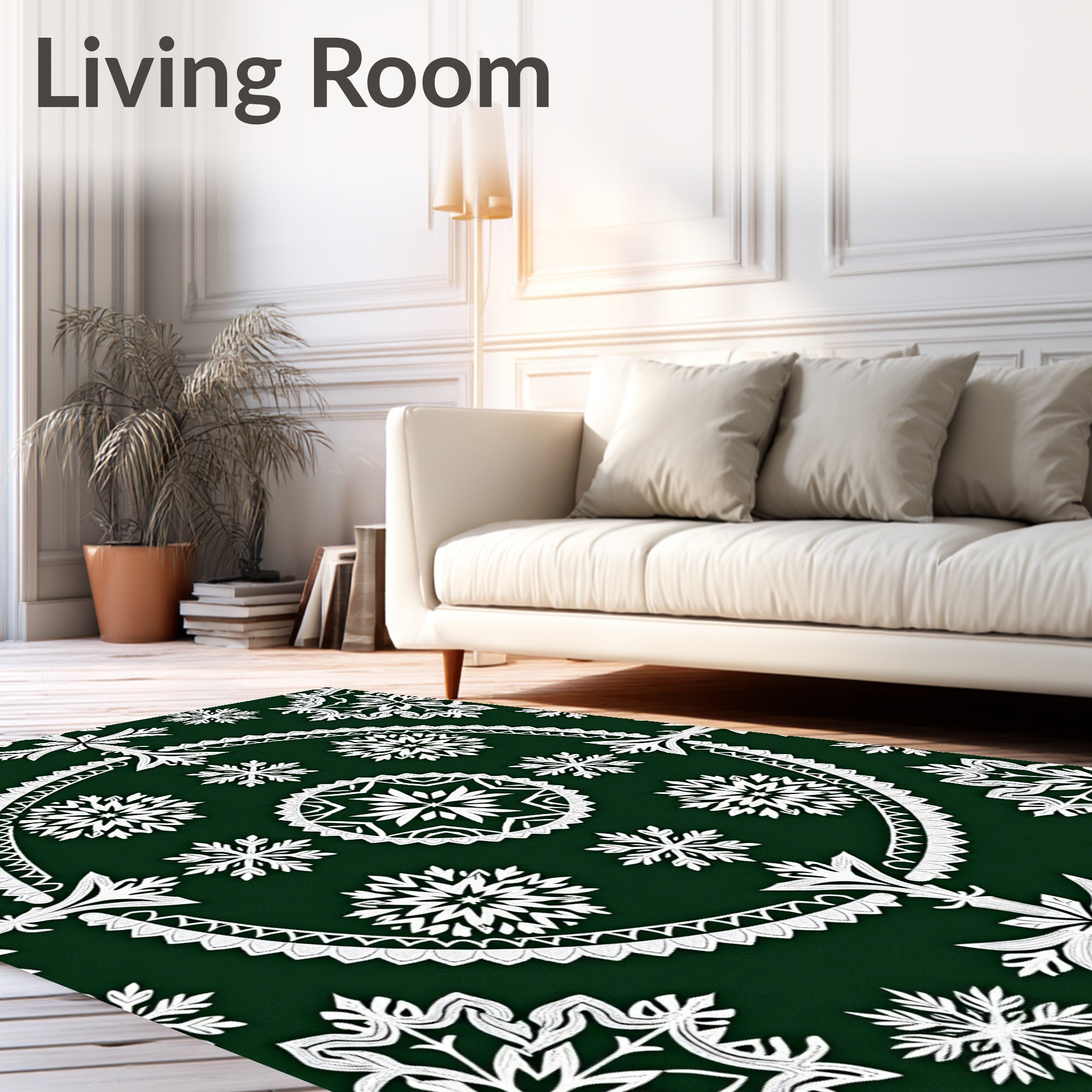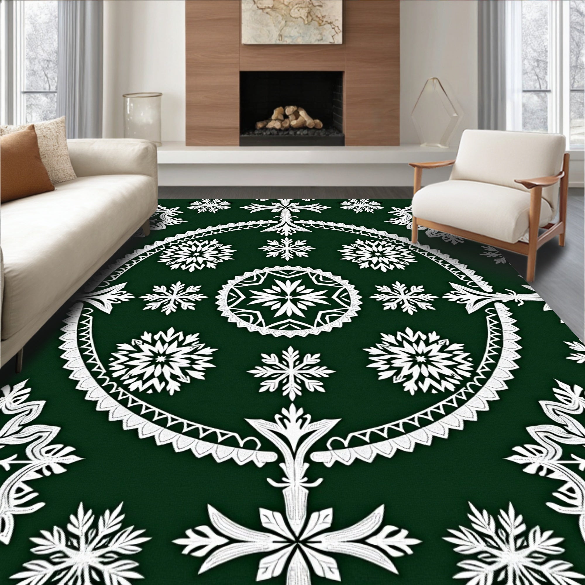 Ultra Soft Area Rug, Non Slip, Stain Resistant, Washable Area Rugs for Living Room, Bedroom, Snowflake Medallion Design Anti Slip Hallway(Green) Overview: