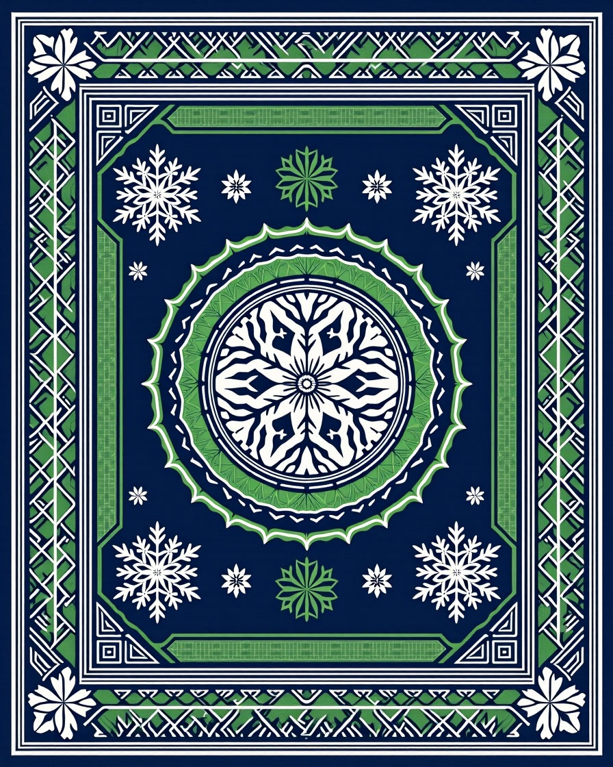 Snowflake Medallion Motif with Trellis and Nordic Accents(Blue)