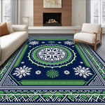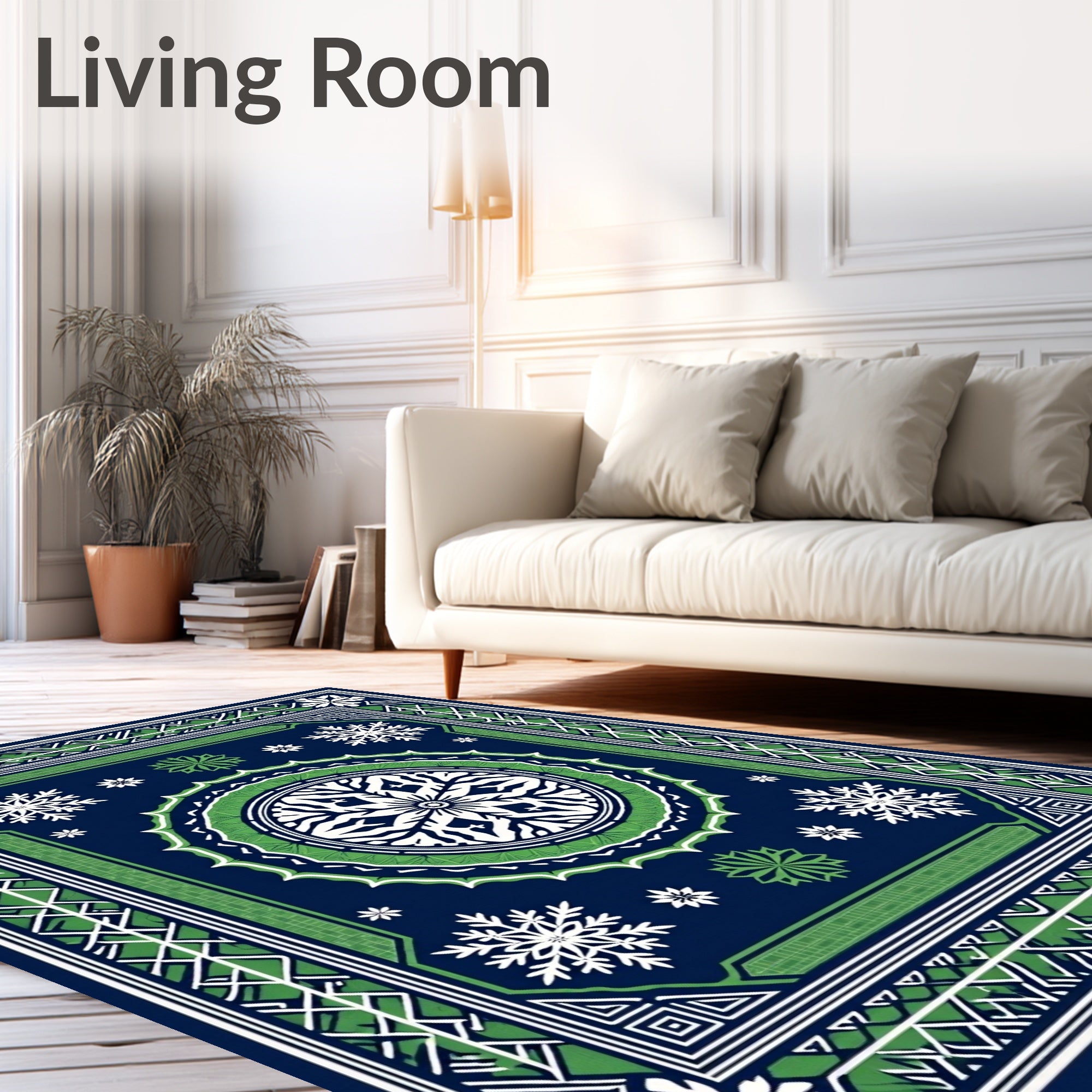 Ultra Soft Area Rug, Non Slip, Stain Resistant, Washable Area Rugs for Living Room, Bedroom, Snowflake Medallion Motif with Trellis and Nordic Accents(Blue) Overview: