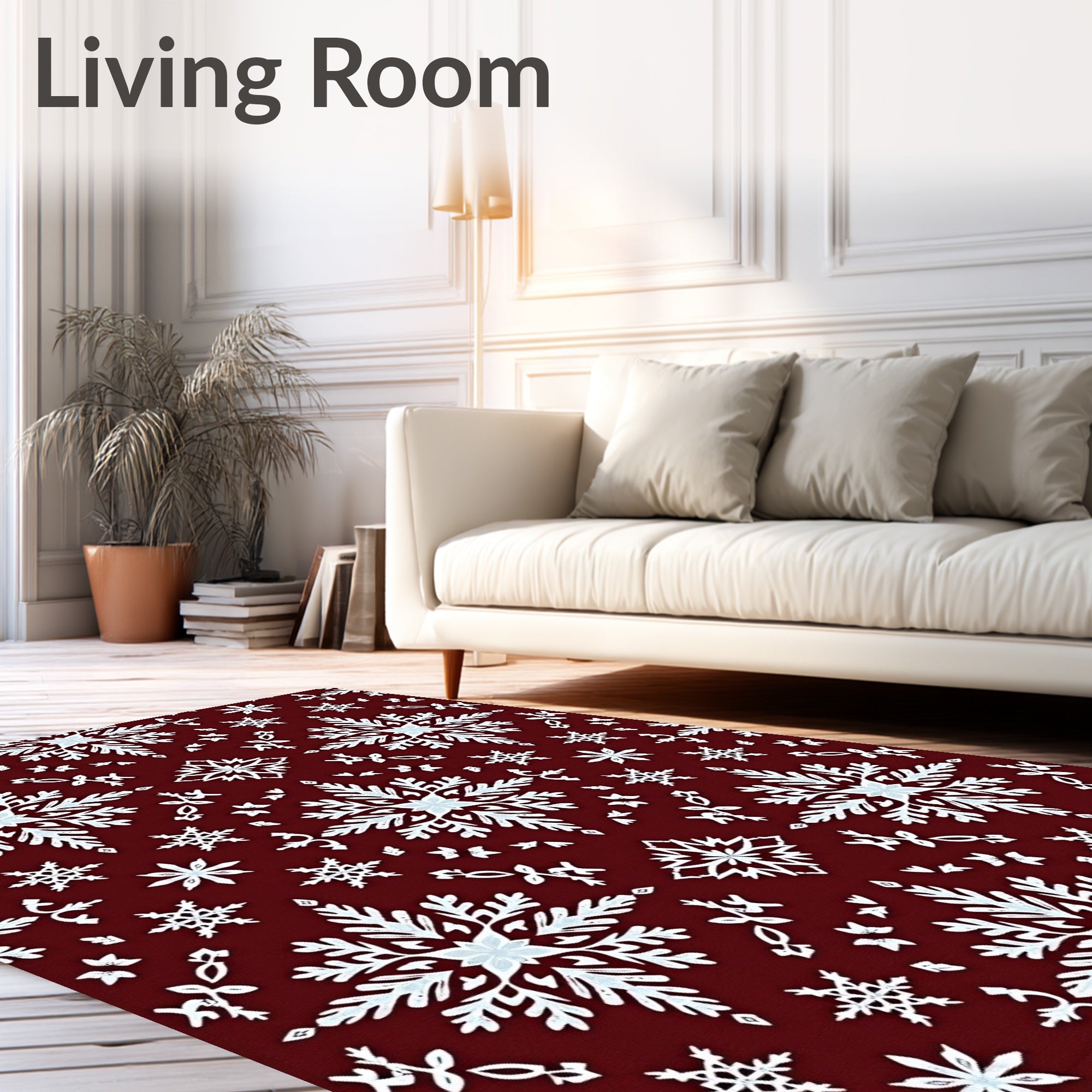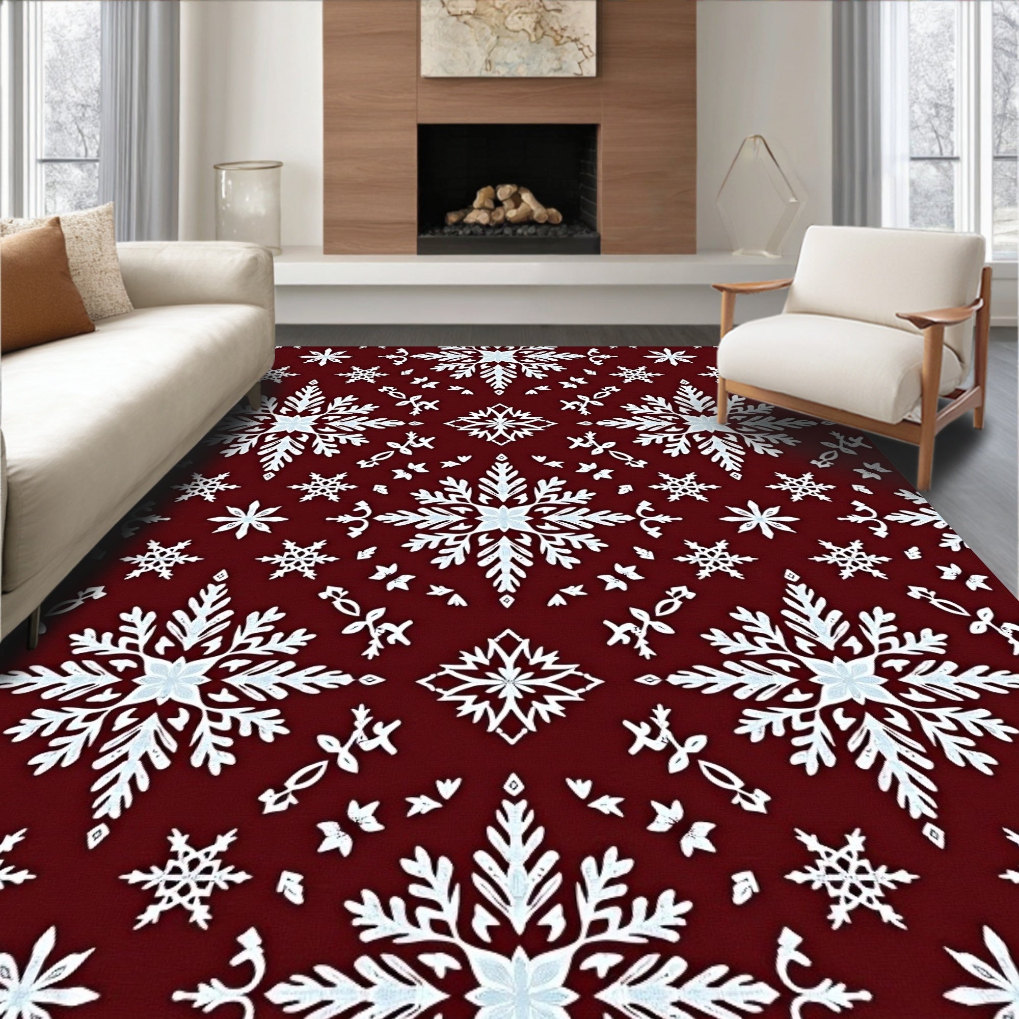 Ultra Soft Area Rug, Non Slip, Stain Resistant, Washable Area Rugs for Living Room, Bedroom, Snowflake Medallion Winter Celebration(Red) Overview: