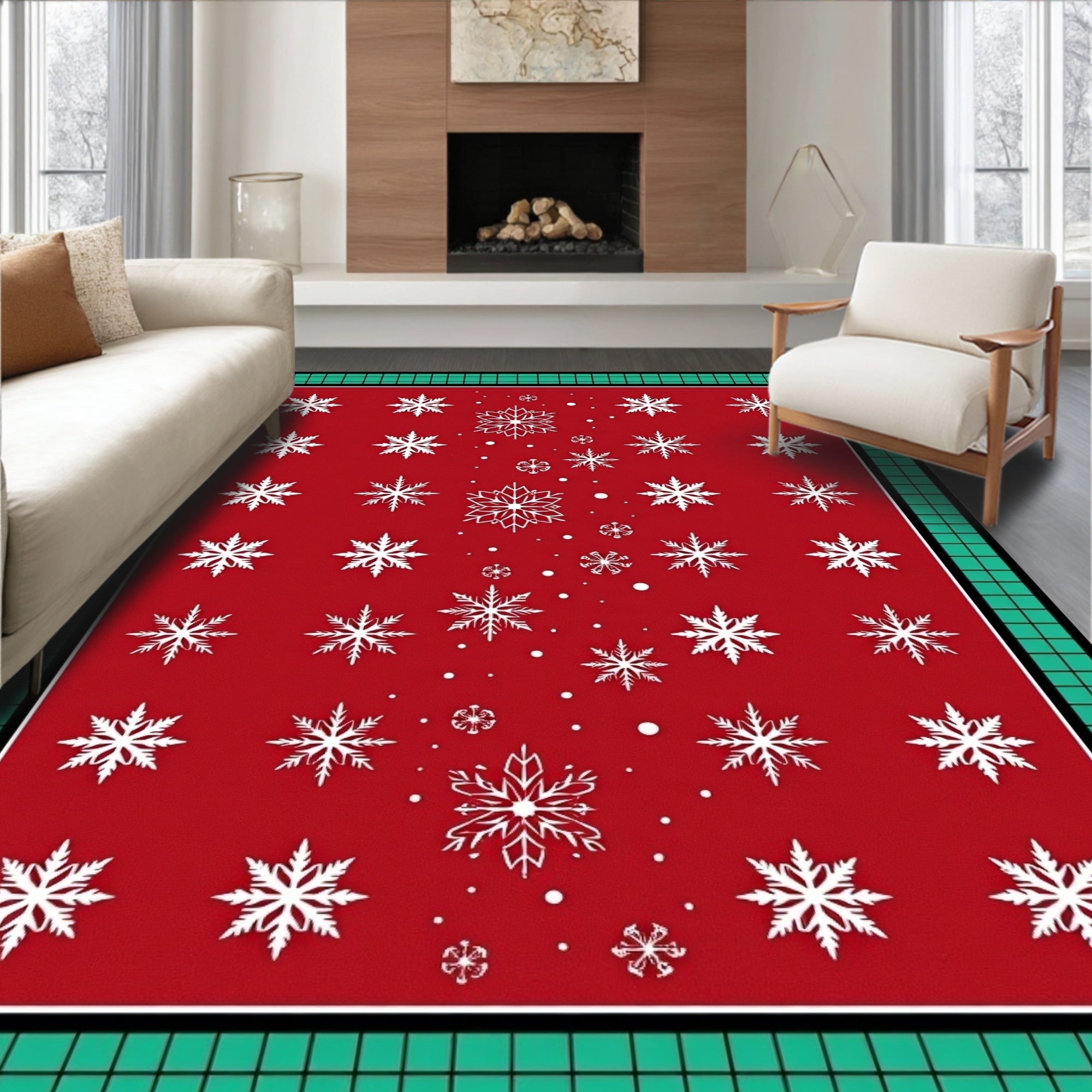 Ultra Soft Area Rug, Non Slip, Stain Resistant, Washable Area Rugs for Living Room, Bedroom, Snowflake Motif Holiday with Festive Checkered Border Design(Red) Overview: