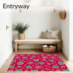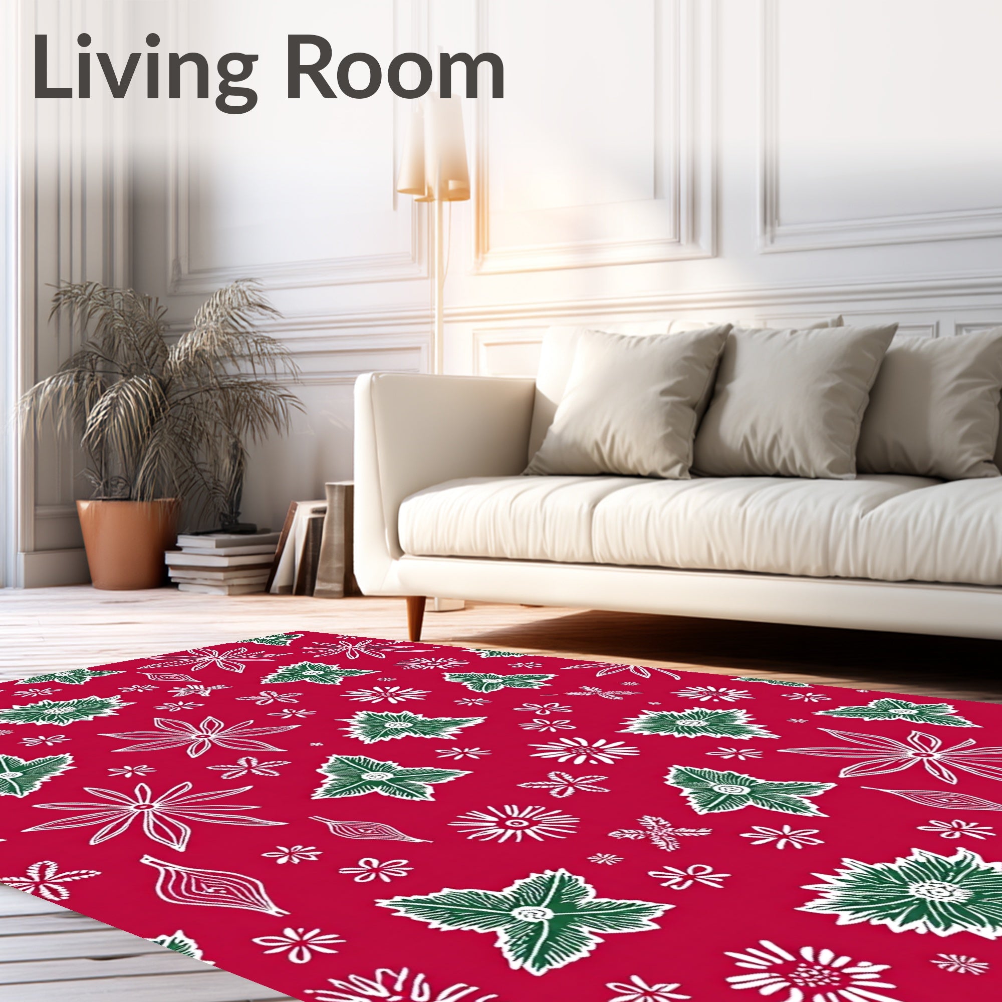 Ultra Soft Area Rug, Non Slip, Stain Resistant, Washable Area Rugs for Living Room, Bedroom, Snowy Pinecone Cascade Interlocking Festive Foliage(Red) Overview: