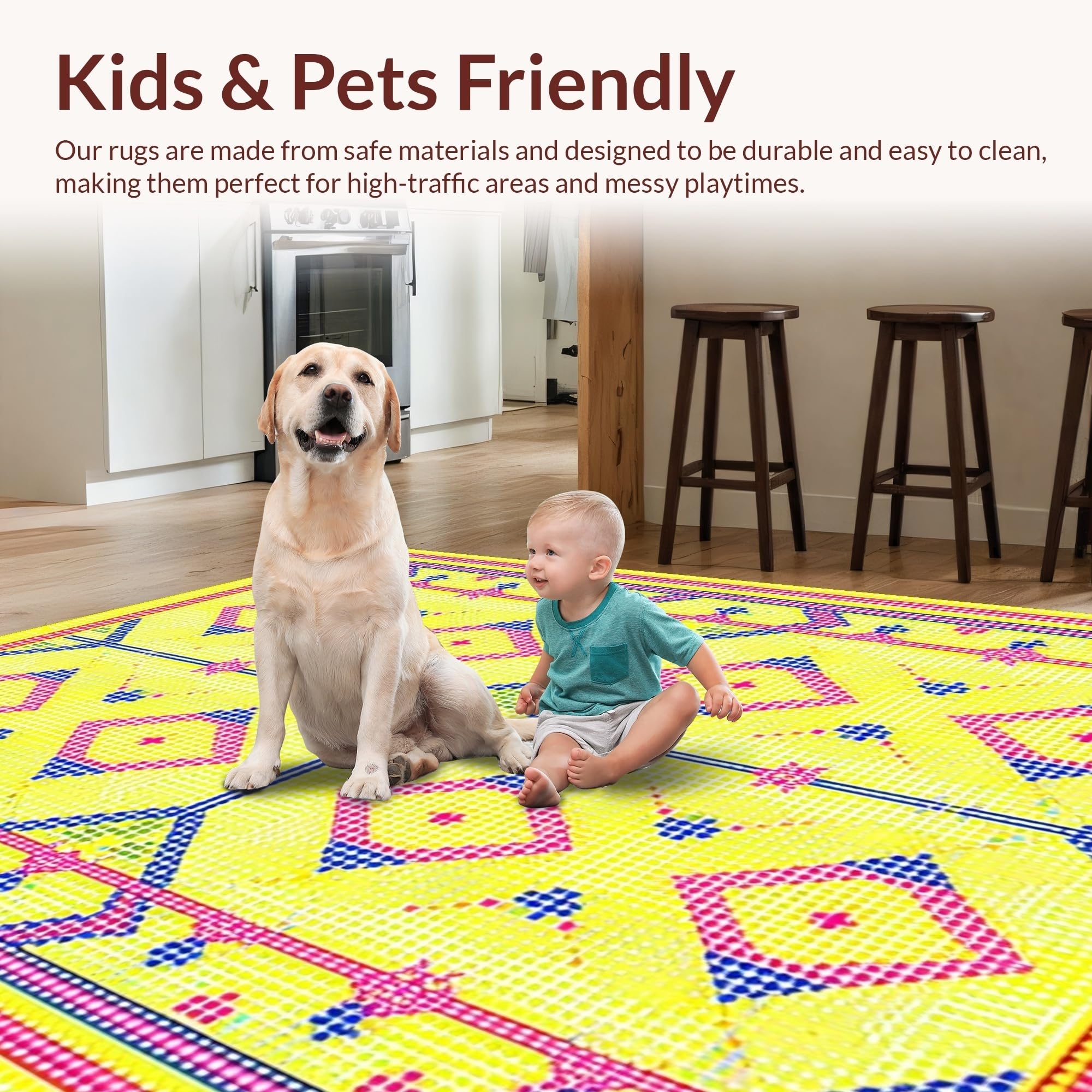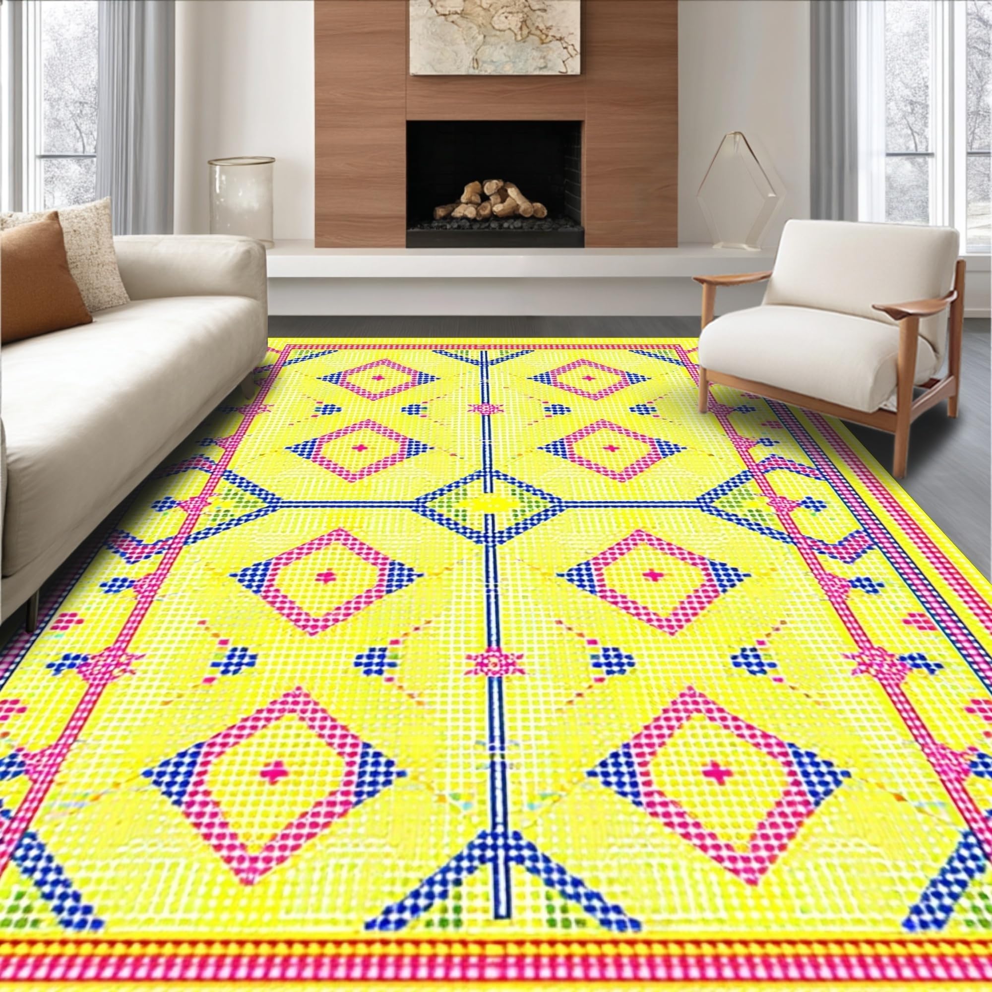 Ultra Soft Area Rug, Non Slip, Stain Resistant, Washable Area Rugs for Living Room, Bedroom, Soft Abstract Colorful Composition(Yellow) Overview: