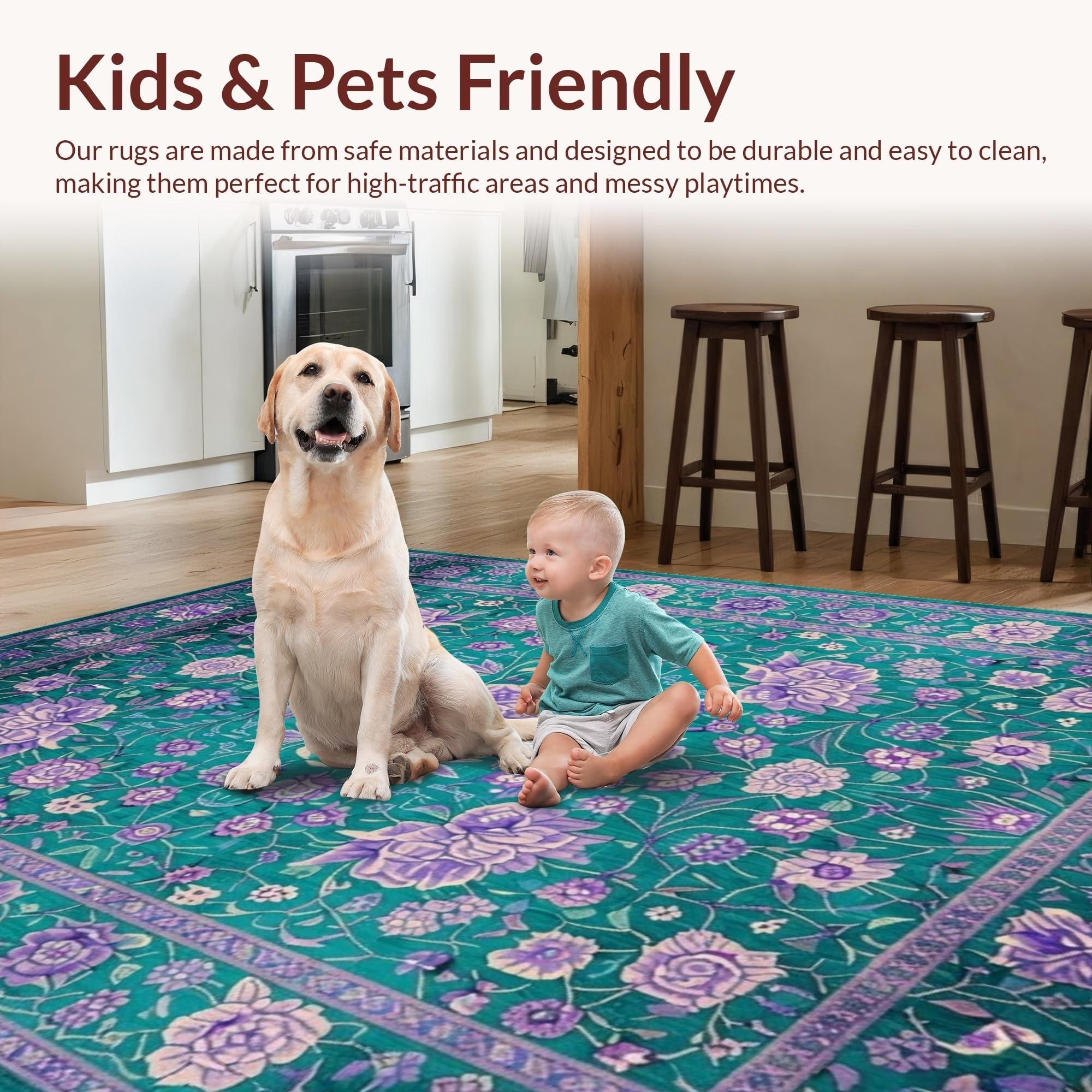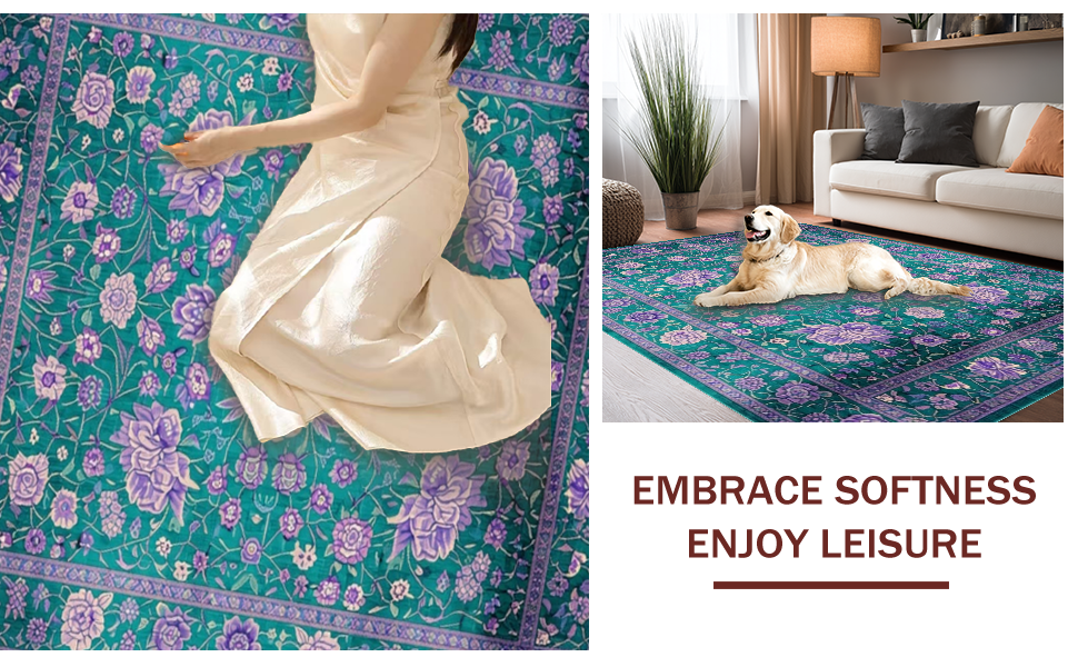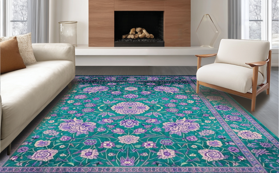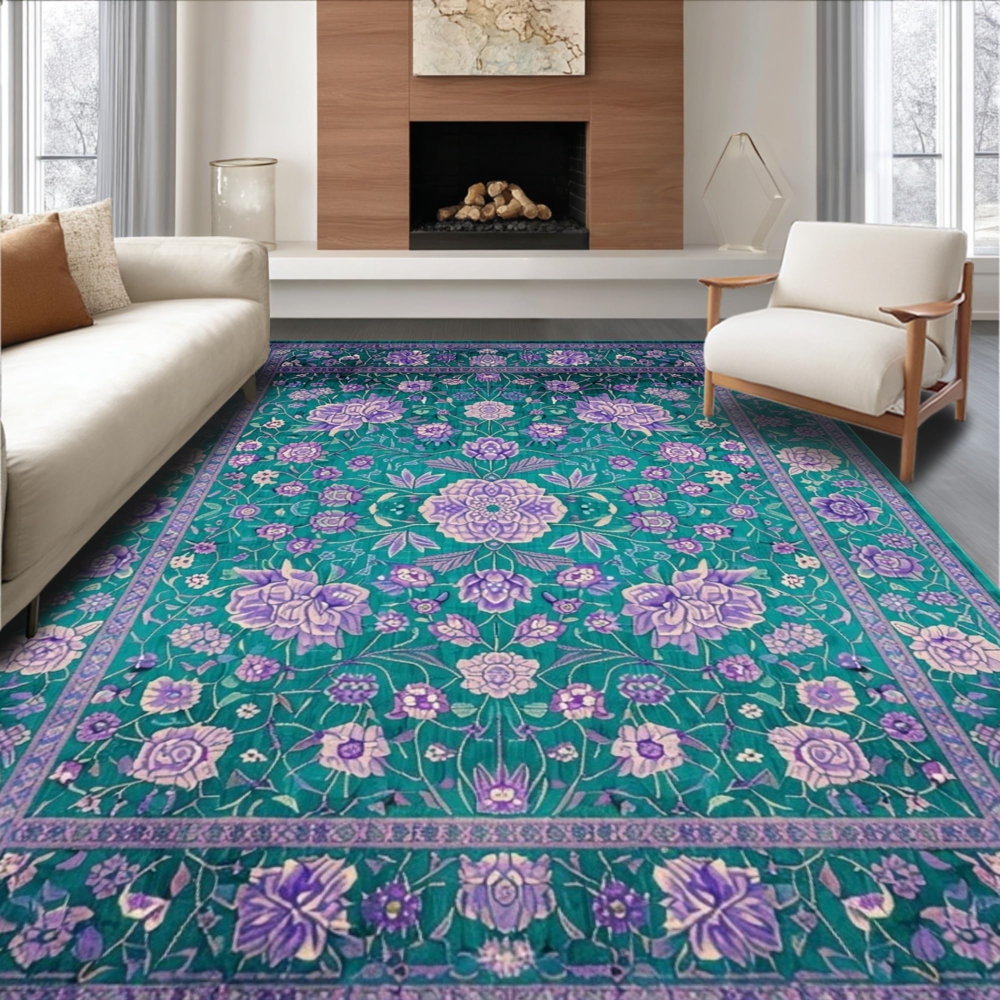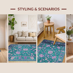 Ultra Soft Area Rug, Non Slip, Stain Resistant, Washable Area Rugs for Living Room, Bedroom, Soft Earthy Floral Whimsy(Green) Overview: