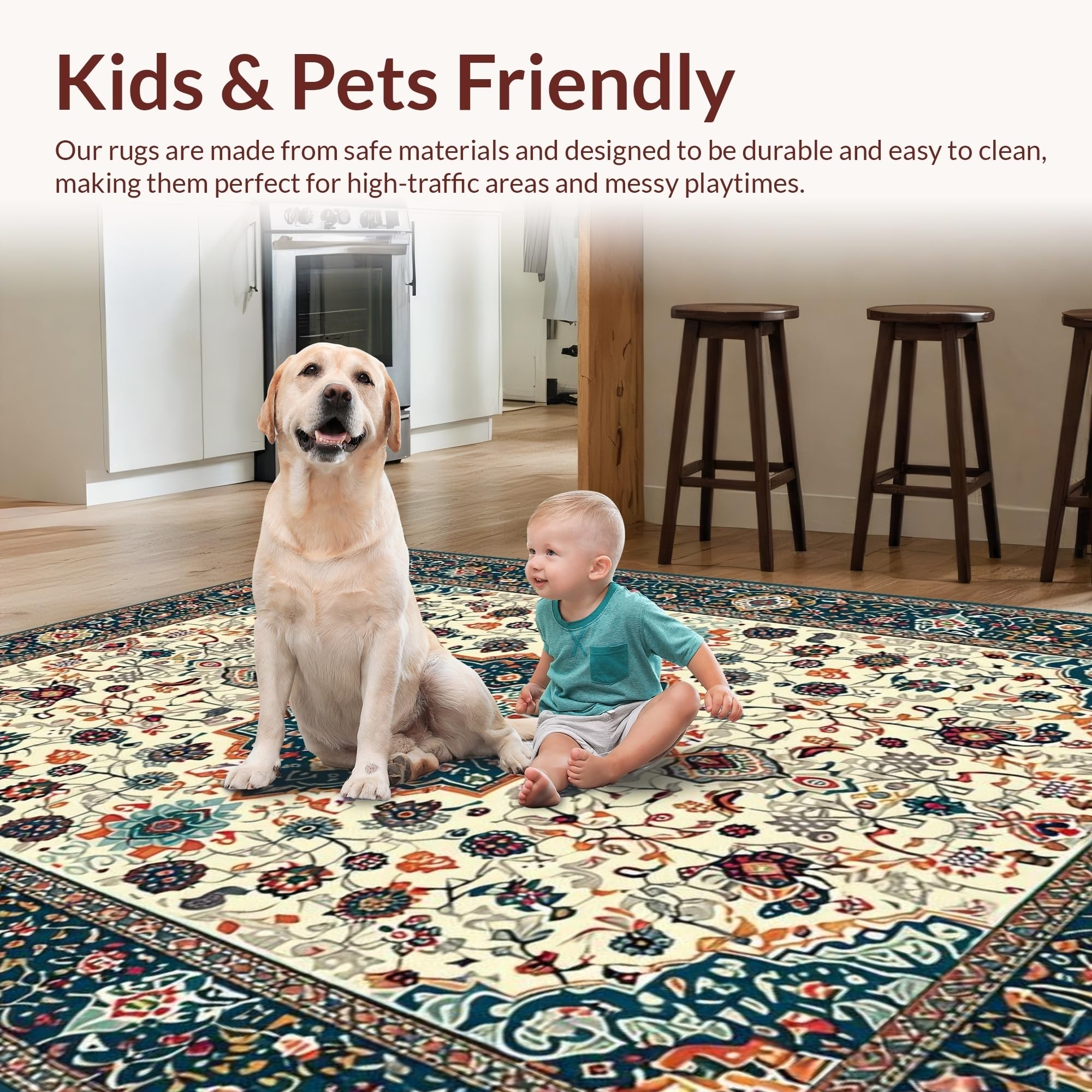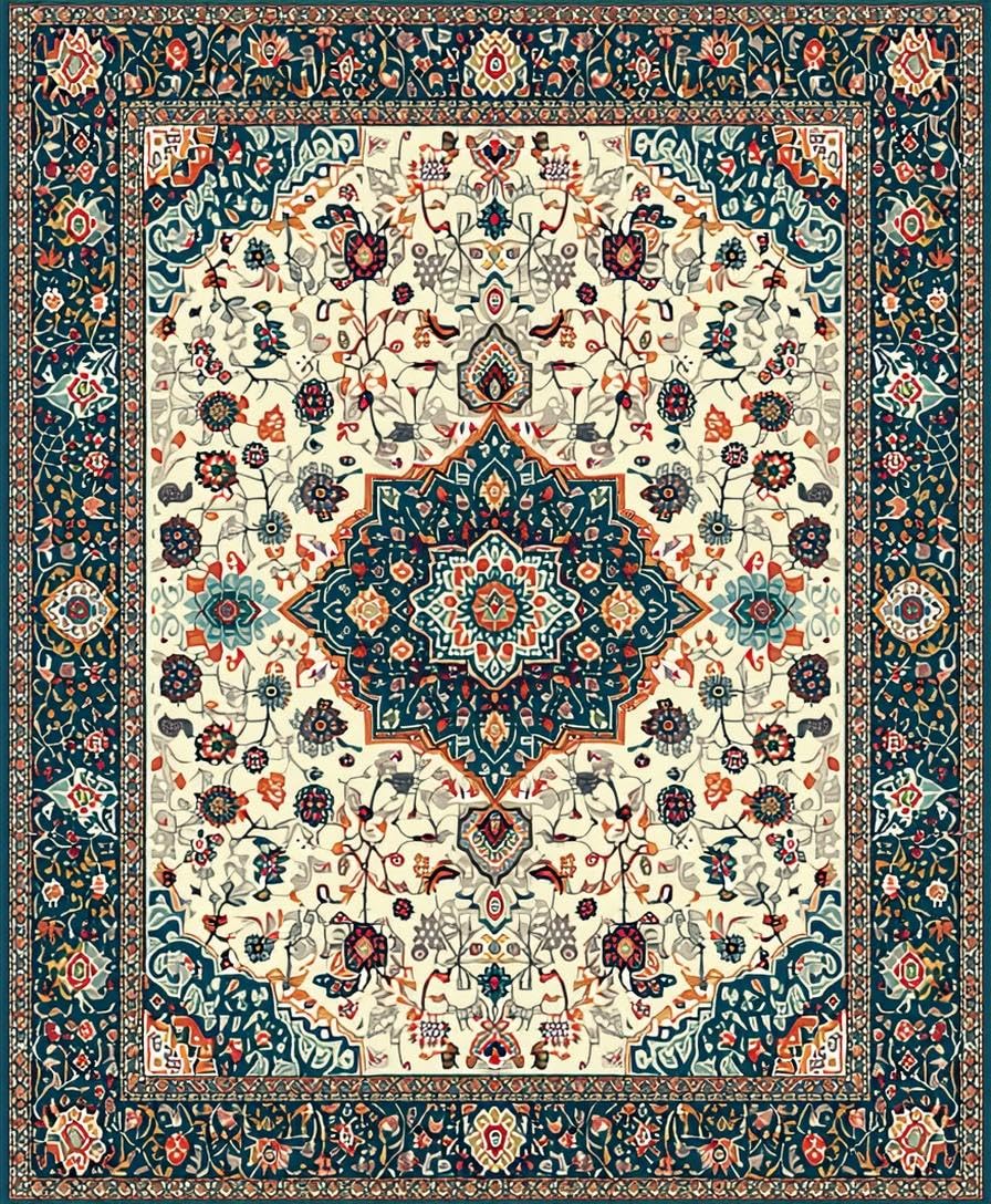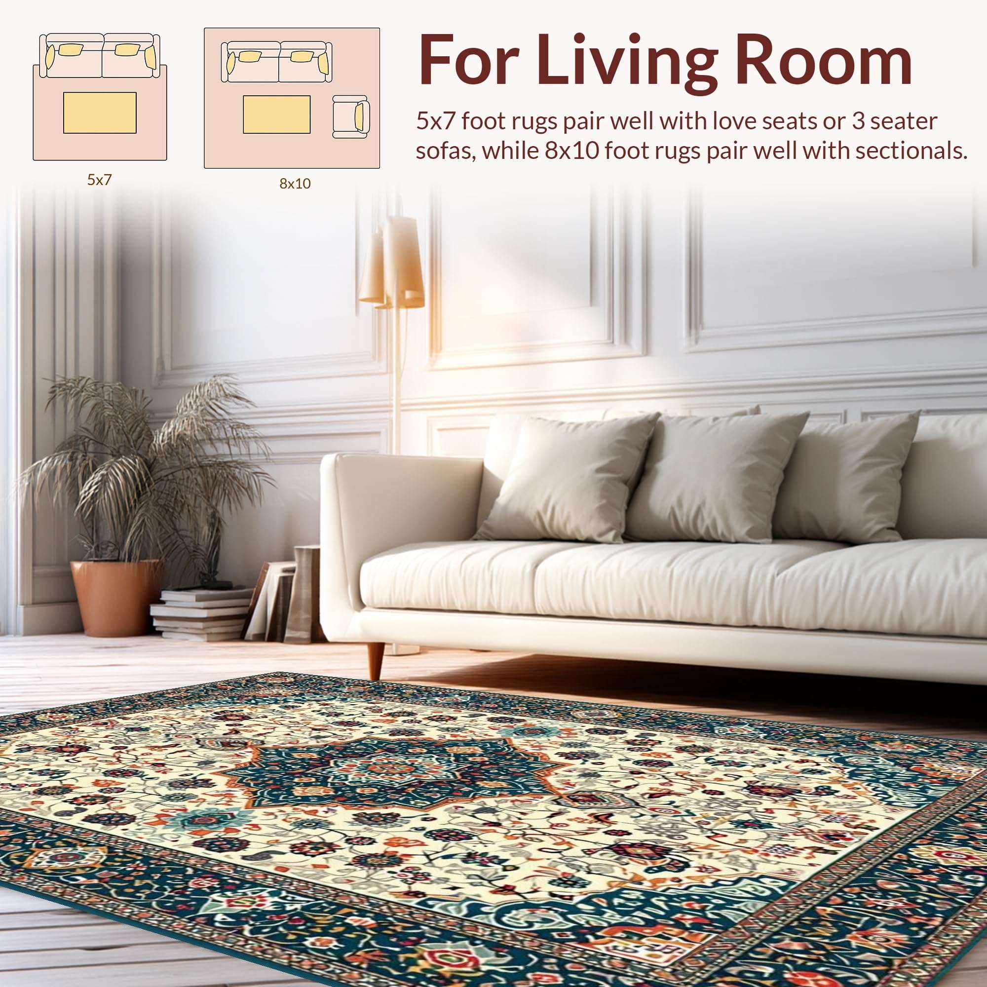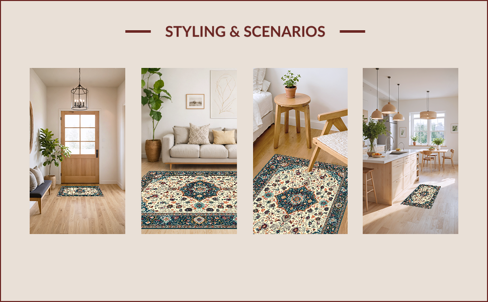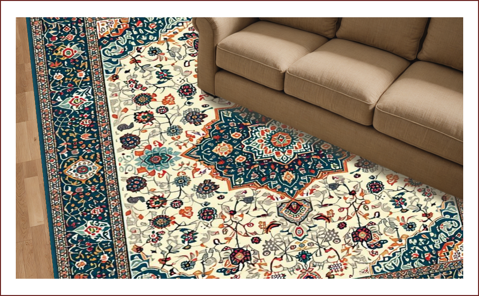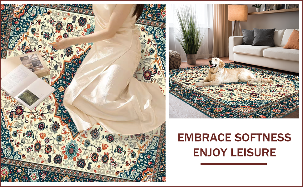 Ultra Soft Area Rug, Non Slip, Stain Resistant, Washable Area Rugs for Living Room, Bedroom, Soft Earthy Paisley Aesthetic(Ivory) Overview: