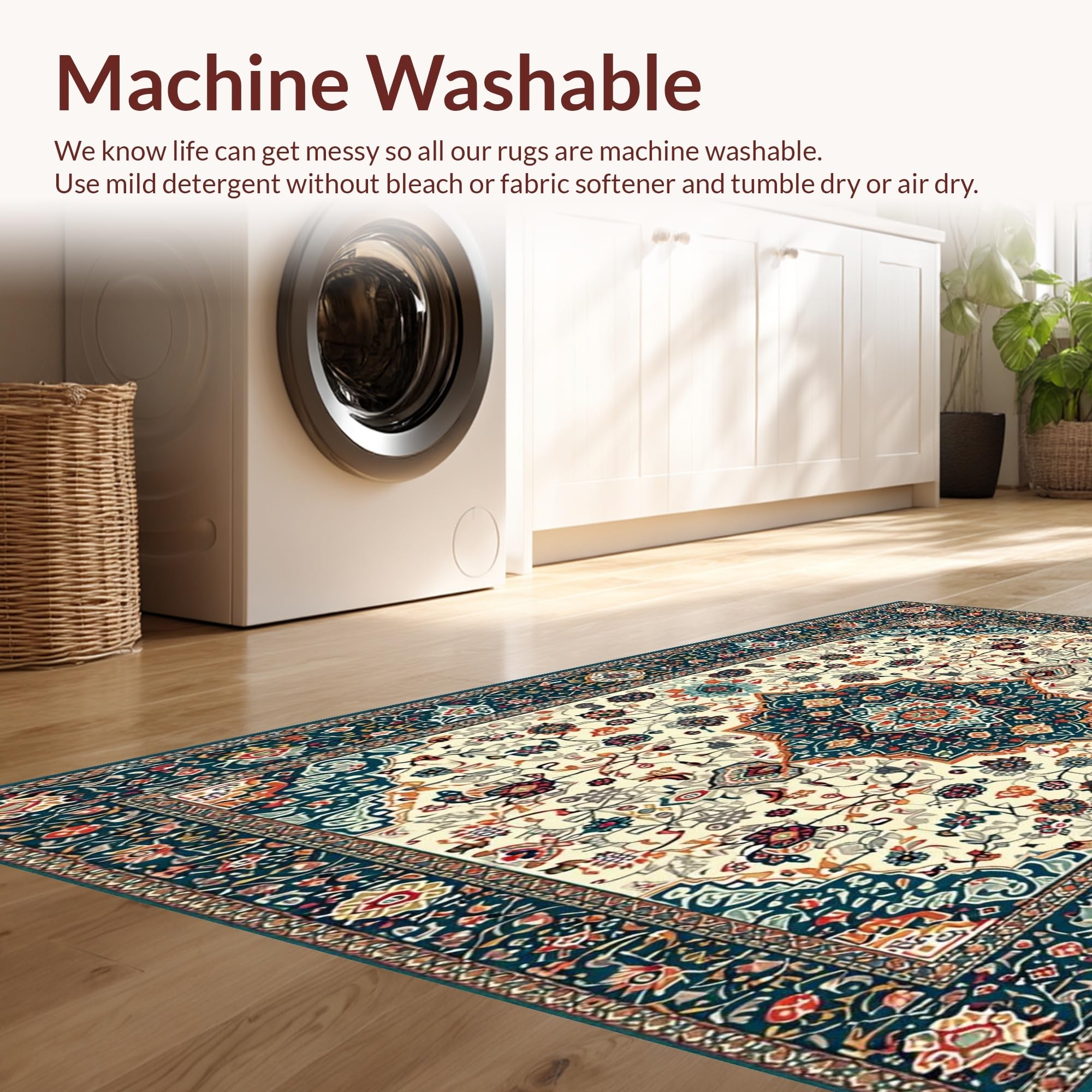 - Machine Washable: Our rugs can be easily thrown in the wash machine.