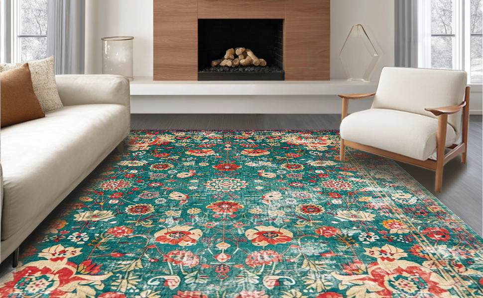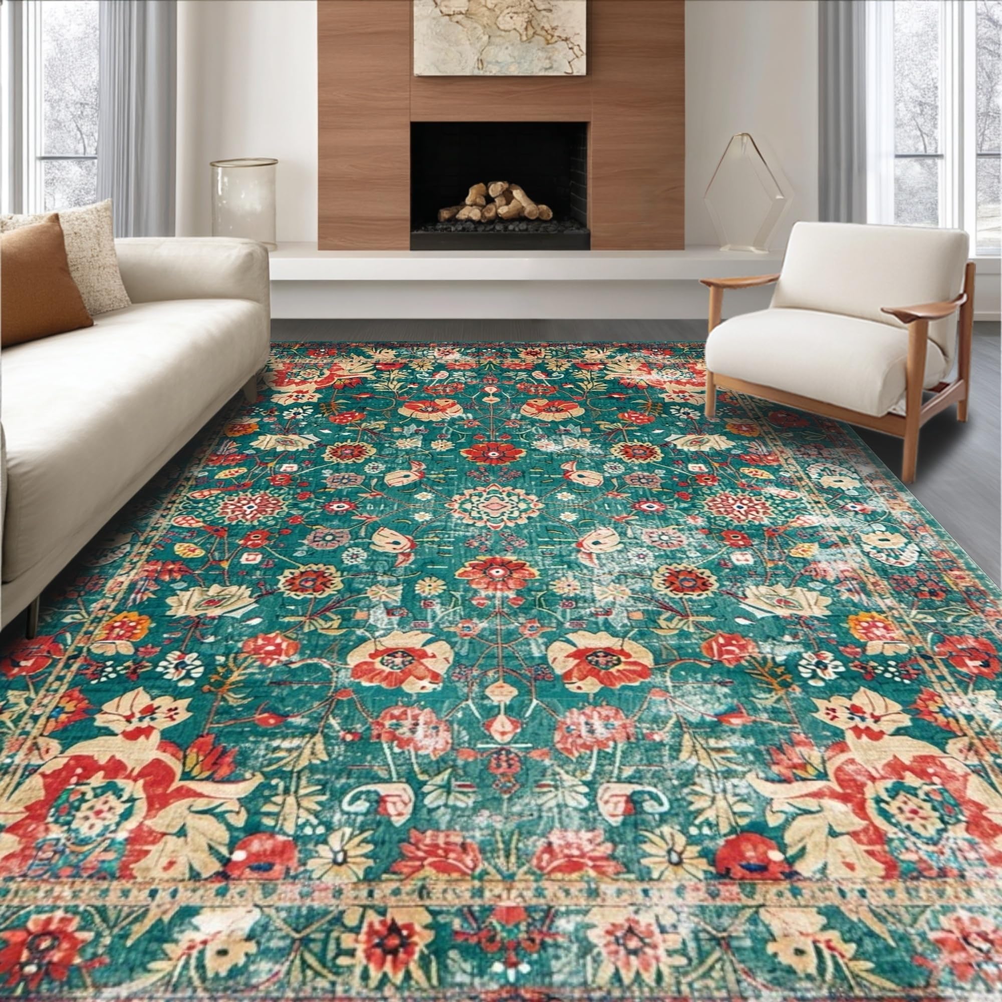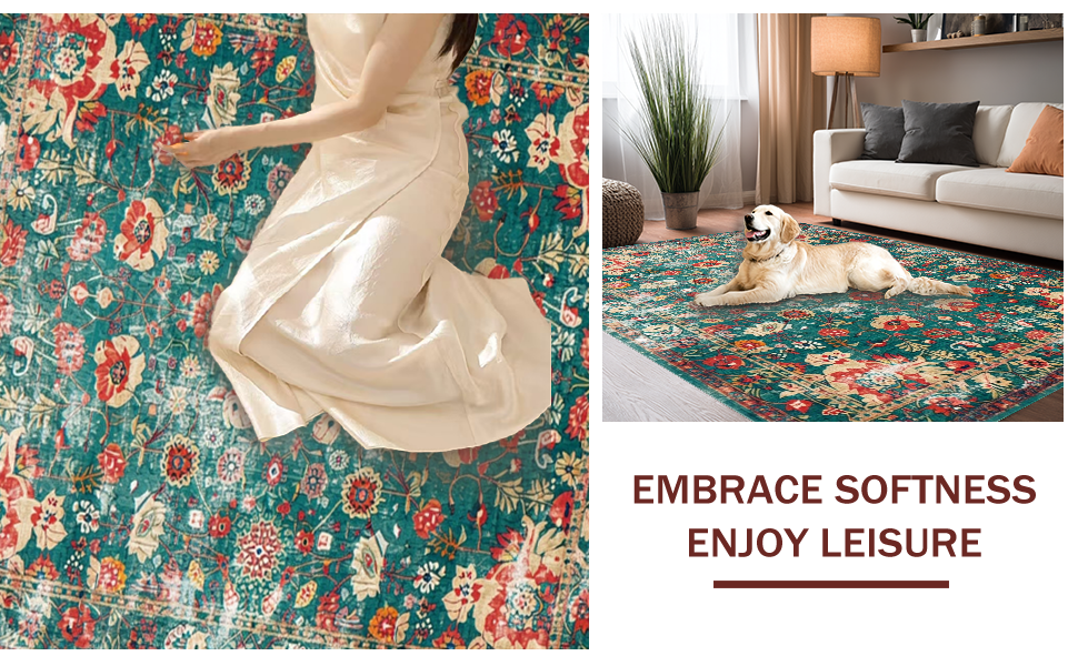 Ultra Soft Area Rug, Non Slip, Stain Resistant, Washable Area Rugs for Living Room, Bedroom, Soft Earthy Palette Texture(Green) Overview: