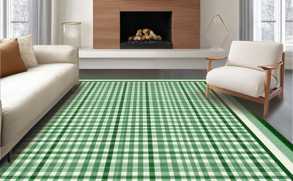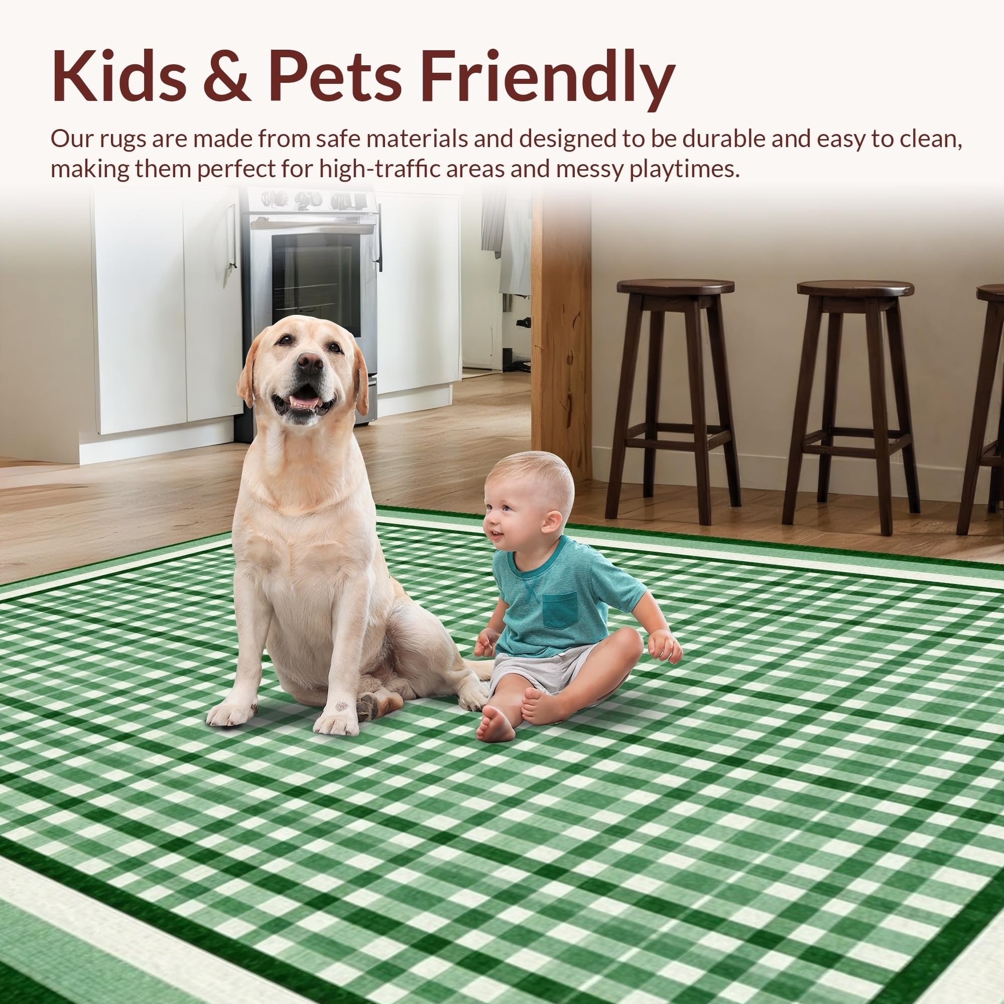 Ultra Soft Area Rug, Non Slip, Stain Resistant, Washable Area Rugs for Living Room, Bedroom, Soft Fuzzy Geometric Elegance(Green) Overview: