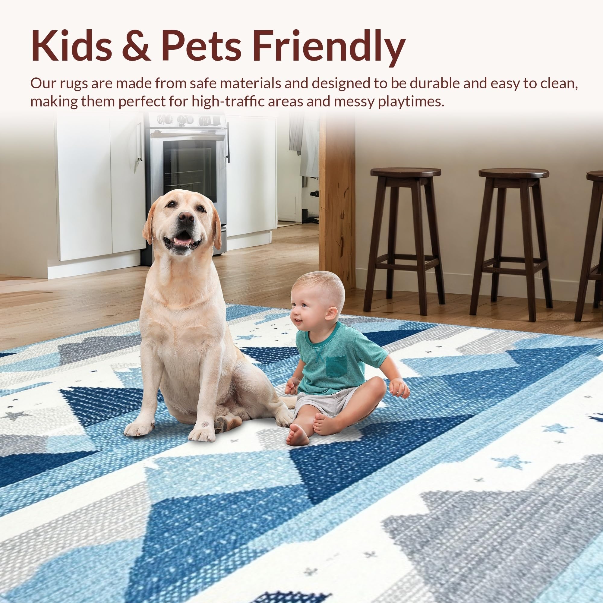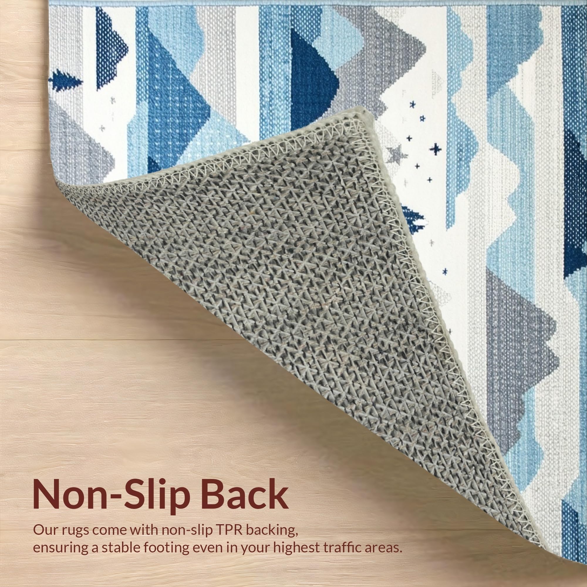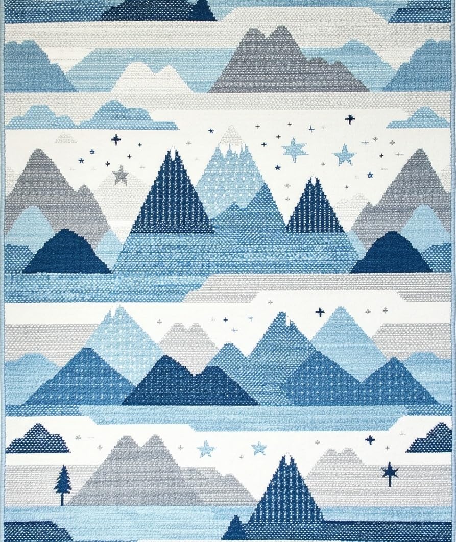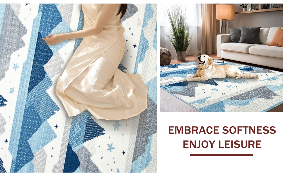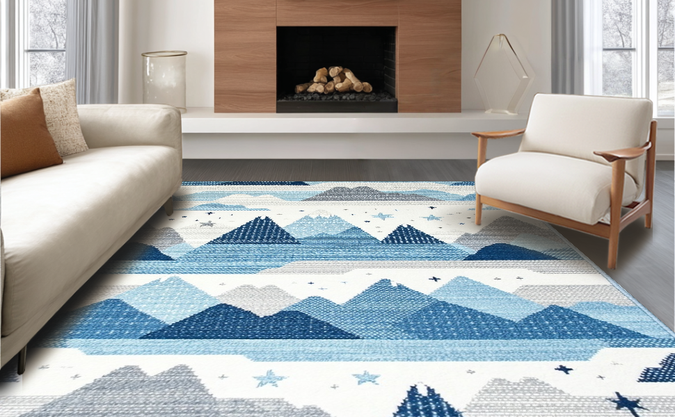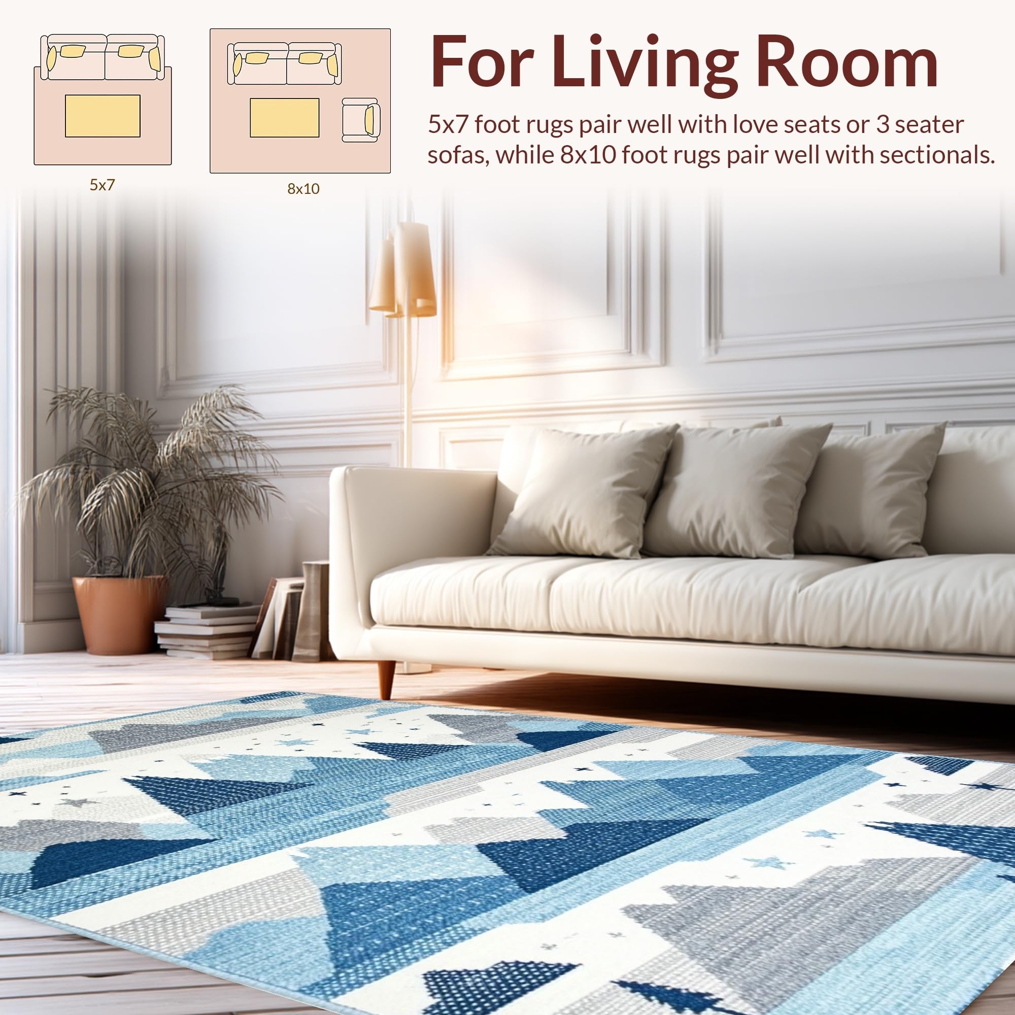 Ultra Soft Area Rug, Non Slip, Stain Resistant, Washable Area Rugs for Living Room, Bedroom, Soft Gray and White Serenity(Blue) Overview: