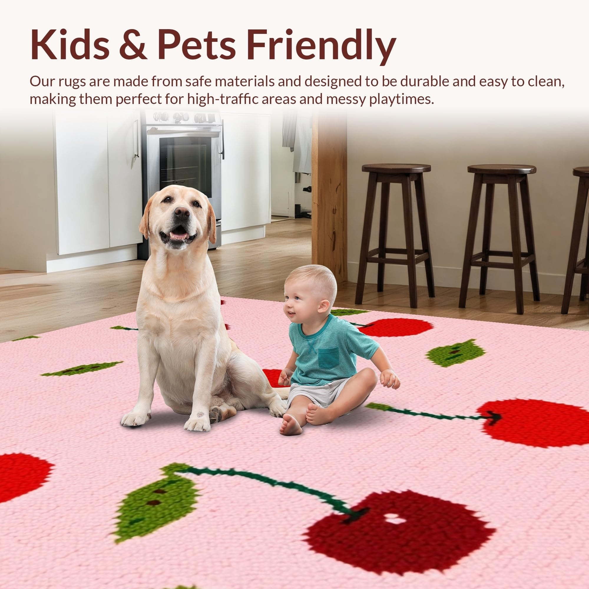 Ultra Soft Area Rug, Non Slip, Stain Resistant, Washable Area Rugs for Living Room, Bedroom, Soft Plush Cartoon Motif(Pink) Overview: