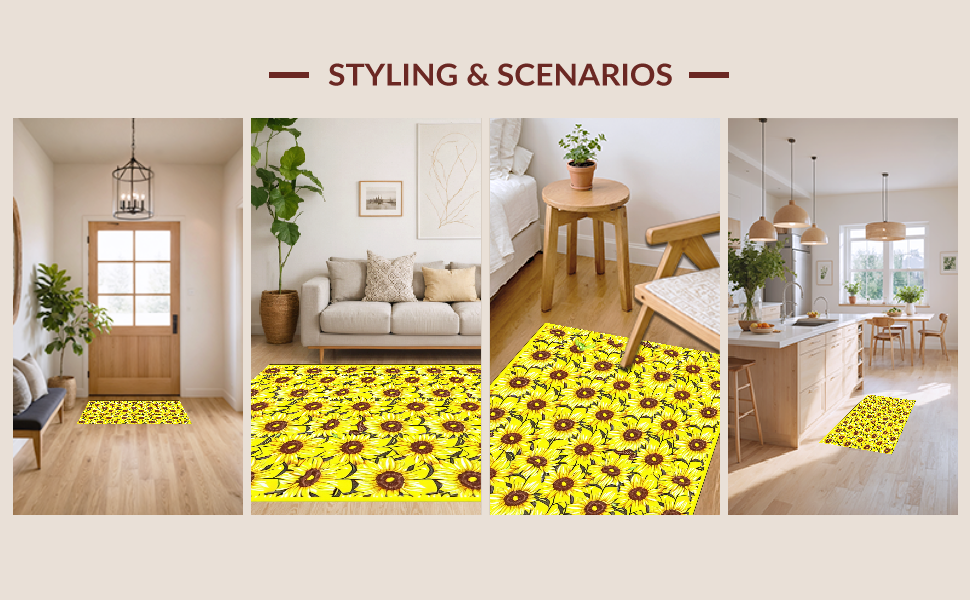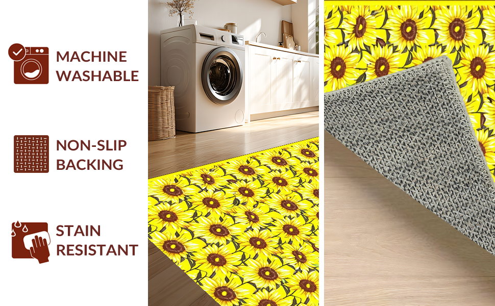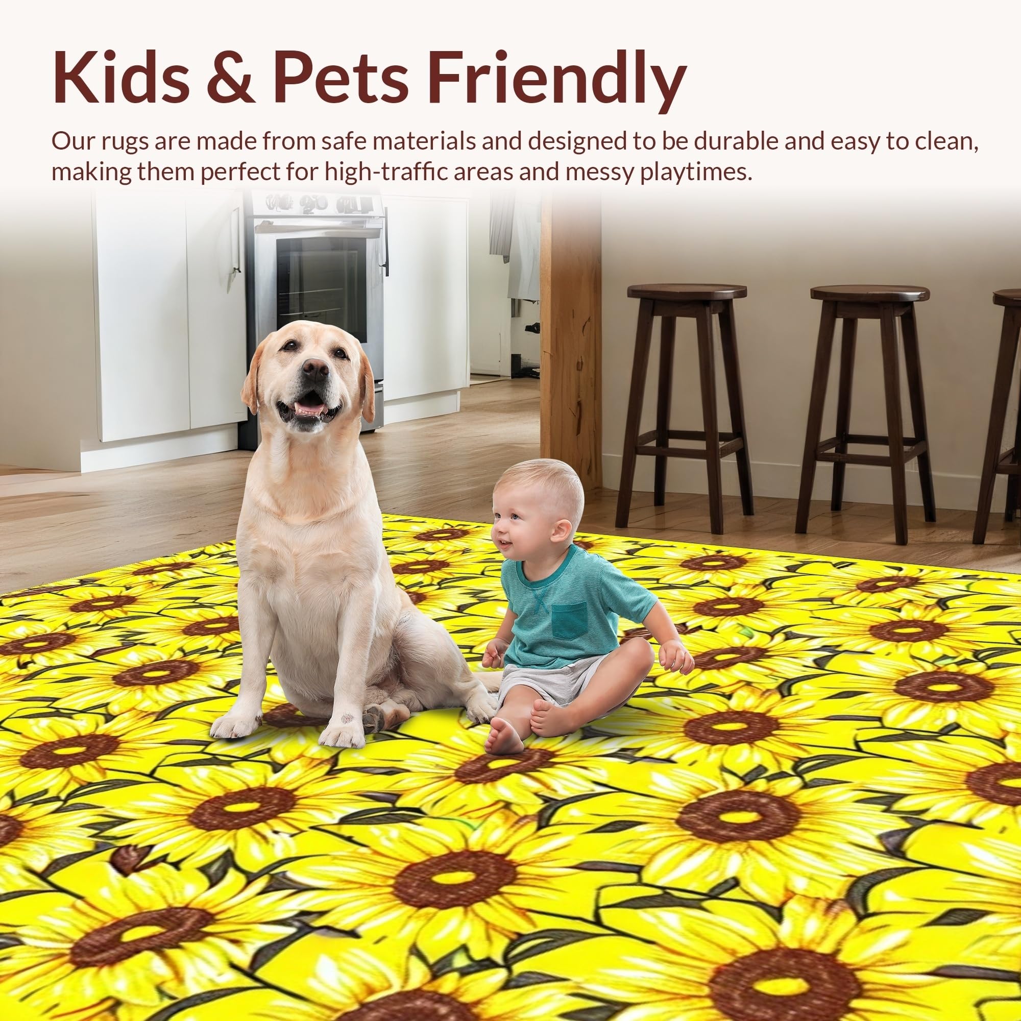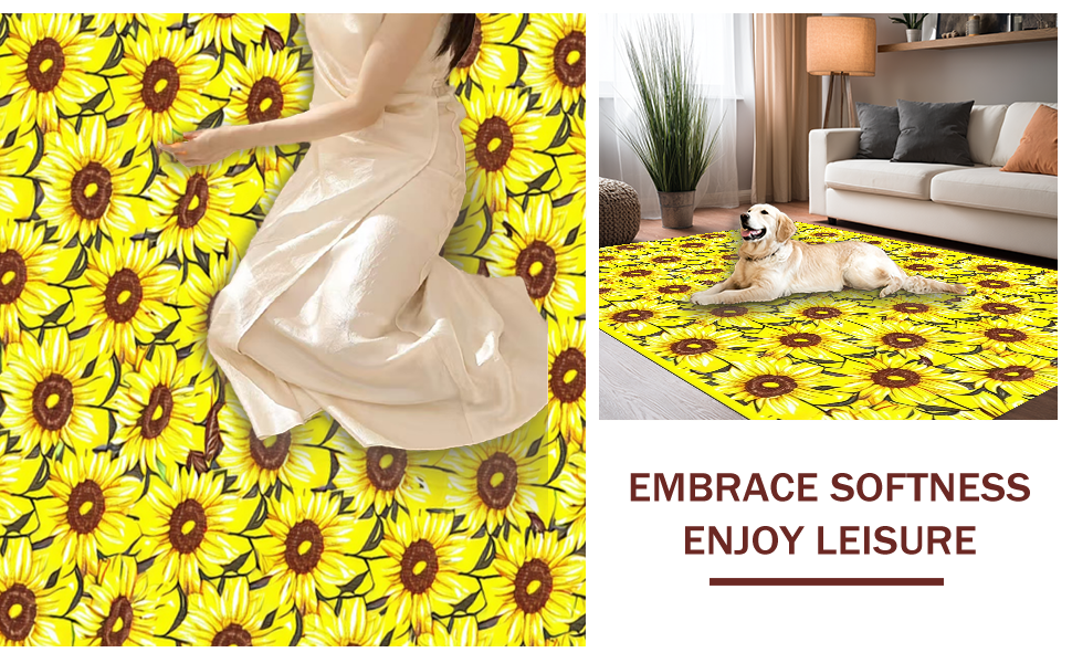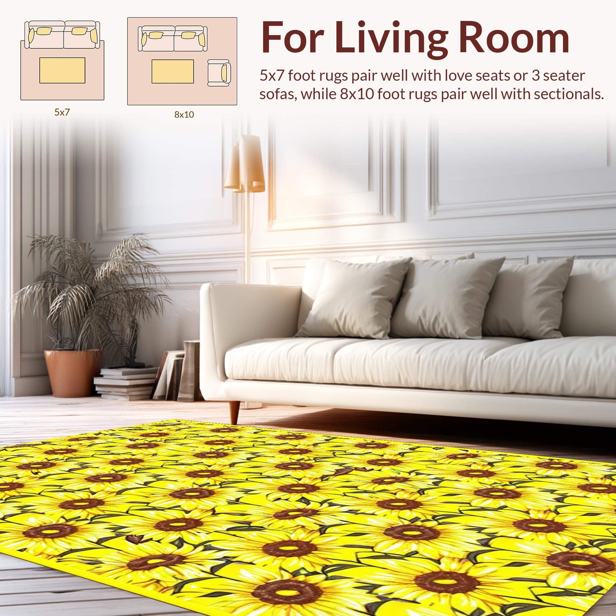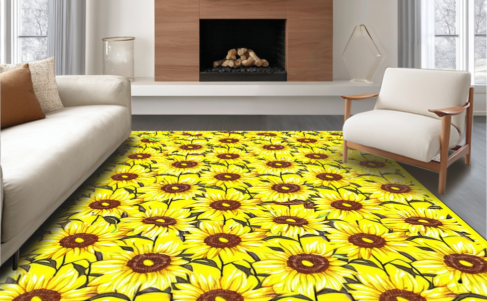 Ultra Soft Area Rug, Non Slip, Stain Resistant, Washable Area Rugs for Living Room, Bedroom, Soft Plush Sunflower Aesthetic(Yellow) Overview:
