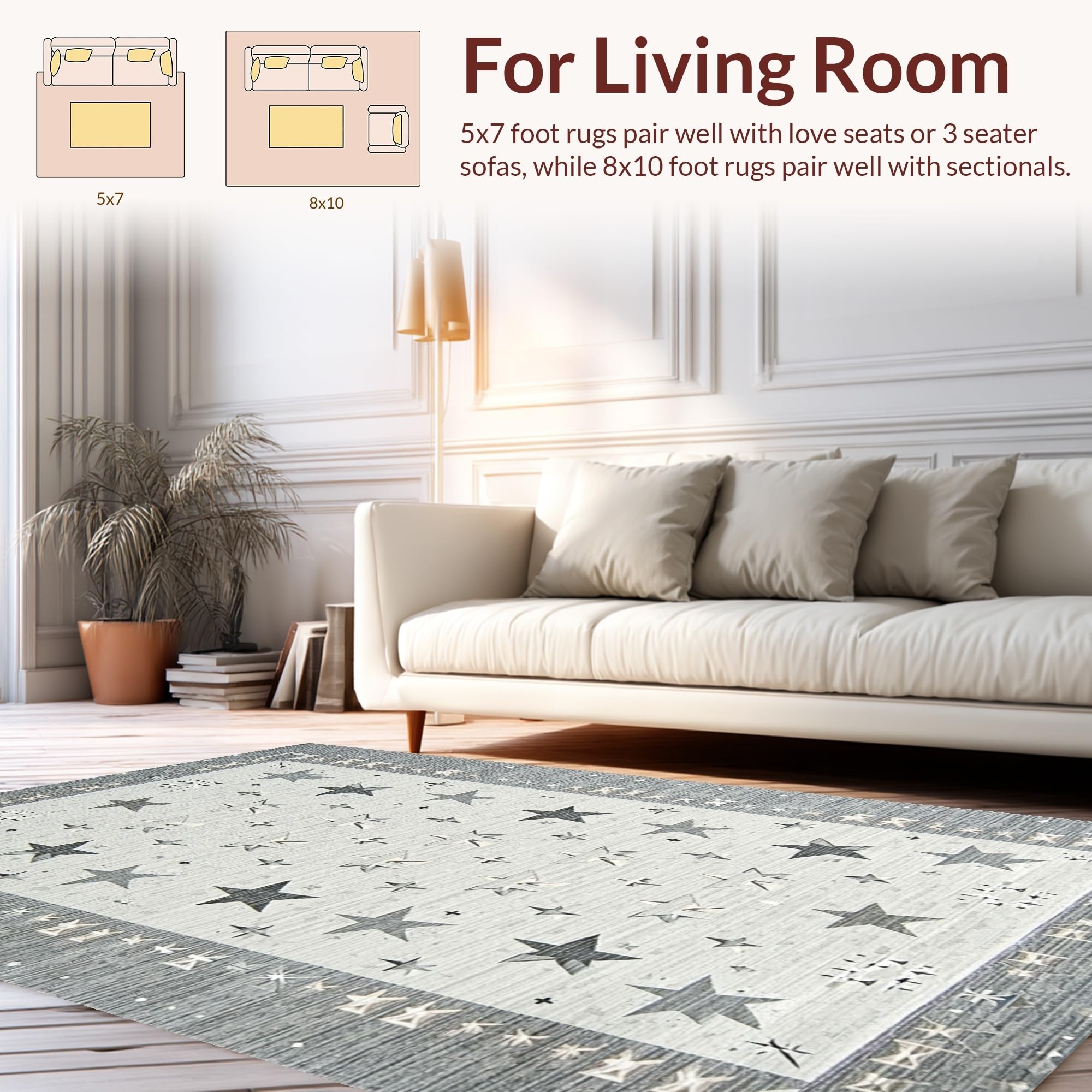 Ultra Soft Area Rug, Non Slip, Stain Resistant, Washable Area Rugs for Living Room, Bedroom, Soft Textured Shag Style(Gray) Overview: