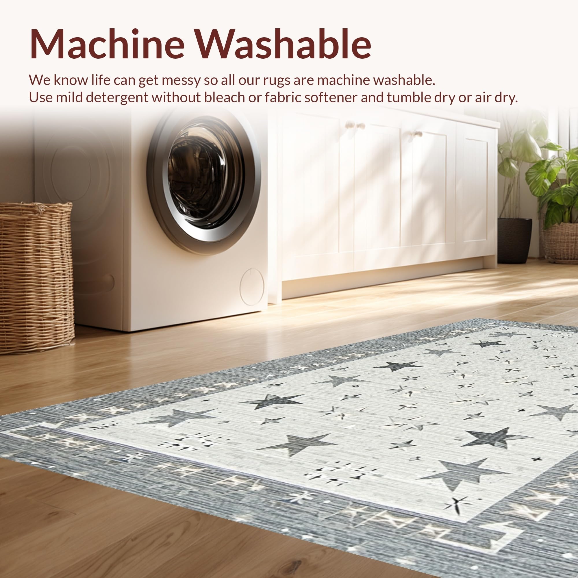 - Machine Washable: Our rugs can be easily thrown in the wash machine.