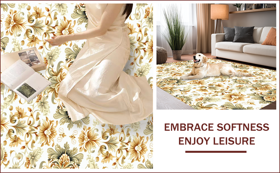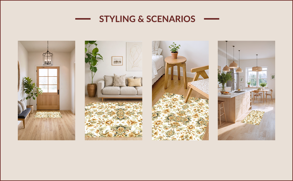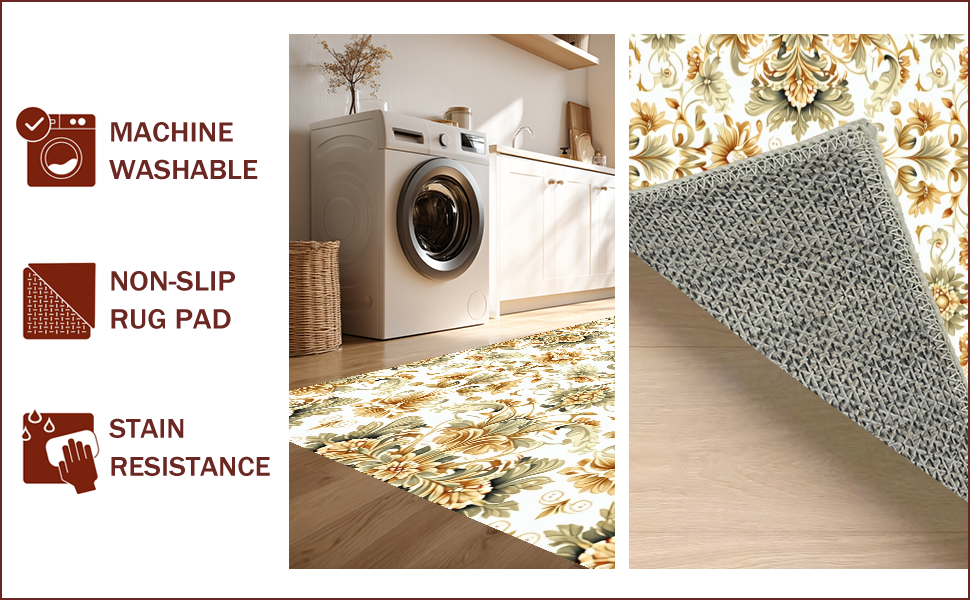 Ultra Soft Area Rug, Non Slip, Stain Resistant, Washable Area Rugs for Living Room, Bedroom, Soft Vintage Floral Non-Slip Entryway(Beige) Overview:
