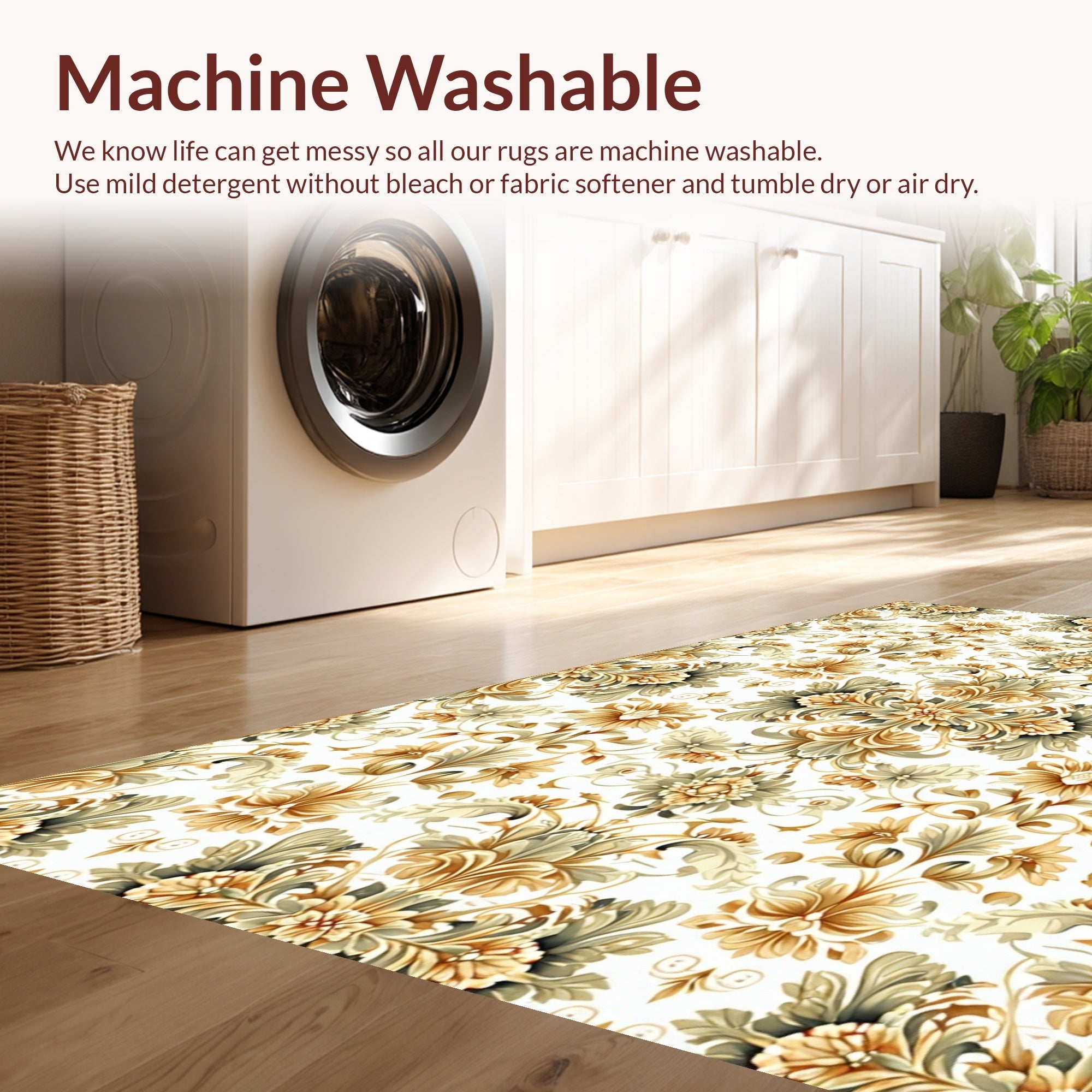 - Machine Washable: Our rugs can be easily thrown in the wash machine.