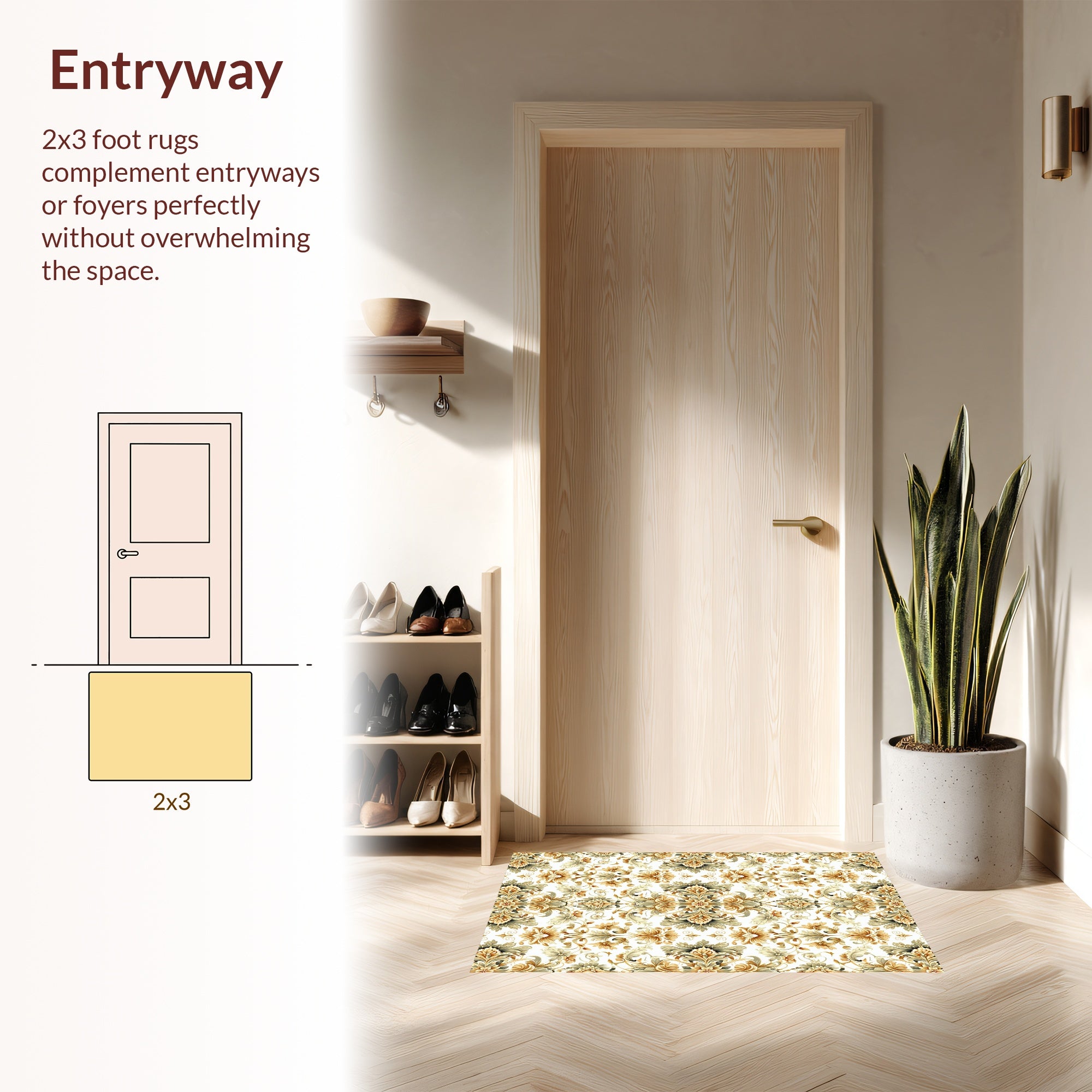 Flatwoven High Traffic Area Rug, Vintage Floral Non Slip Entryway, Non Slip, Stain Resistant, Washable Area Rugs for Living Room, Bedroom (Beige) Overview: