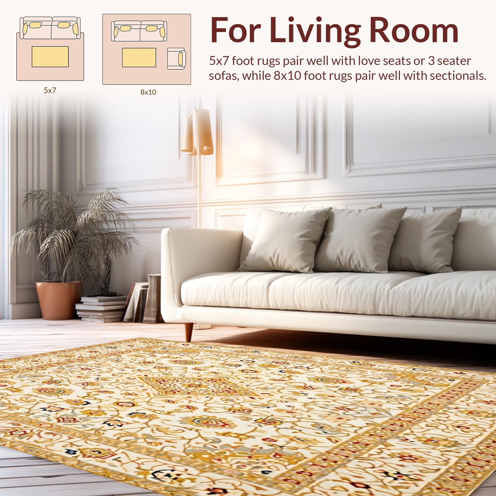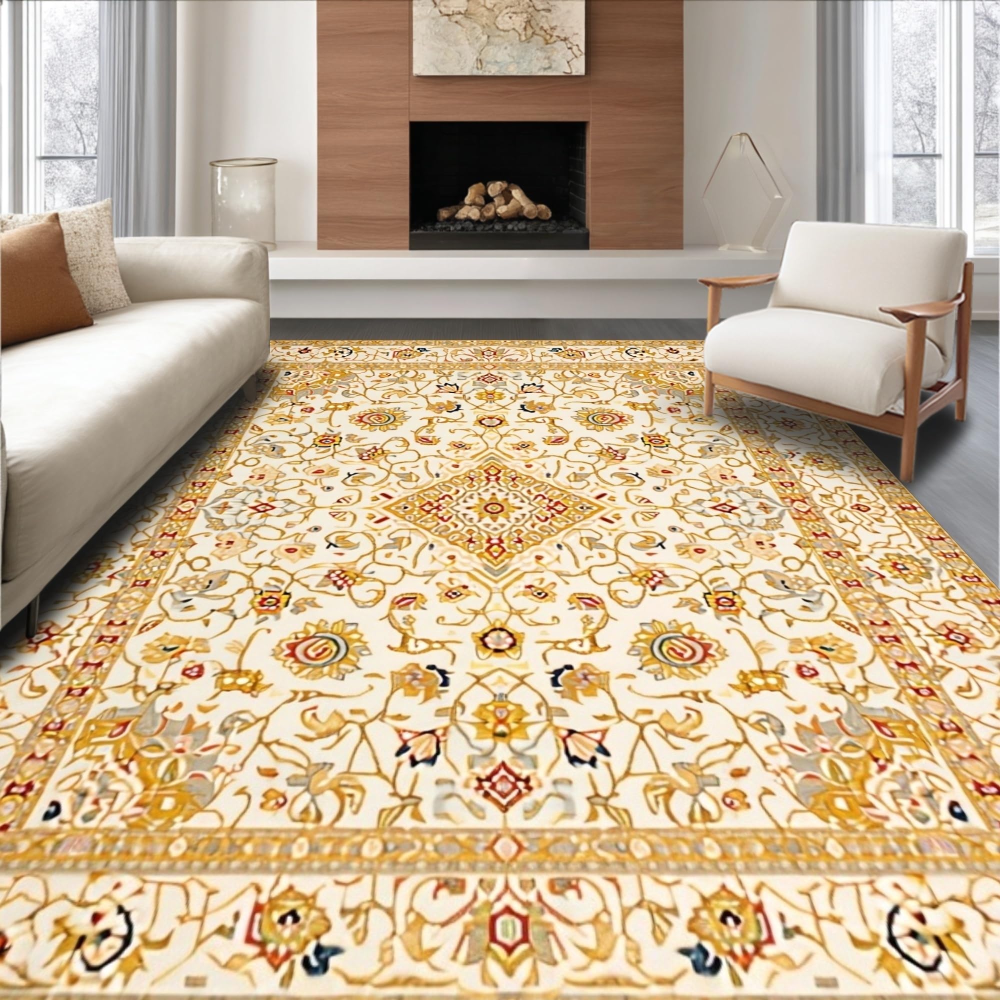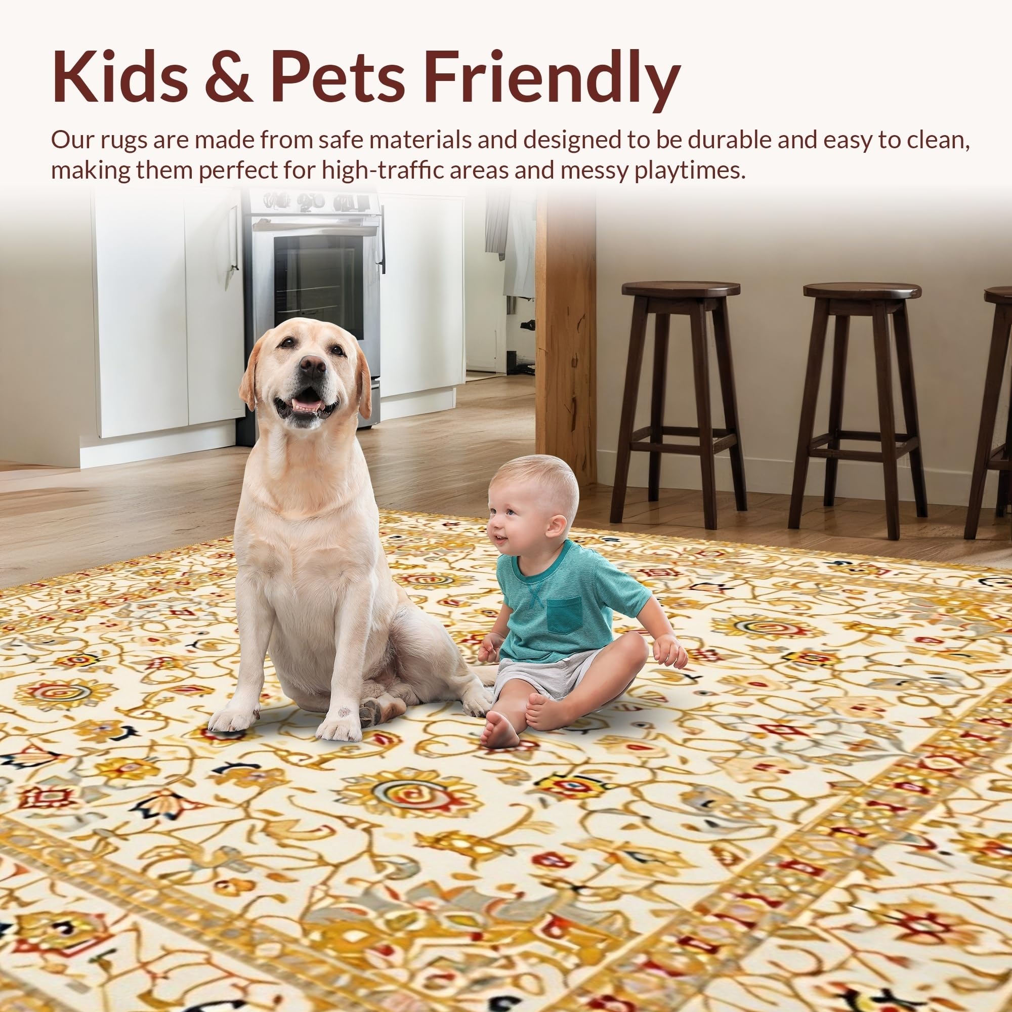 Ultra Soft Area Rug, Non Slip, Stain Resistant, Washable Area Rugs for Living Room, Bedroom, Solara Medallion Area(Ivory) Overview: