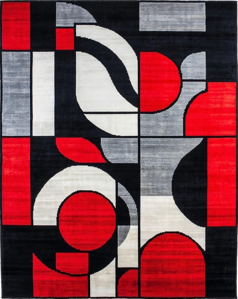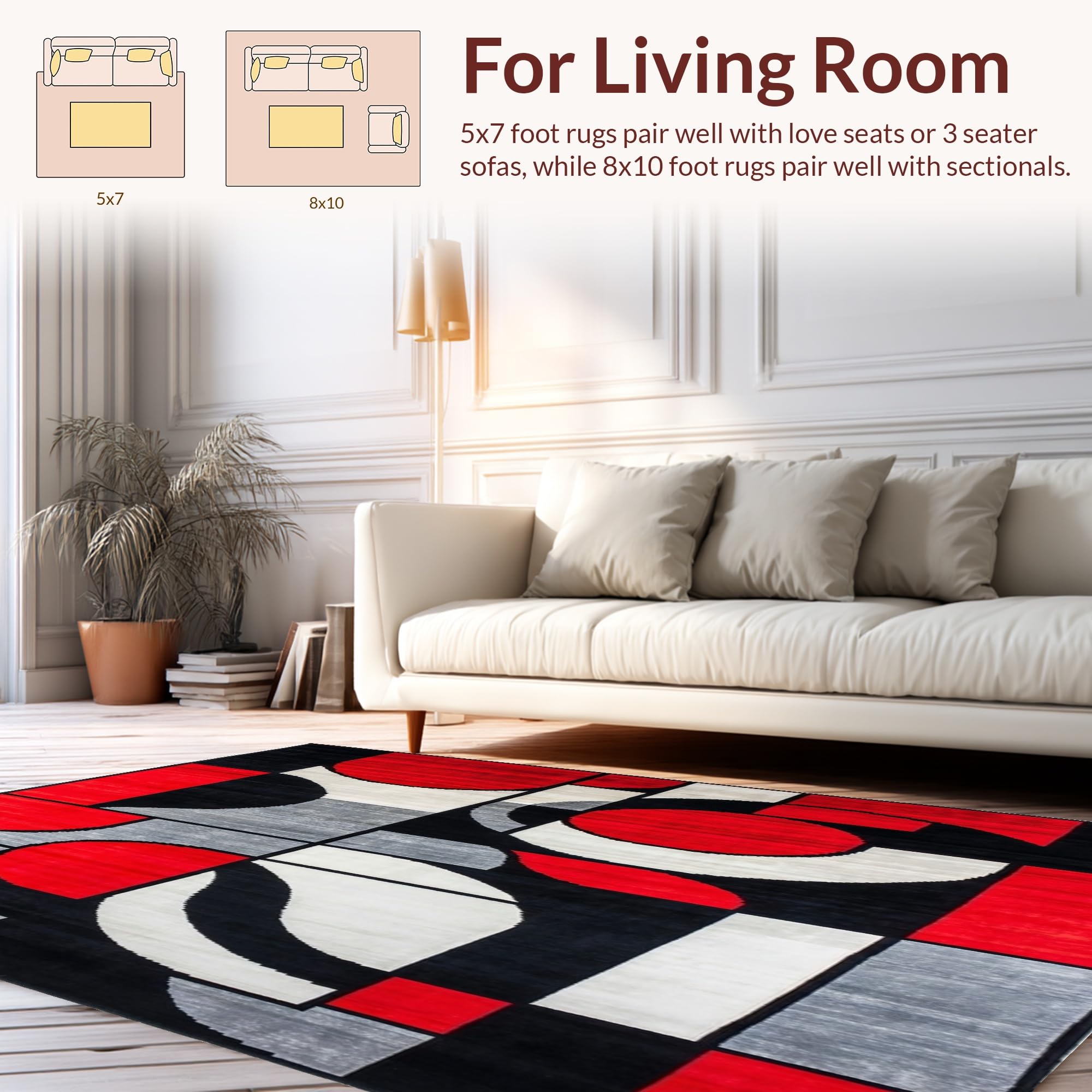 Ultra Soft Area Rug, Non Slip, Stain Resistant, Washable Area Rugs for Living Room, Bedroom, Sophia Collection Hand Carved Rug Contemporary Abstract Red Black Grey(Red) Overview: